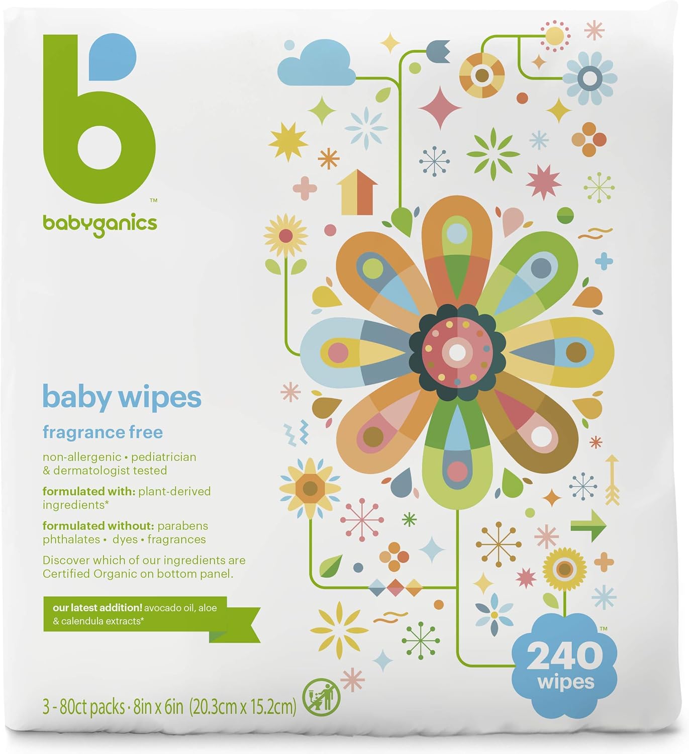 Baby Wipes, Babyganics Unscented Diaper Wipes , 400 Count, (5 Packs of 80), Non-Allergenic and formulated with Plant Derived Ingredients