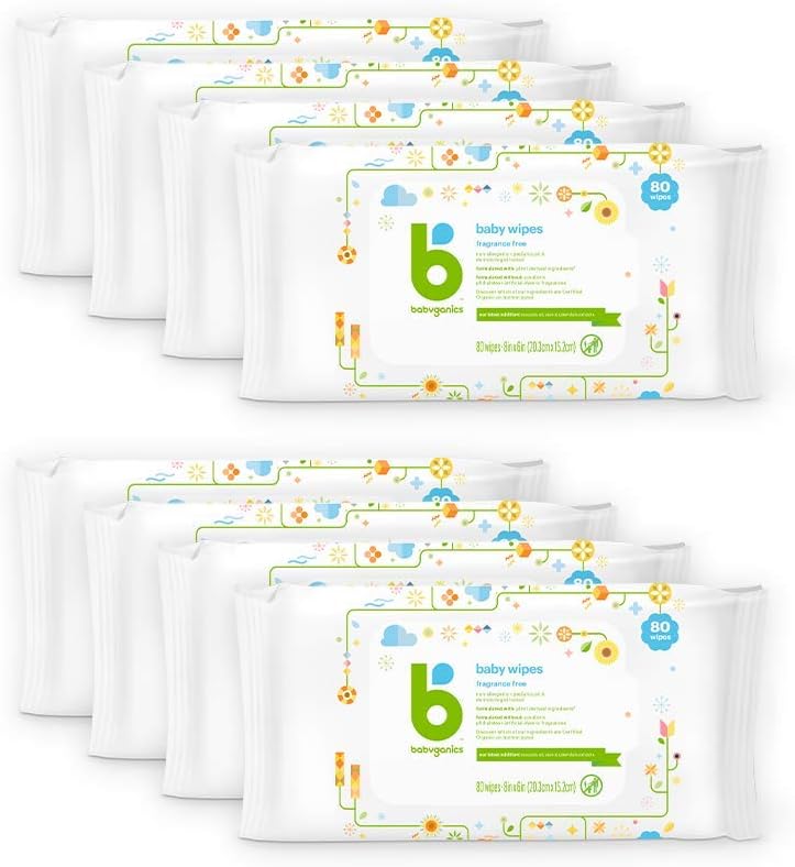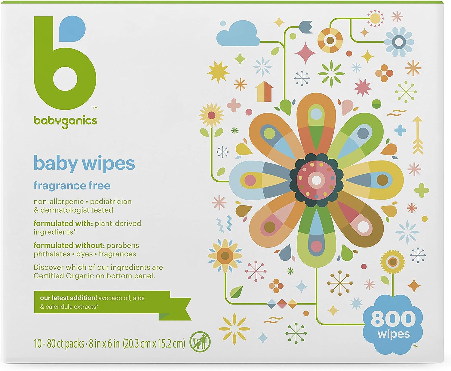 Babyganics Unscented Diaper Wipes, 800 Count, (10 Packs of 80), Non-Allergenic and formulated with Plant Derived Ingredients