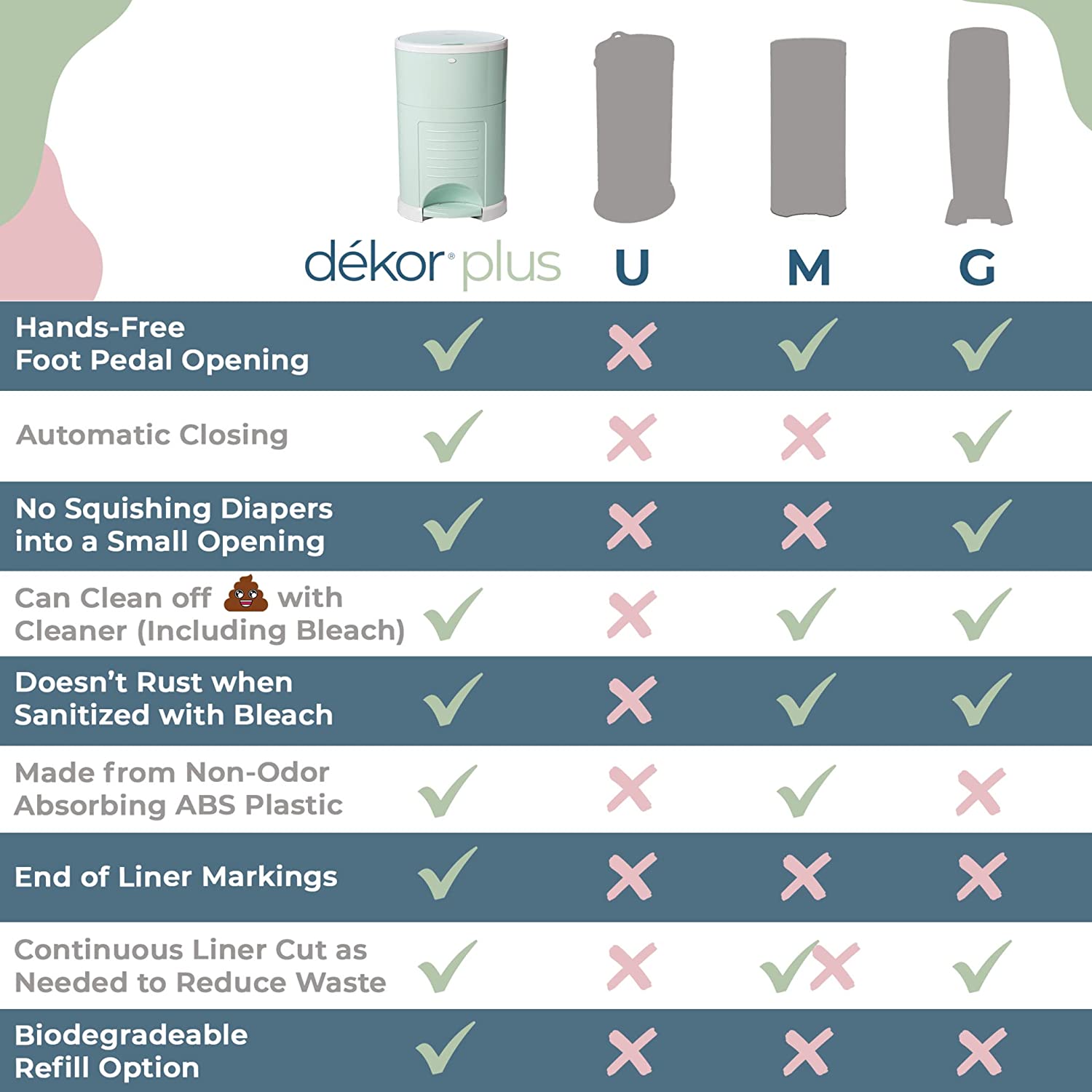 • Most Cost-Effective Diaper Pail Refill System on the Market. Dekor Refill System Creates Less Waste - Use ONLY What You Need!