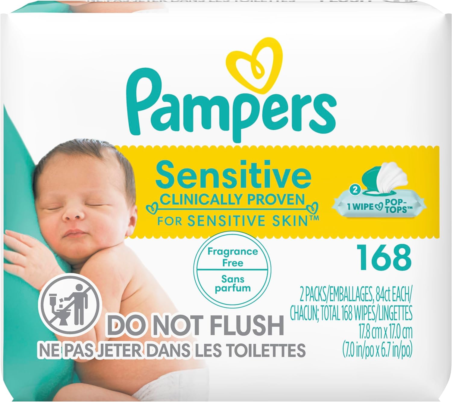 Clinically proven to protect your little one’s sensitive skin, Pampers Sensitive baby wipes are thick and soft for a gentle clean. Pampers Sensitive baby wipes are the #1 choice of hospitals** and are Skin Health Alliance Dermatologist approved. They are milder than a washcloth and water and help maintain skin’s natural pH. Pampers Sensitive baby wipes are hypoallergenic and free of alcohol, fragrance, parabens, and latex.* Plus, our convenient 1-Wipe pop-top is designed to dispense one wipe at a time, so you only get what you need to tackle the mess at-hand. From Pampers, the #1 pediatrician recommended brand. For healthy skin, use Pampers Sensitive wipes together with Pampers Swaddlers diapers. *No rubbing alcohol and no natural rubber latex **based on hospital sales data