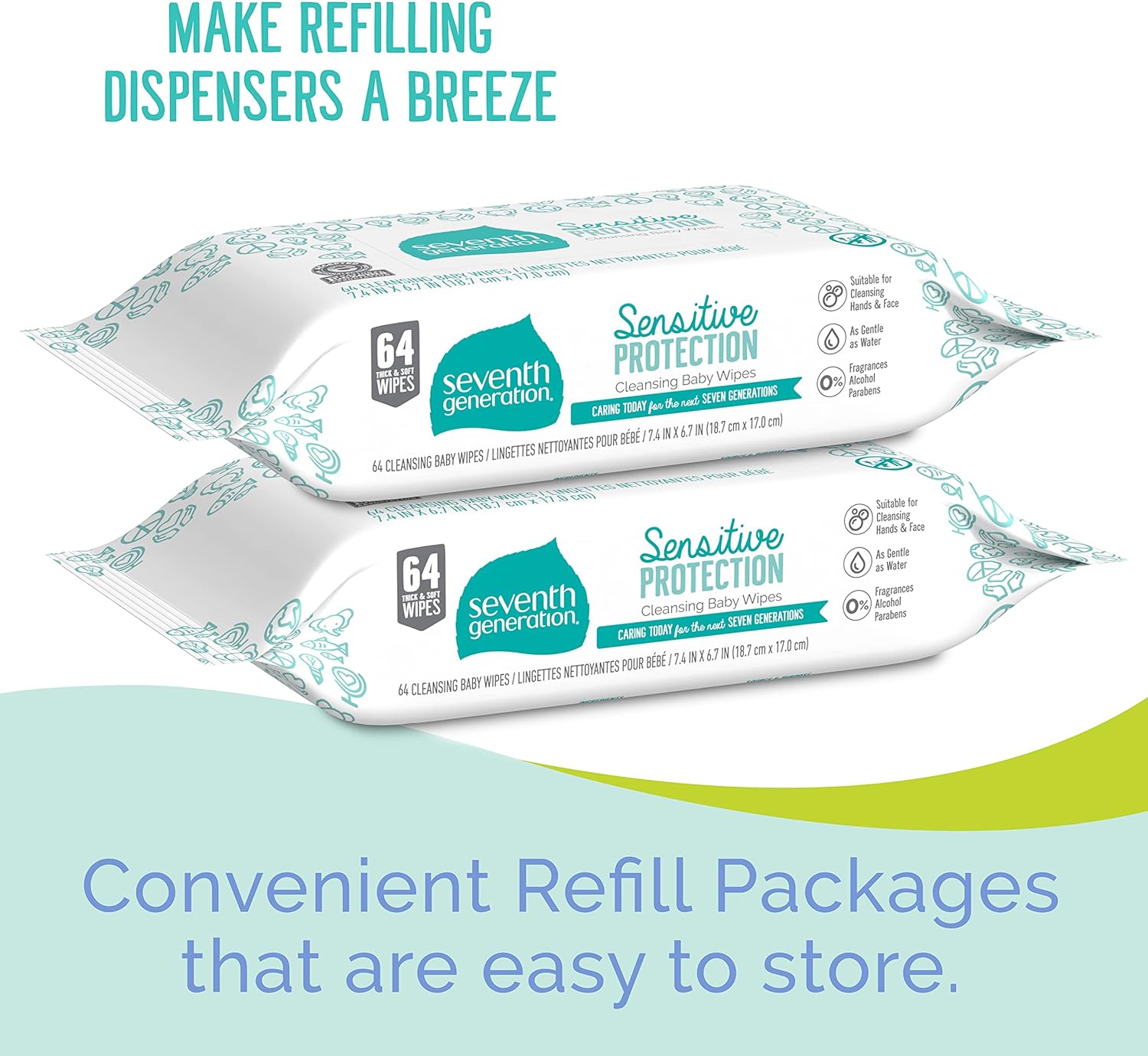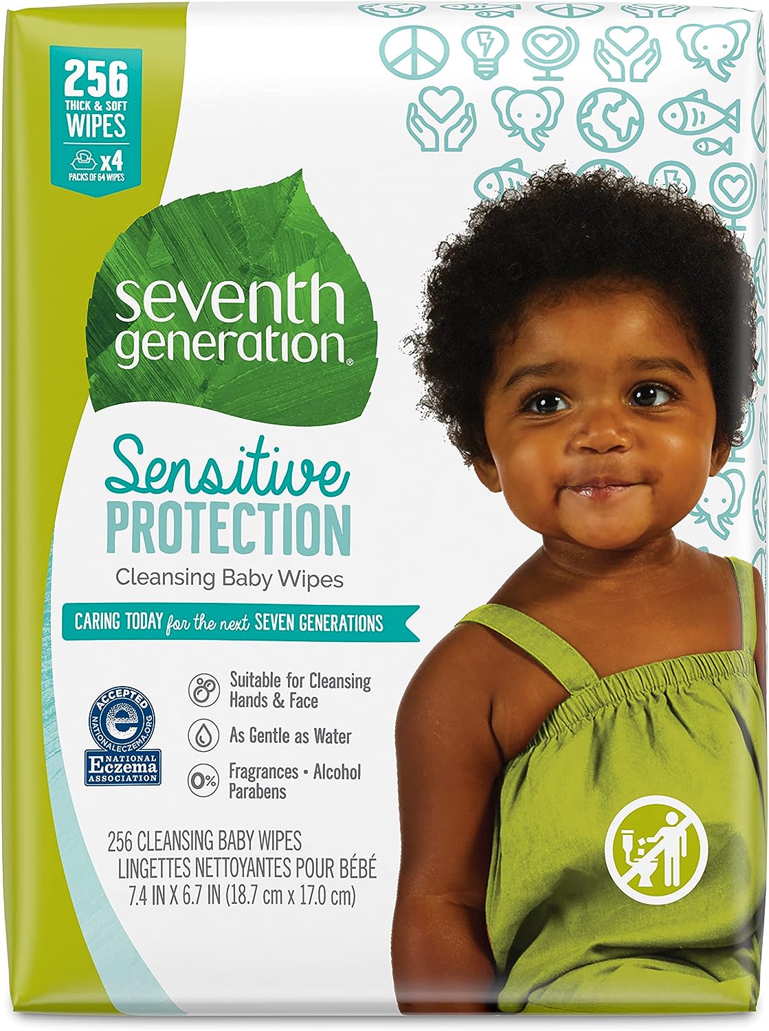 Smooth, soft, and clean - the way a baby's bottom should be. Seventh Generation Free & Clear Baby Wipes are made for baby's sensitive skin and contain 0% fragrance, alcohol, parabens, or phenoxyethanol. Our thick, soft wipes are strong enough for big messes while being gentle on newborn baby's most precious, delicate skin. These baby wipes are moistened with plant-derived skin conditioners like aloe Vera and are safe for baby, hands, and face. The flip-top package design locks in moisture to keep wet wipes fresh and allow for easy, on-the-go dispensing. Our hypoallergenic and fragrance free wipes are dermatologist tested and clinically proven to be gentle on baby's skin. It's all good, baby. Caring for a little human is a magical undertaking, and we've developed an entire line of baby skin care products, wipes, and diapers to bring peace of mind to your journey. For every life-changing milestone, you deserve baby care you can trust.