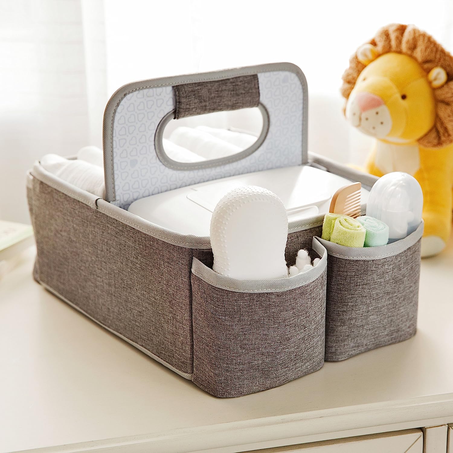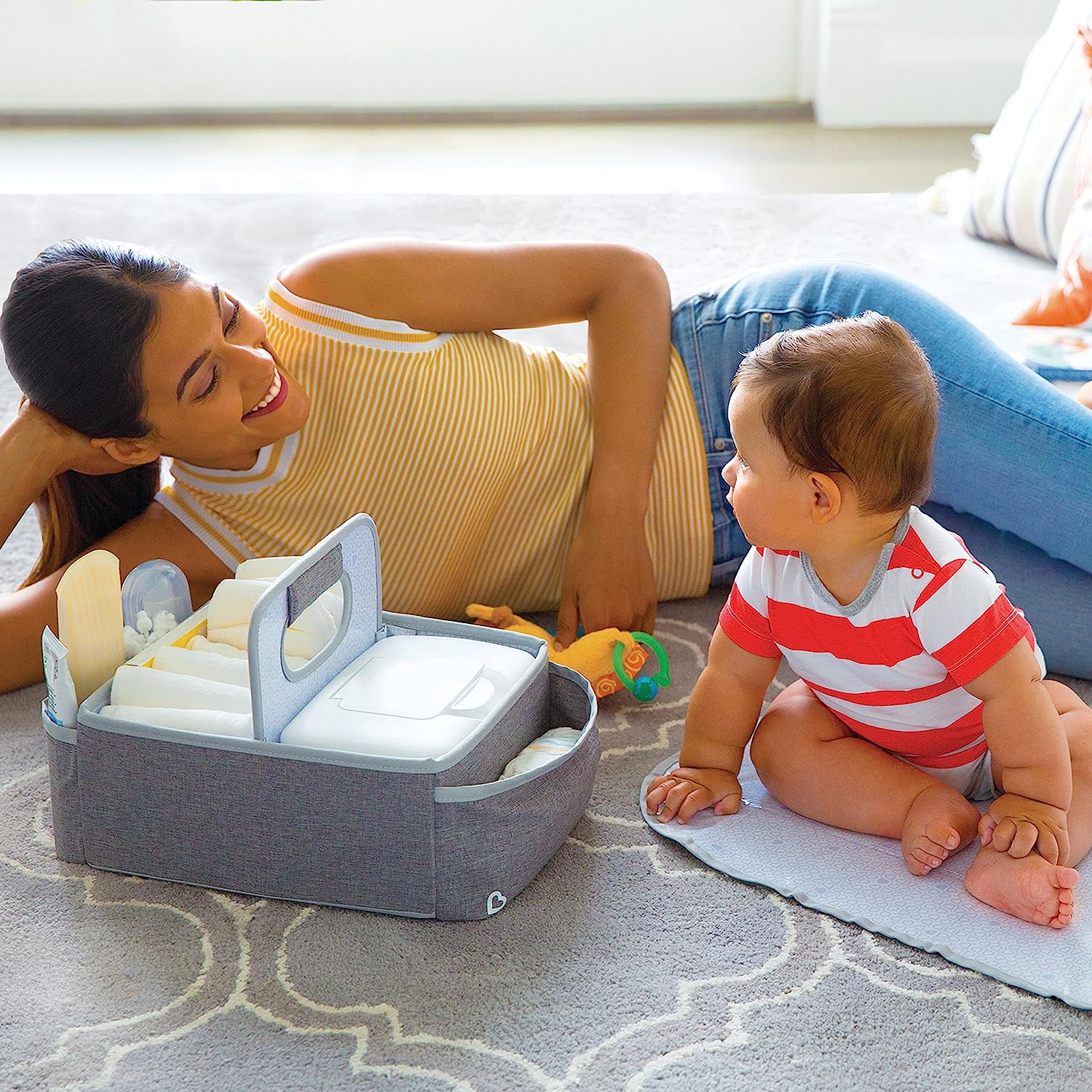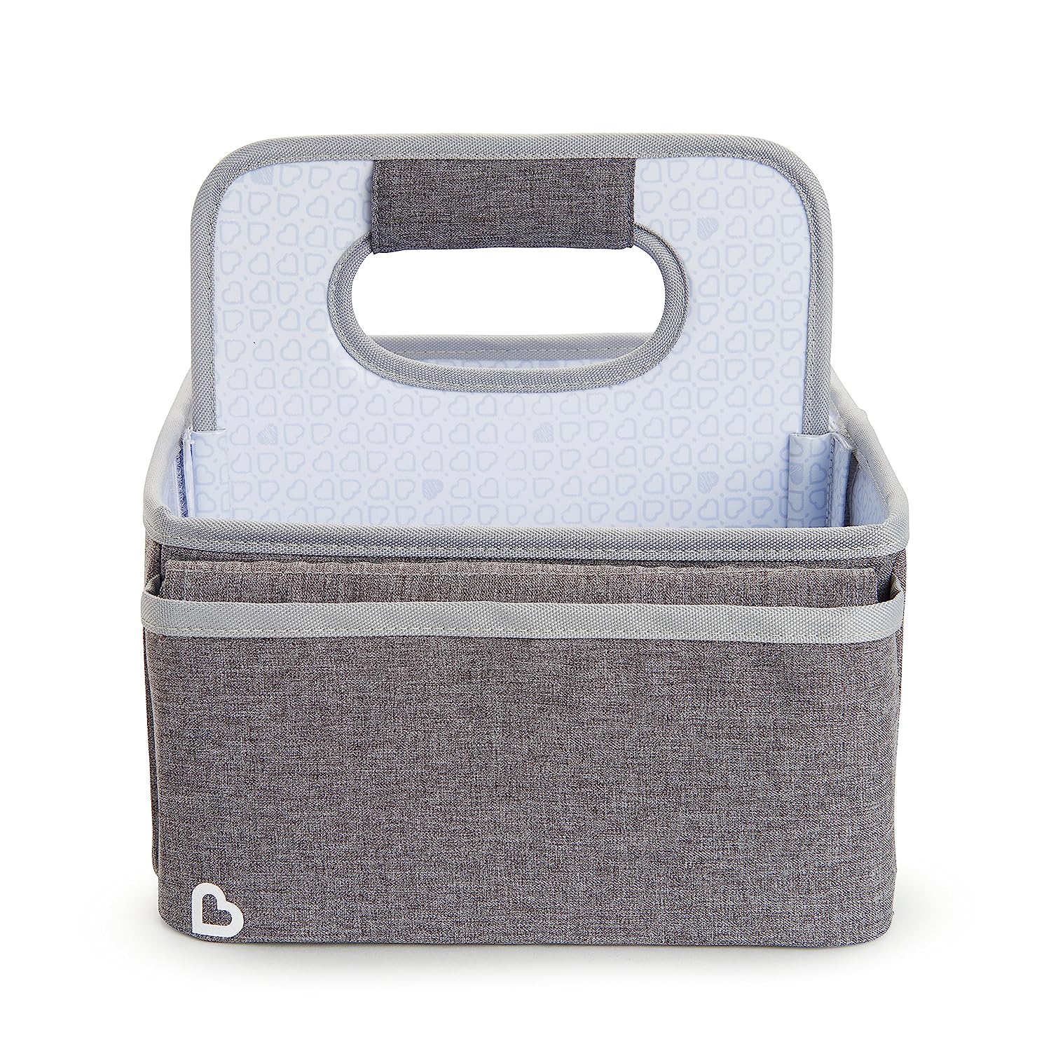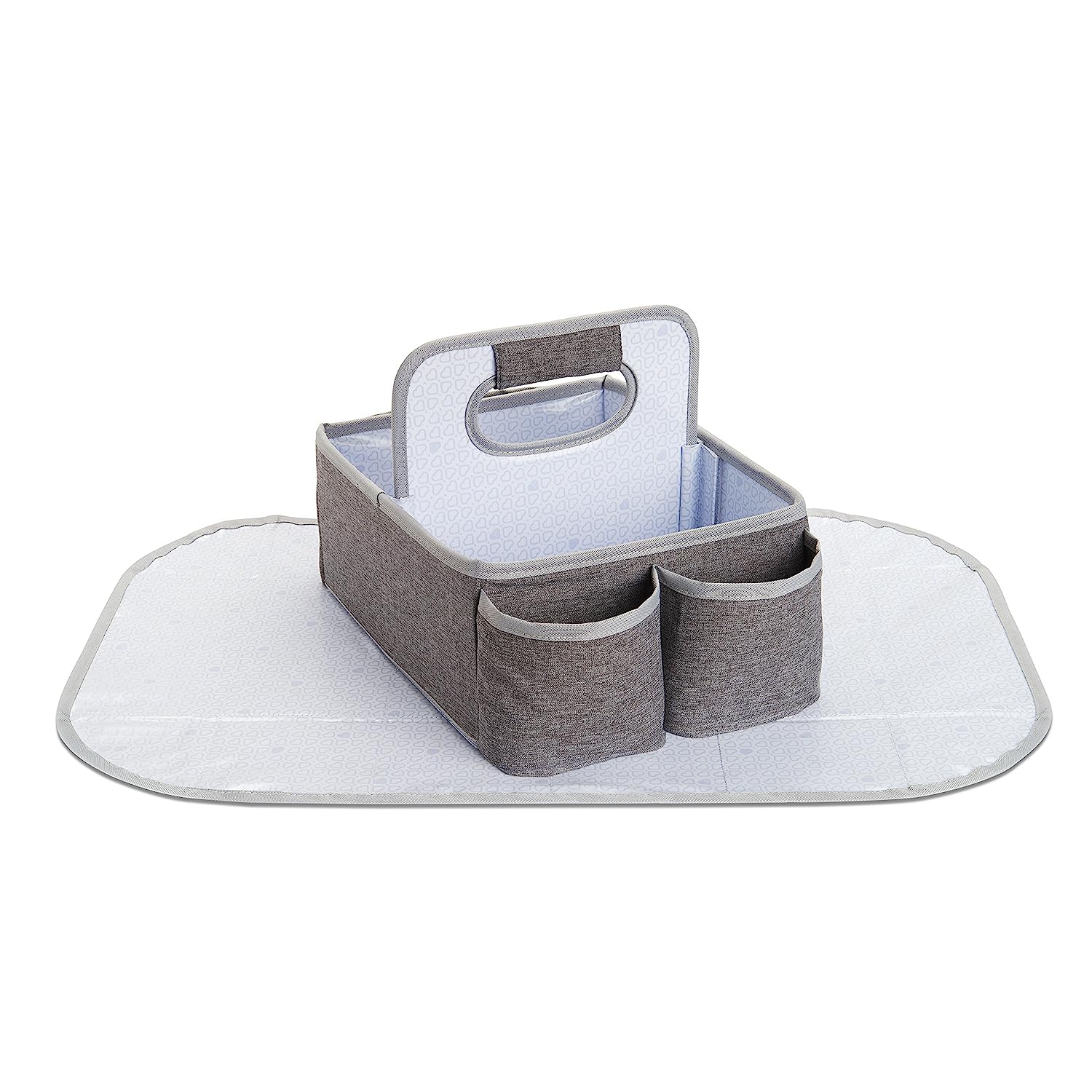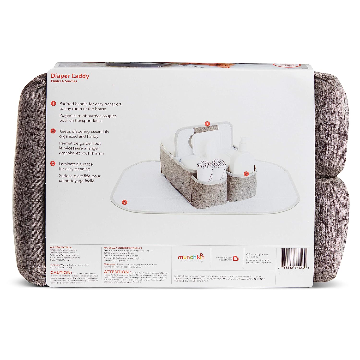You're in the living room and baby needs a diaper change ASAP. The Munchkin Portable Diaper Caddy Organizer is a handy, stylish way to keep all your diaper changing essentials organized and within arm's reach. Perfect for toting all over the house, this sturdy organizer includes a matching, laminated changing pad that's easy to clean, plus separate compartments and side pockets for diaper creams, ointments and other accessories. Make sure what you need for a clean, happy baby is never far from reach.