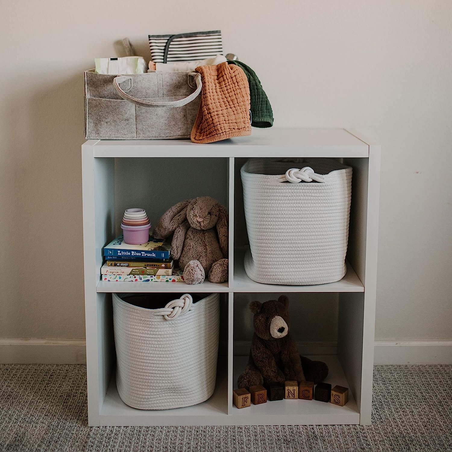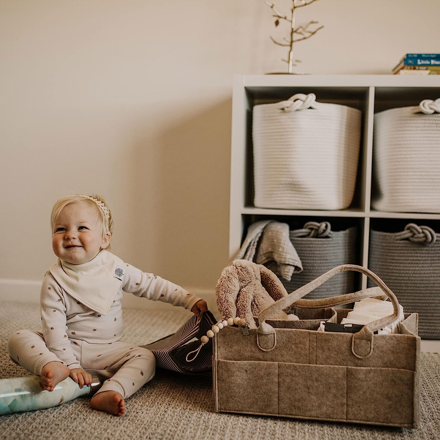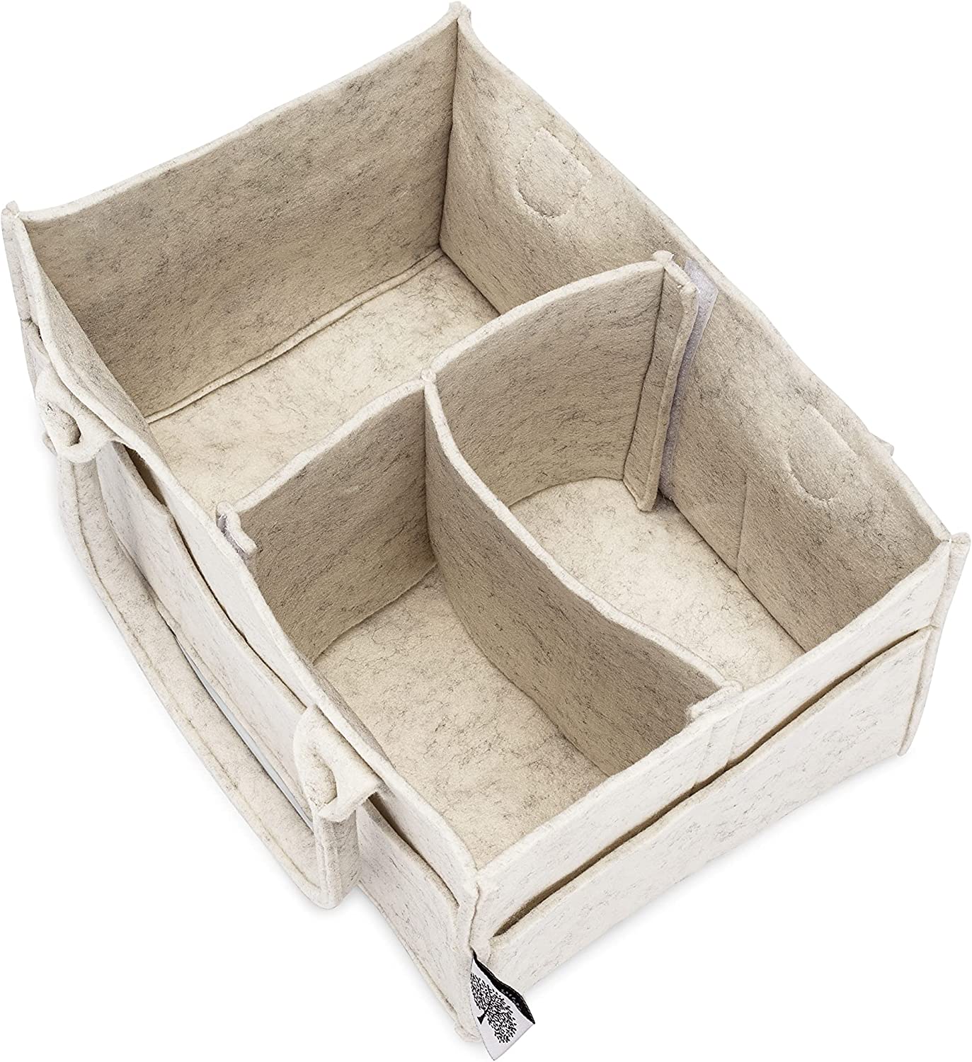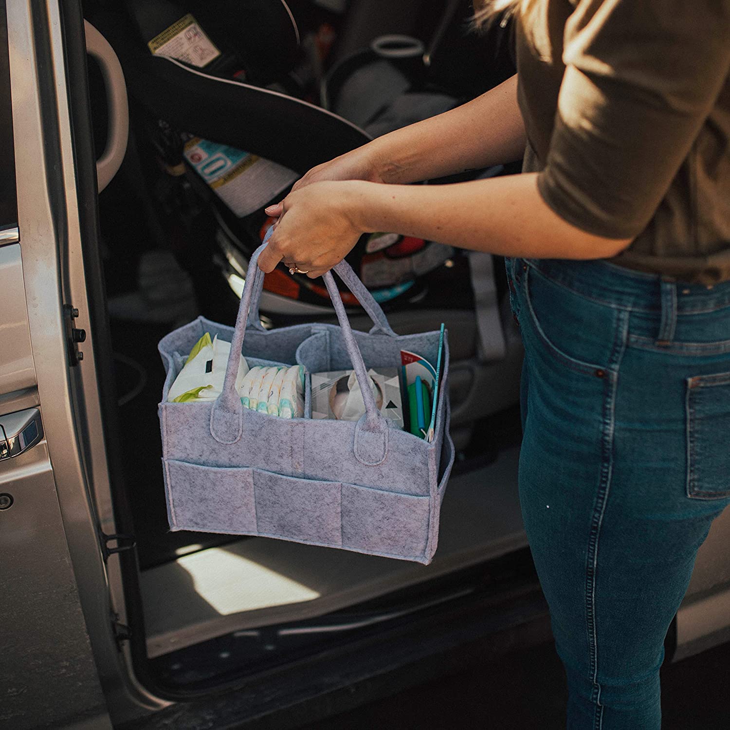 • REMOVABLE ORGANIZER INSERT - Remove the diaper organizer insert to use as a toy storage bin, baby hamper or nursery basket for additional nursery storage. Our lightweight, portable diaper caddy is 13 x 9 x 7" (Regular Size) and made of soft felt and features sturdy outer pockets for additional baby storage.