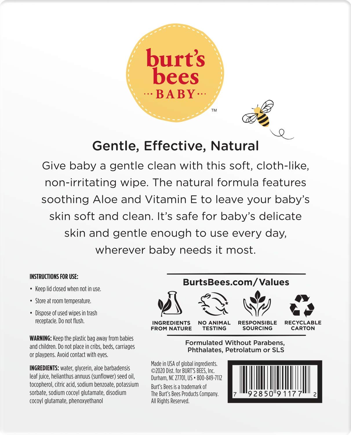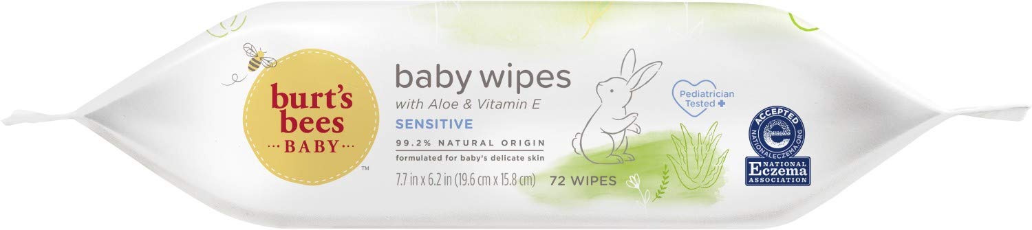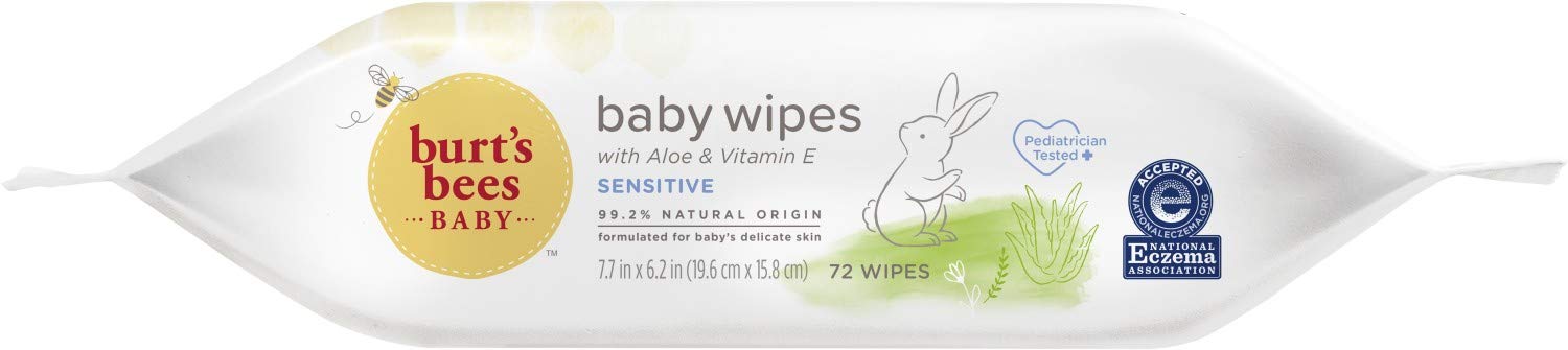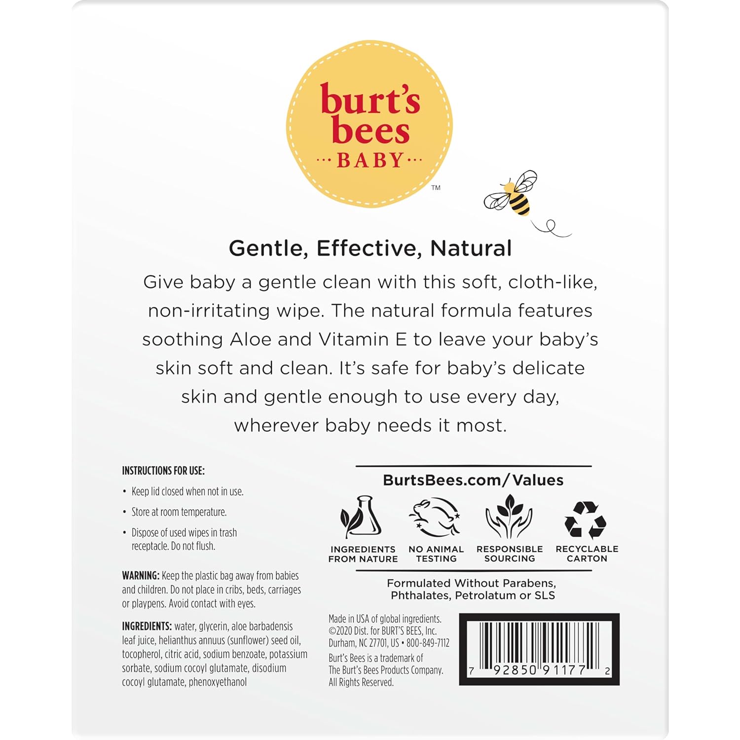 Mamas asked. Nature heard. Meet Burts Bees Baby Wipes that are made to help soothe and cleanse babys sensitive skin with natural, non-irritating ingredients. These cloth-like, fragrance-free wipes for babies are lovingly infused with aloe and vitamin E, which is gentle for everyday use on faces or bottoms. We use aloe vera in many of our products because it is a great moisturizer that helps soothe dry skin. The cloth-like texture has a soft hand feel for a non-irritating clean on delicate skin. Accepted by the National Eczema Association and pediatrician tested, these 99.2% natural origin baby wipes are fragrance free and formulated without additives such as synthetic fragrances, parabens, phthalates, or petrolatum. The perfect addition to any diaper bag, baby shower gift or new baby gift set, these unscented baby wipes are always smart to have on hand. Nurture baby's skin naturally with Burt's Bees Baby Wipes.