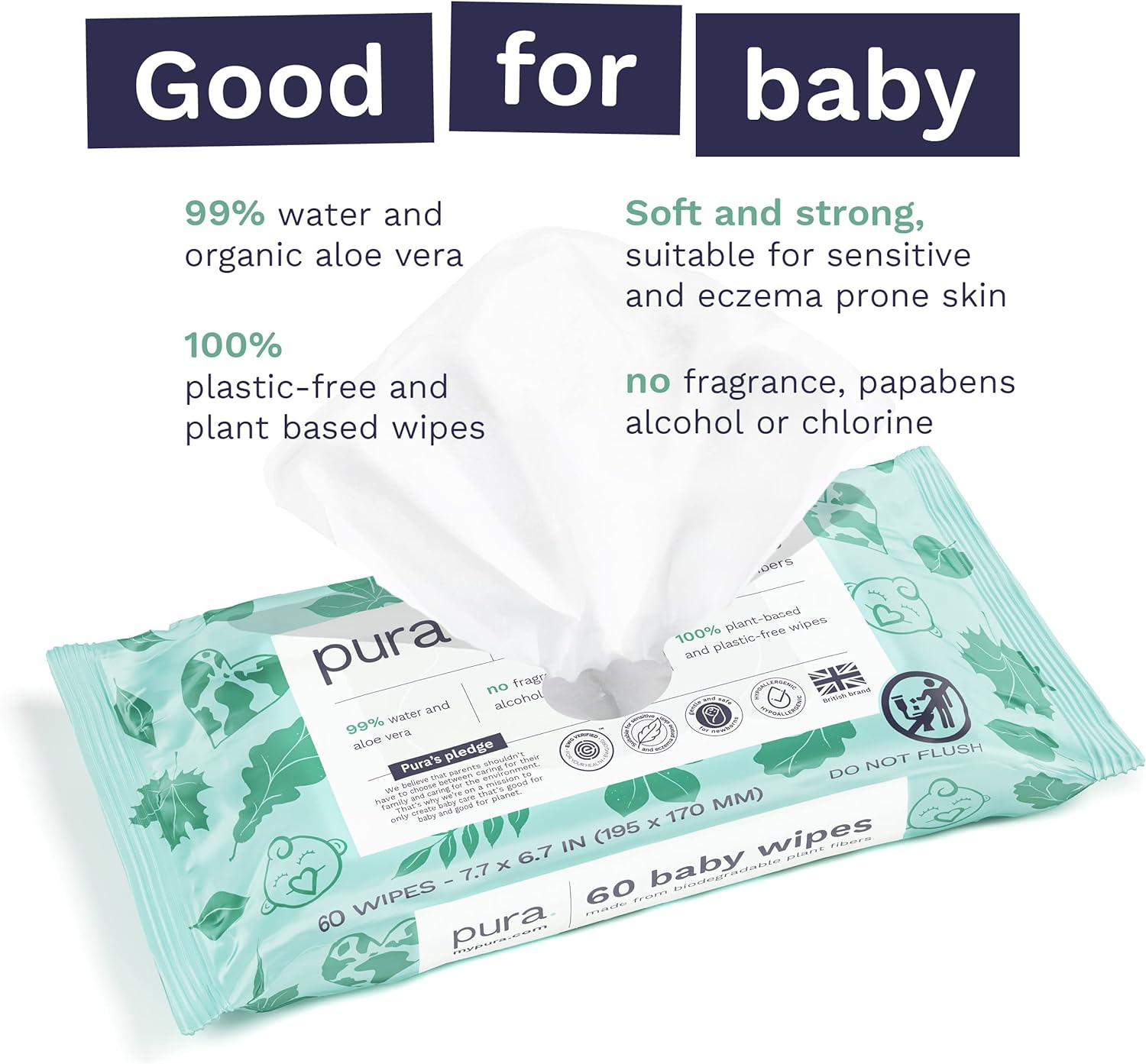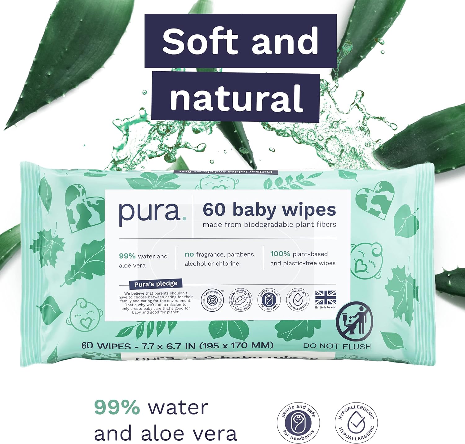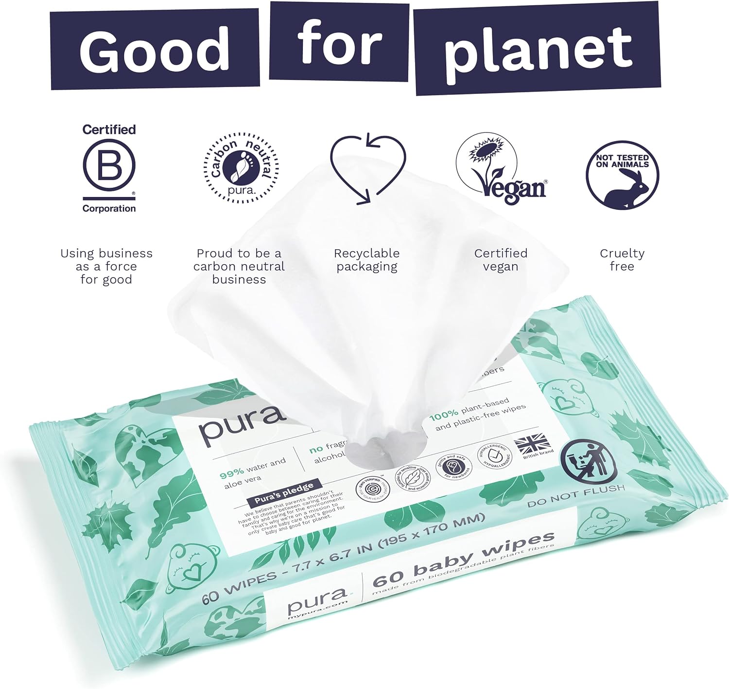 Pura has created a wipe that can safely clean up big messes without making one for the planet. Soft and strong, our 100% plastic-free wipes contain 99% water and aloe vera and are made from certified sustainably sourced biodegradable plant-fibers. Fragrance-free, EWG Verified and Allergy UK certified, they’re kind to babies and their world. Meet the Pura family Pura didn’t start in a boardroom. It was born in the British home of Guy and Abi Fennell. Created by parents, for parents, Pura was founded to make clean, safe and planet-friendly products affordable for all. Pura is a Carbon Neutral business and a certified B-Corp.