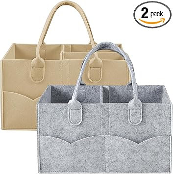 PandaEar 2 Pack Baby Diaper Caddy Organizer, Portable Diaper Holder Nursery Storage Basket for Wipes & baby stuff, Collapsible Baby Organizers with Divided Design (Grey/Brown)