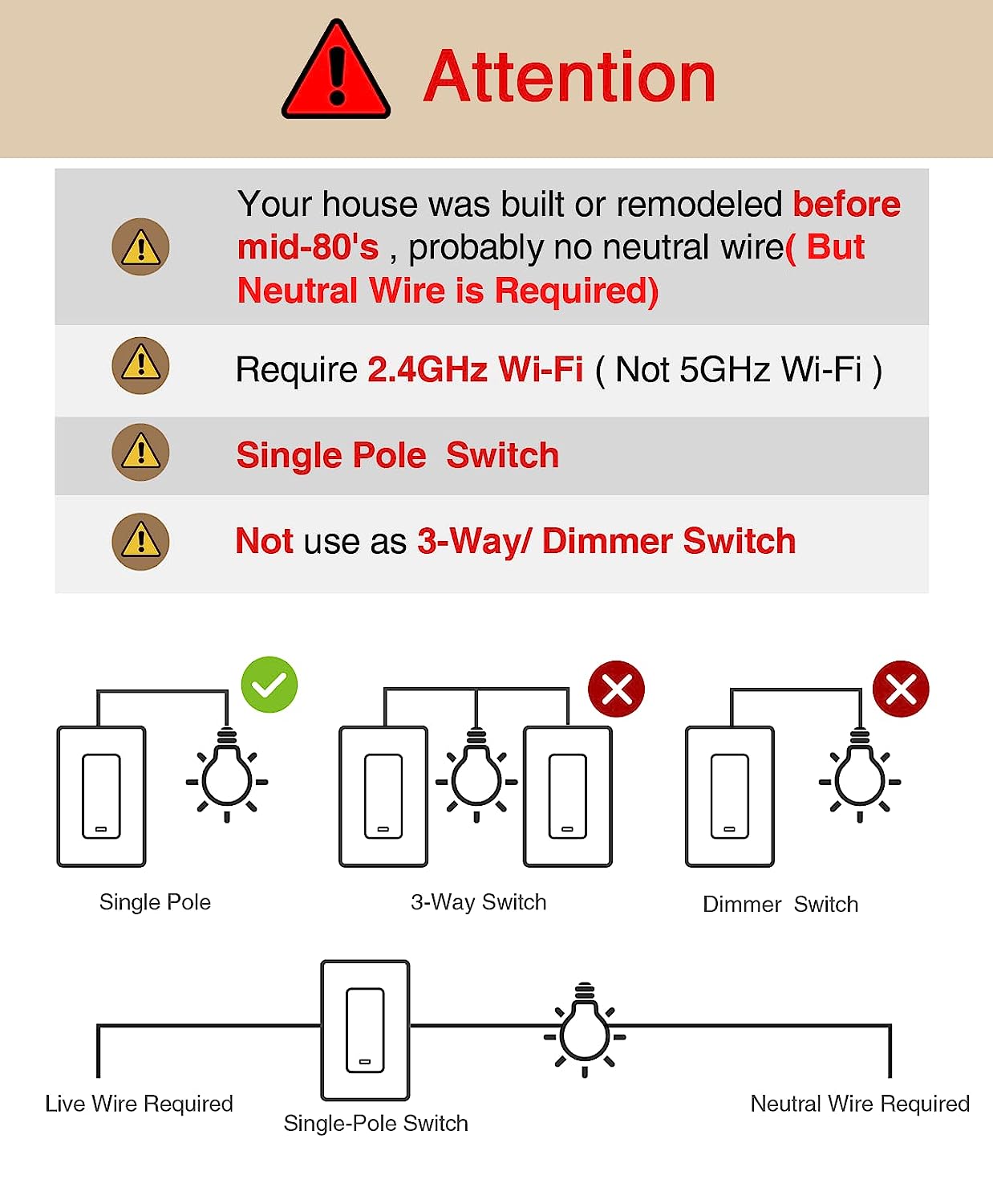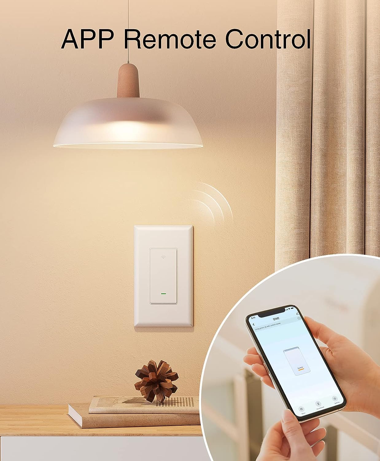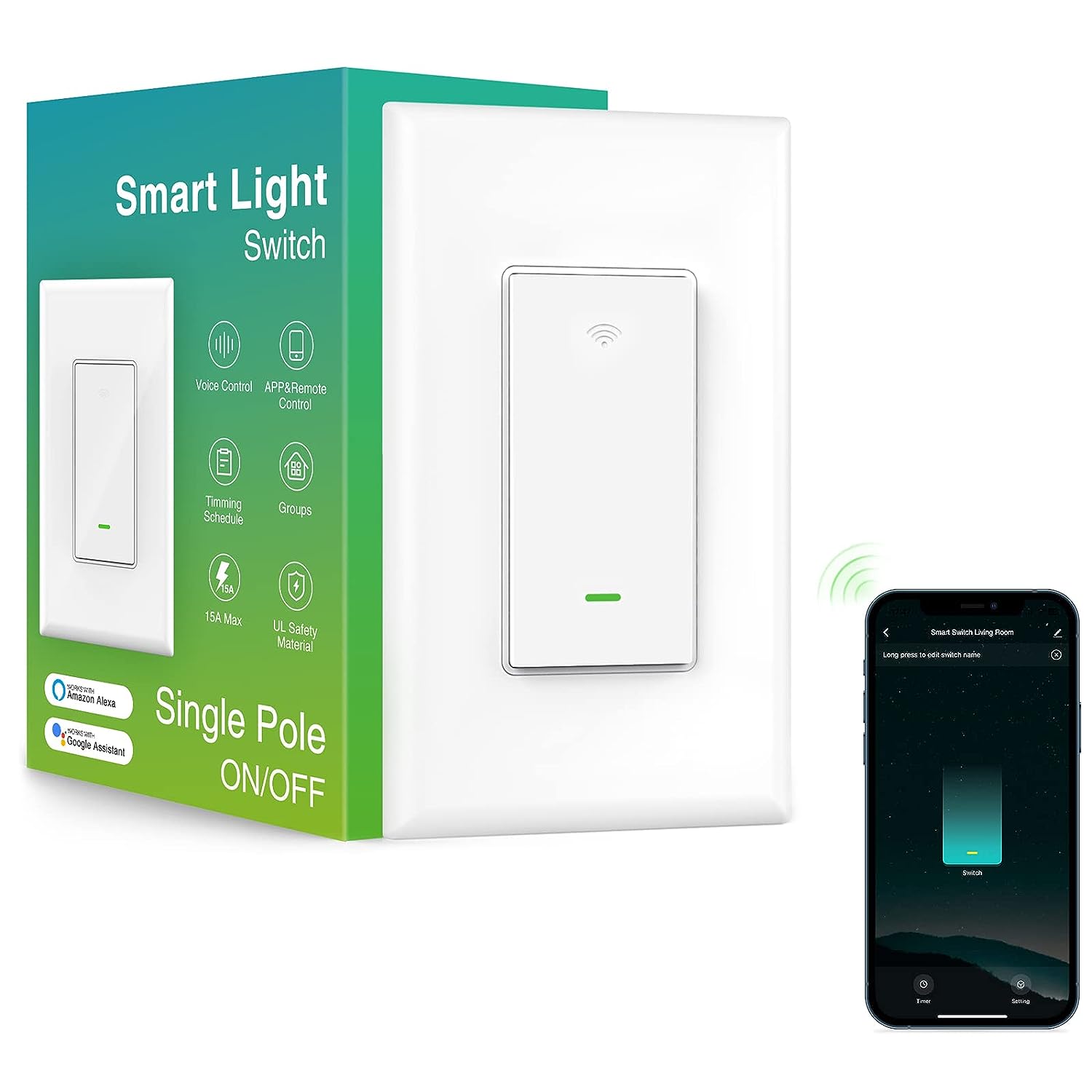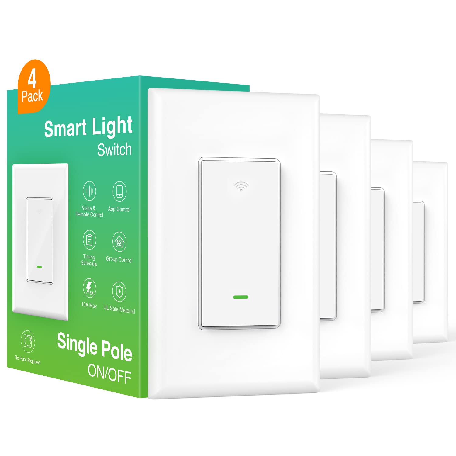 Our smart light switch comes with a timer and scheduling function, support voice, and APP control. Also, This 15 A smart switch is safer than other 10A switches. Max Power: 1800W. No hub required. The user manual will guide you step by step to set up. It’s very convenient to auto a smart home and also ideal little gadgets for elderly and physically challenged people.