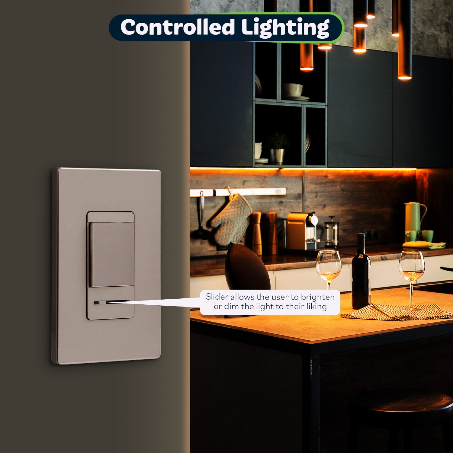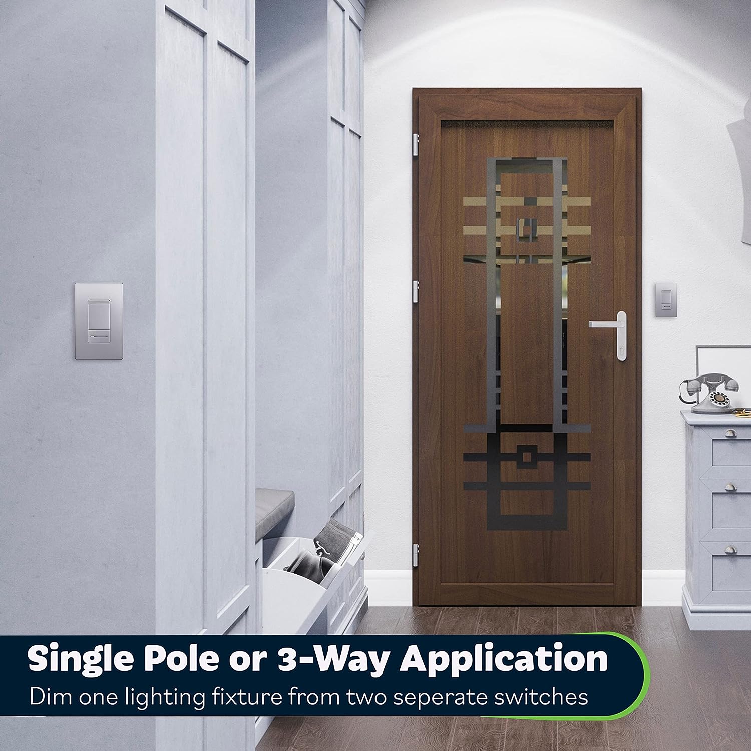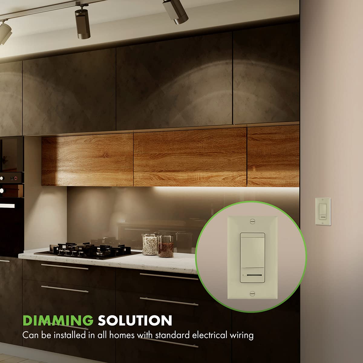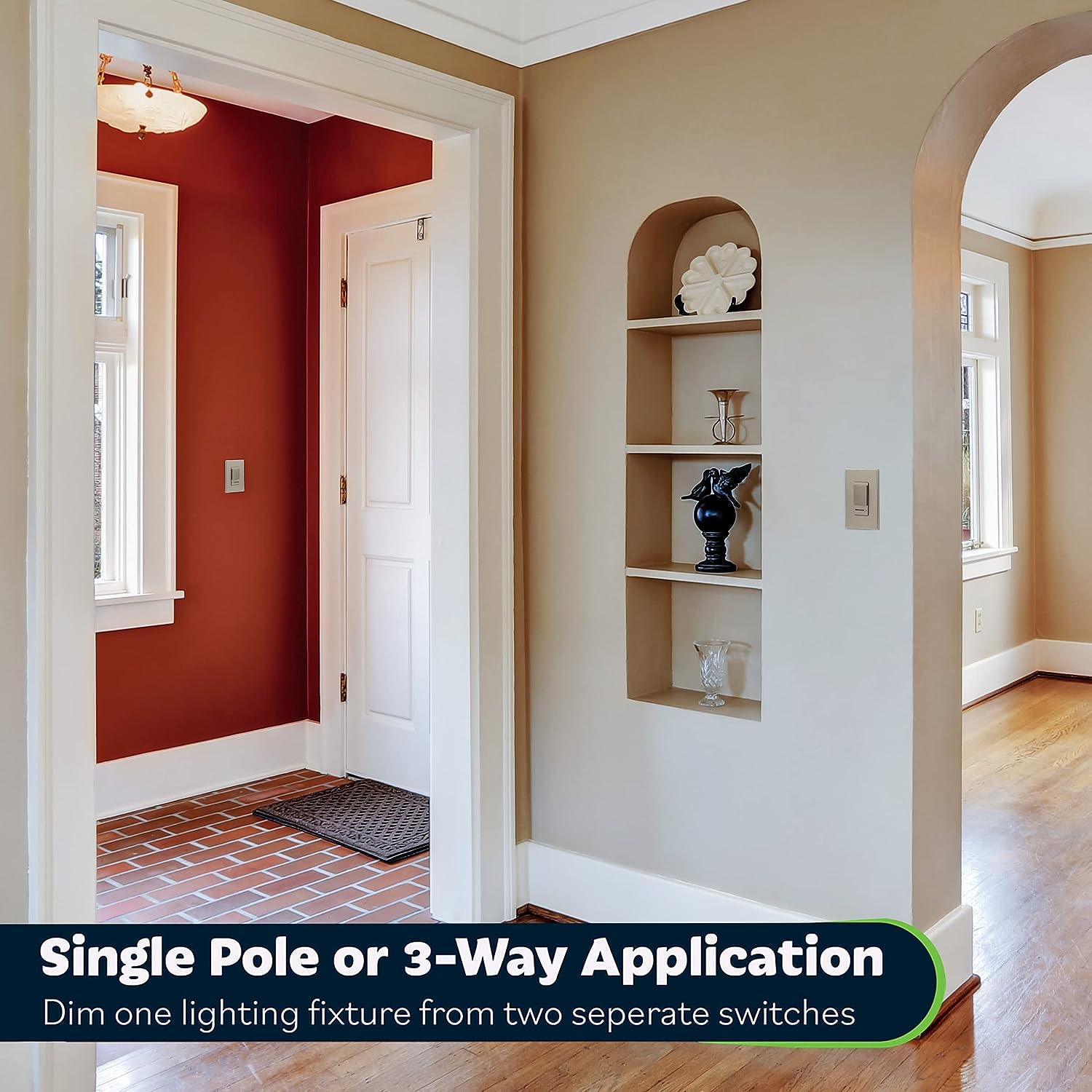 • Allows for full-range dimming controls of two separate light loads from the same wall switch location; perfect for both residential and commercial locations such as offices, showrooms, family rooms, home theaters, and more!