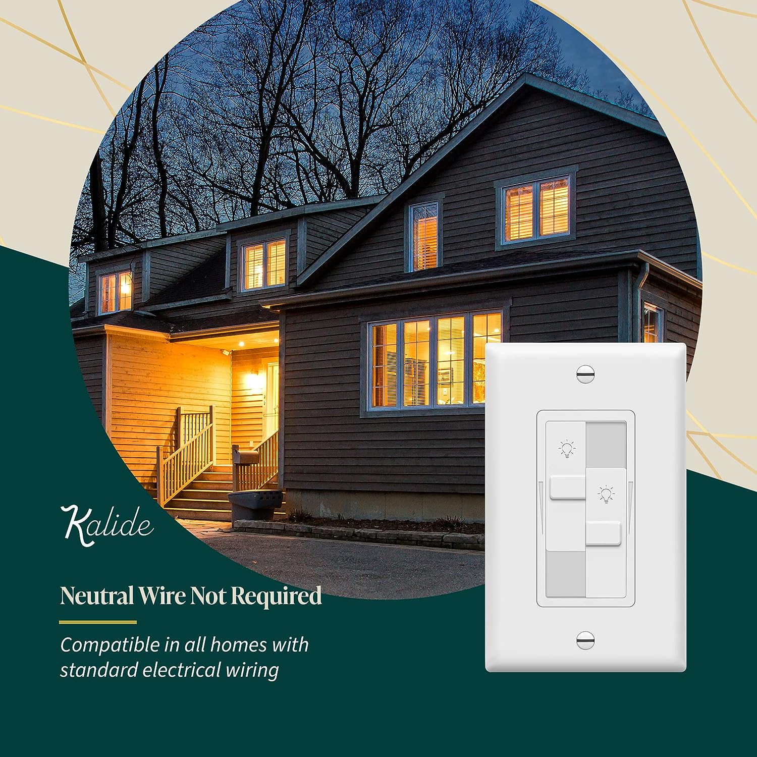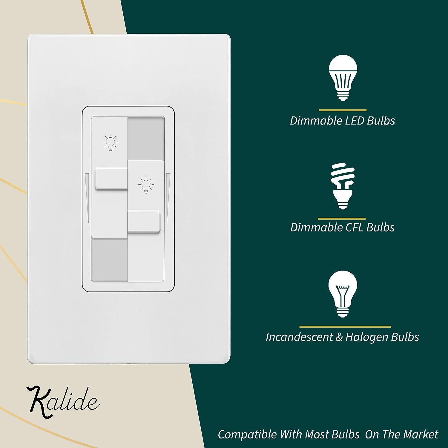 TOPGREENER Kalide Dual Load Dimmer Light Switch, Double LED Dimmer Switch, Full Range Dimming, Single Pole, 120VAC, 60Hz, 200W LED/CFL, Neutral Wire Not Required, TGDDS-W, White