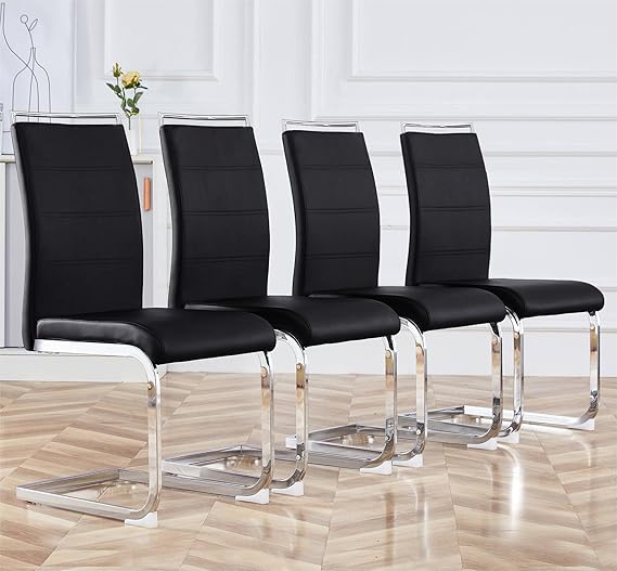 Baysitone Modern Dining Chairs Set of 4, PU Faux Leather High Back Upholstered Dining Room Side Chair with Horizontal Stripe Backrest Design for Kitchen Living Room Vanity Patio Dinner Chairs, Black