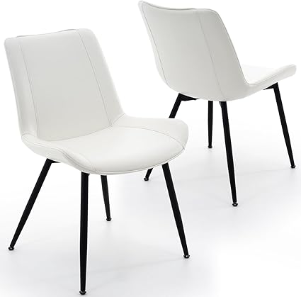 Brage Living Dining Chairs Set of 2, PU Leather Modern Armless Kitchen Dining Room Chairs, Upholstered Accent Side Chairs with Metal Legs (Pearl White)