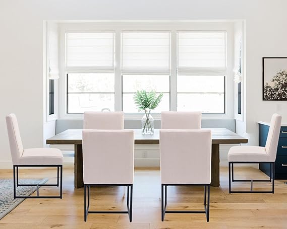 Century Modern Dining Chairs Set of 6, Linen Fabric Kitchen & Dining Room Chair, Upholstered Dining Chair Side Chair with Black Finish Metal Frame, Cream 6 PC