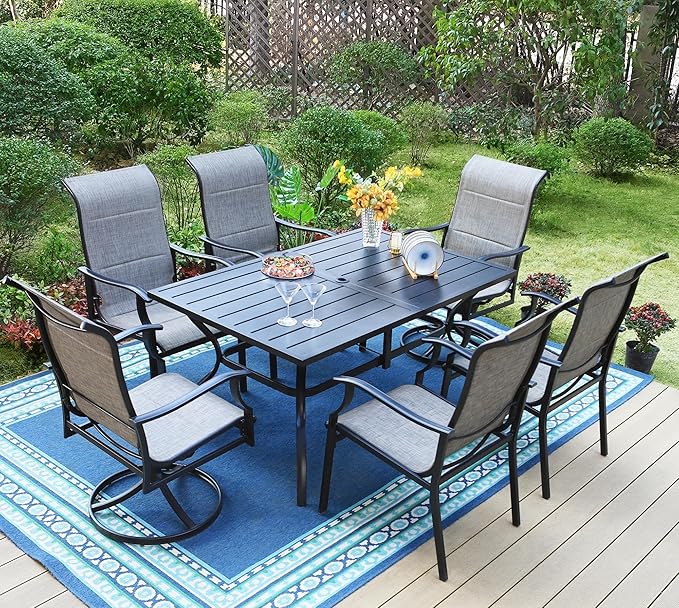 PHI VILLA Patio Dining Set for 6 Clearance, Outdoor Dining Table with Umbrella Hole and 6 Patio Dining Chairs Waterproof & Rustproof Suitable for All Weather