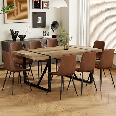 Dining Table Set for 8, 71'' Wood Dining Table and Chairs Set of 8, Modern Rectangle Wood Dining Table, Fabric Dining Chairs 8, Suitable for Home, Kitchen Dining Room Living Room
