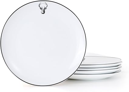 7.5" Coupe Dinner Plate, Set of 6, Fine Porcelain, Stackable 7.5 Inch Dinner Plates, Lead-Free, Dishwasher, Microwave, Freezer, Oven Safe, for Everyday Use (Deer Pattern)