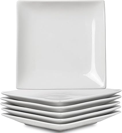Appetizer Plates Set of 6, 6 Inch Porcelain Dessert Plates, White Stackable Square Salad Plates for Snack Steak Bread Butter, Chip and Scratch Resistant, Microwave and Dishwasher Safe