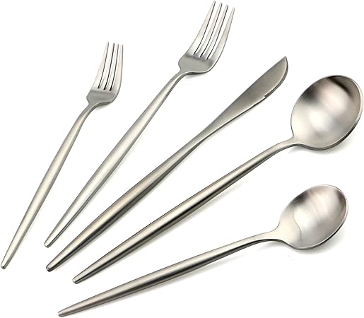 20-Pieces Silver 18/10 Stainles Steel Flatware Set, Knife Fork Spoon Silverware Set, Dinnerware Set Service for 4, Matte Finish, Dishwasher Safe