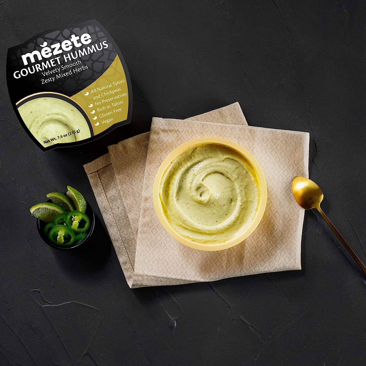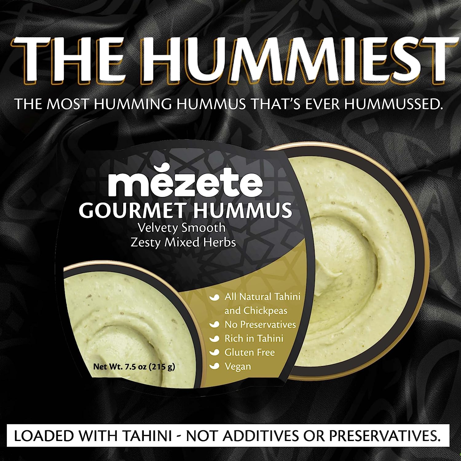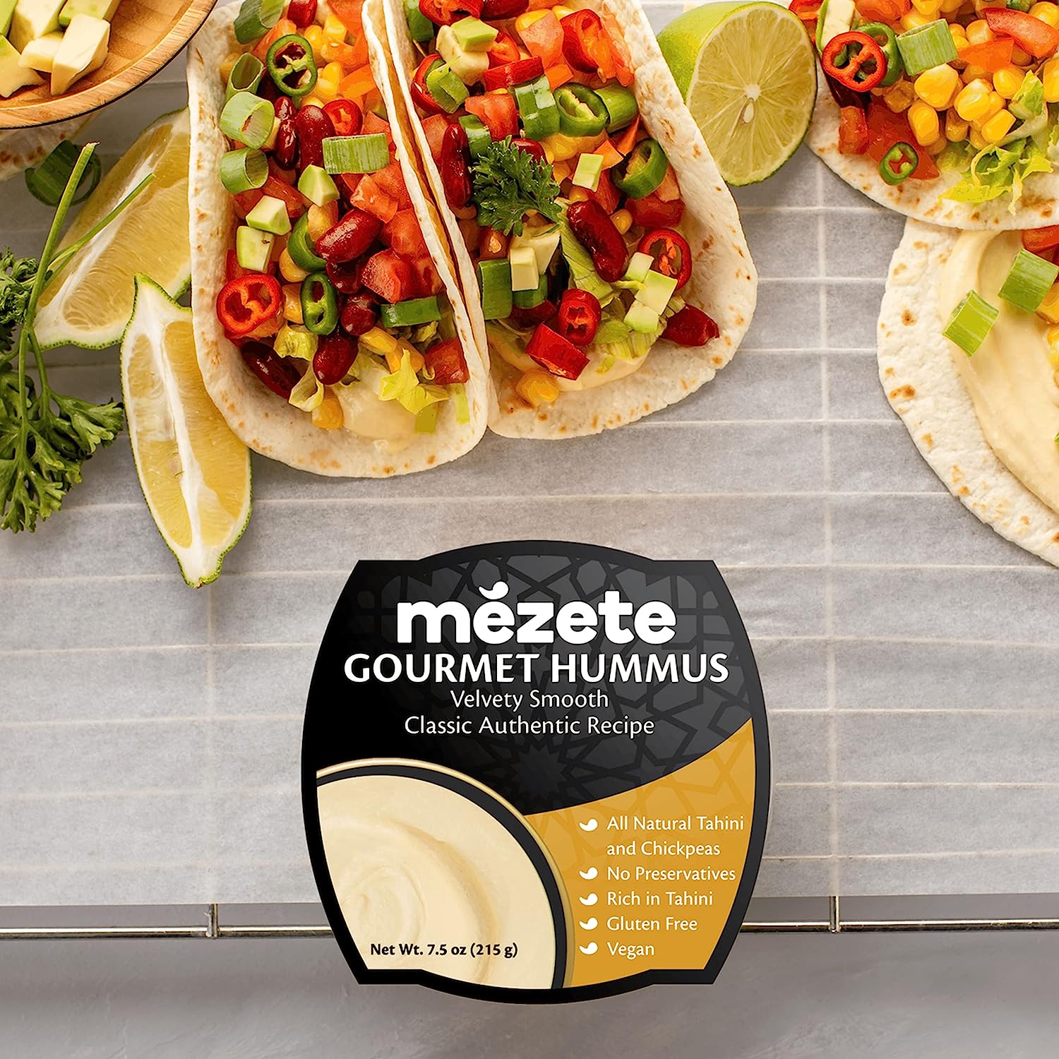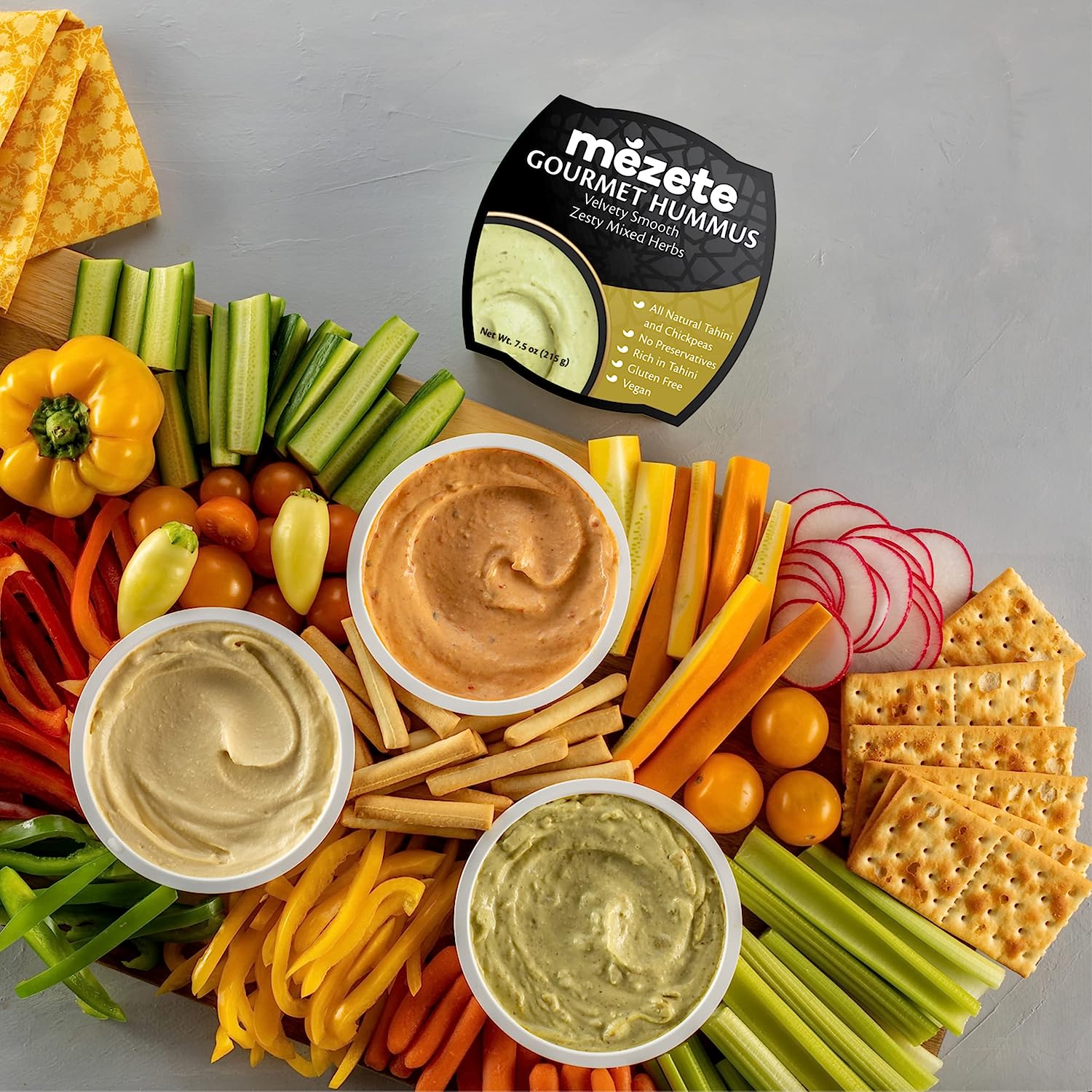 Mezete Classic Hummus, 100% All Natural Dips and Spreads, On the Go Tahini Rich Vegan Dip with No Preservatives, Gluten-Free, Shelf-Stable, and No Refrigeration Required, 7.5 Ounce