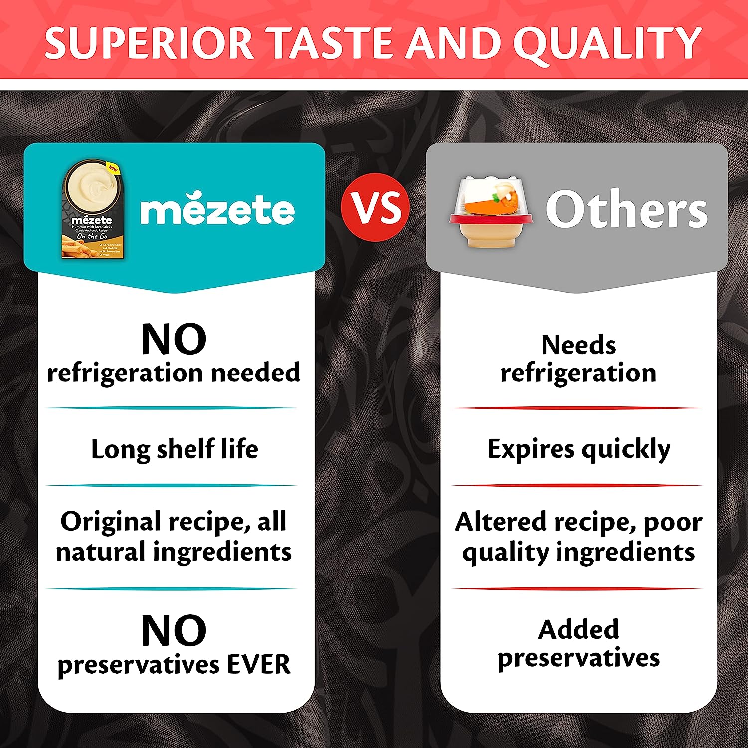 • Side Dish for Every Meal: Mezete hummus can be served as a side dish for every meal. So, ramp up your everyday meals with this healthy delight and enjoy a flavorful family time.