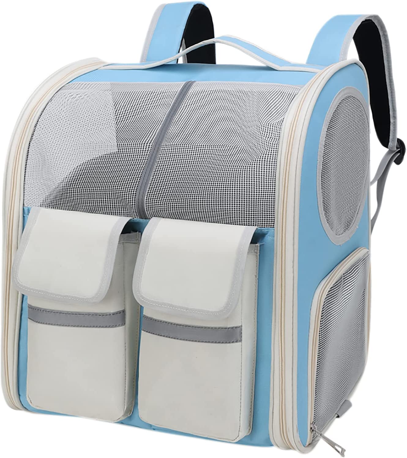 • 【Great Ventilation & 3 Pockets】 There are 4 mesh windows on 3 sides of the bag, ensuring fresh air and maximum ventilation. With the open mesh pocket on the right side and 2 close pockets on the front, you can carry pet water bottle, pet food, nail clipper, leash etc.