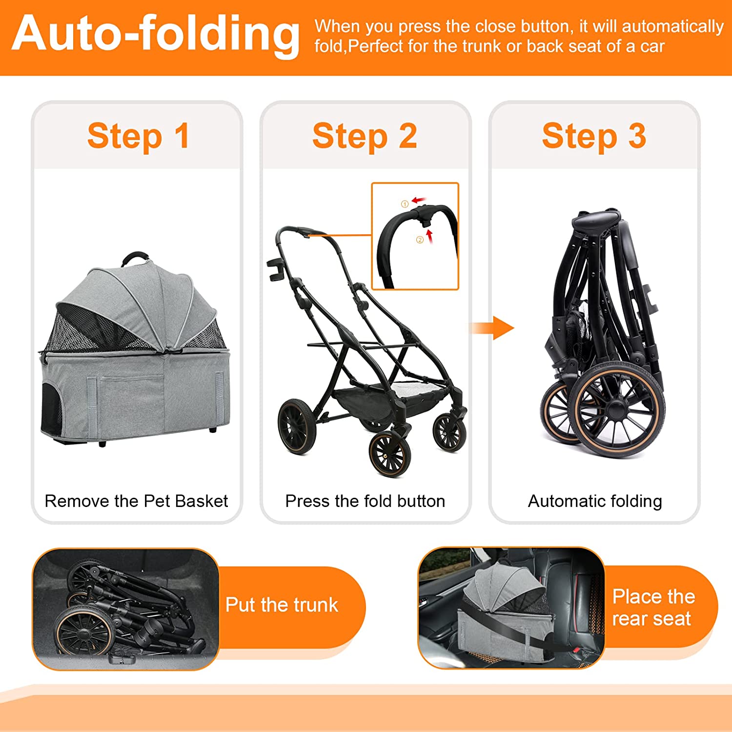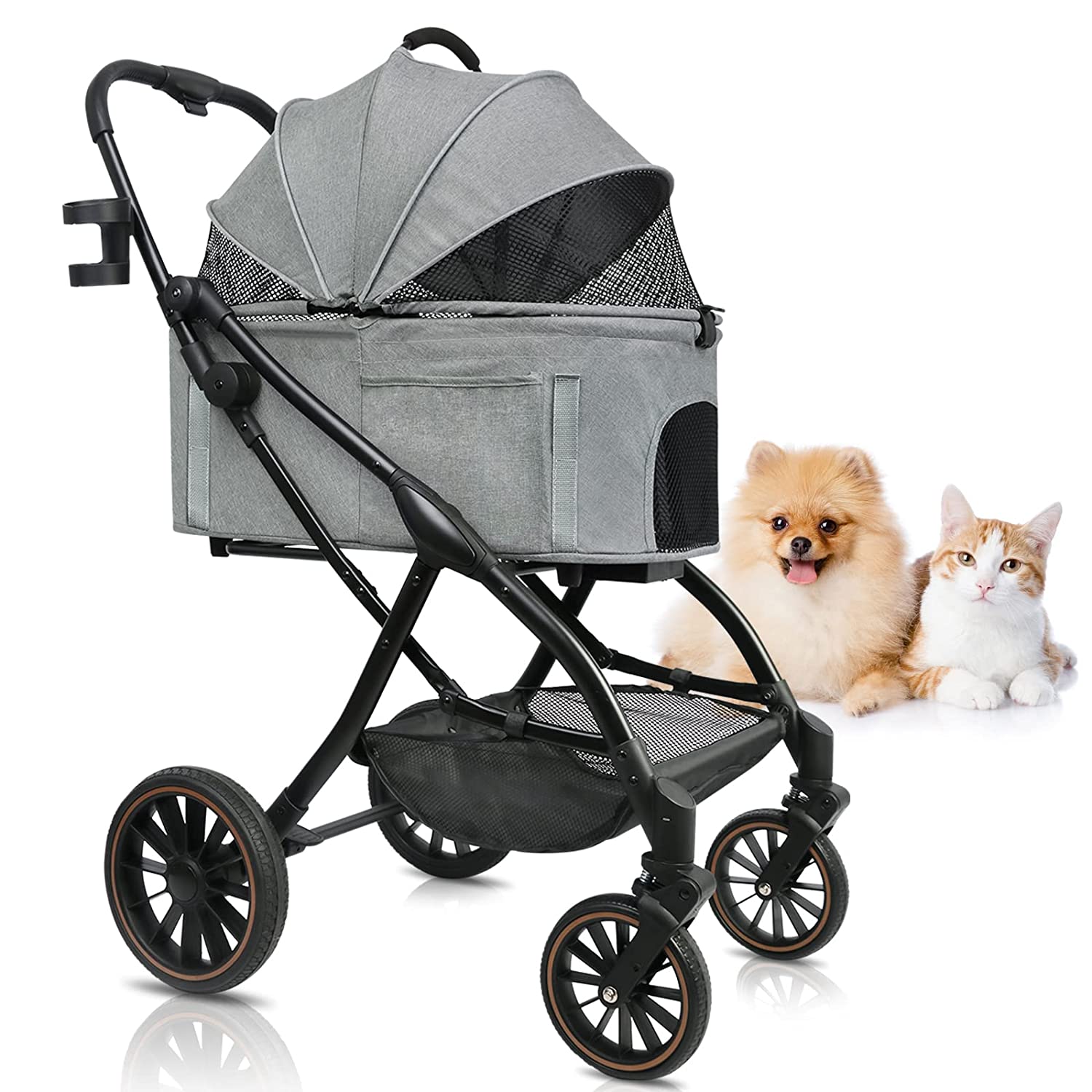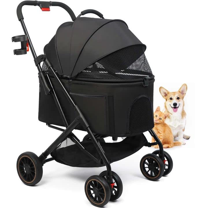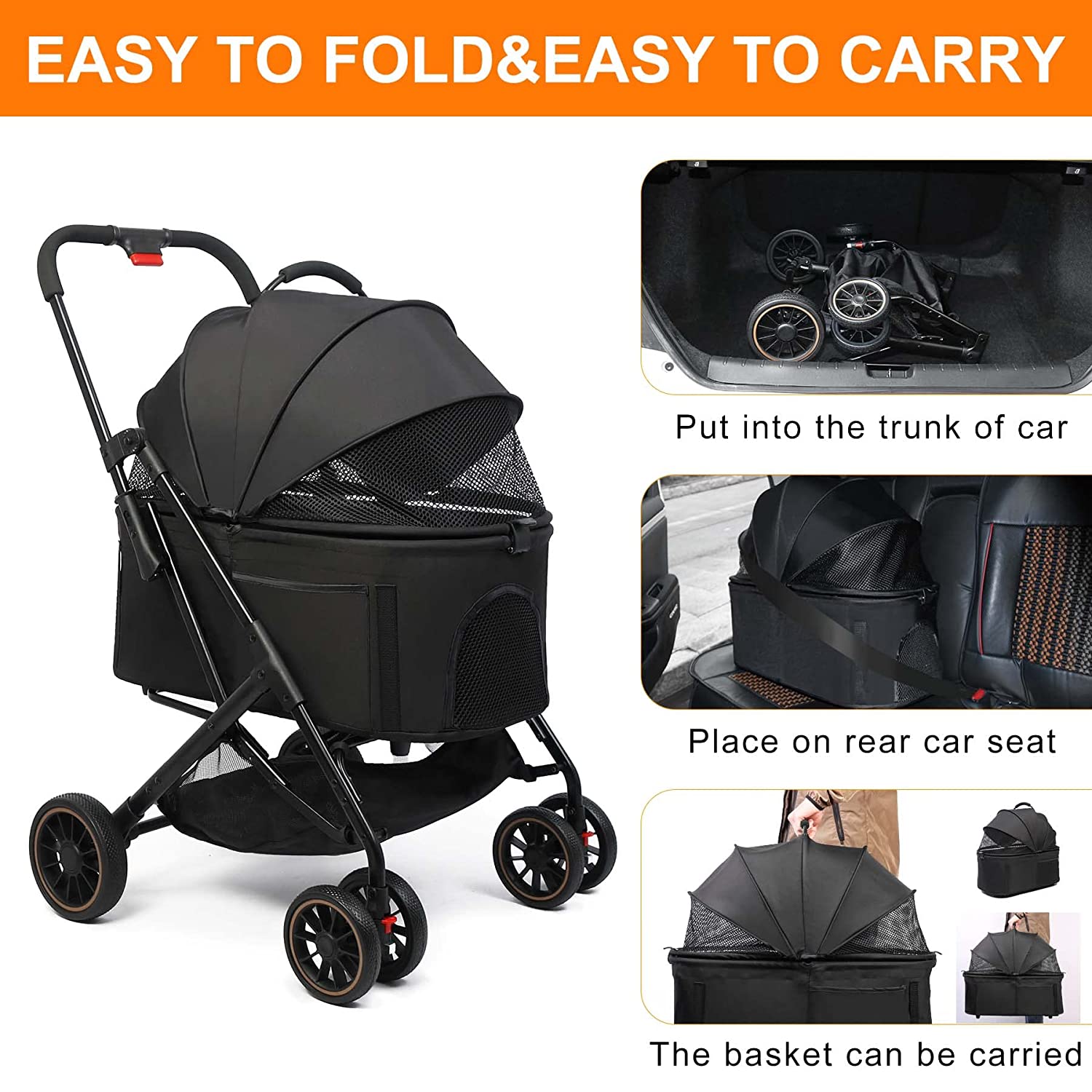 Dog Strollers for Small Medium Dogs and Cats - Easy one-Handed Folding,Rubber Wheel with Shock absorbers,Front Wheel 360° Rotating,Removable Basket with no Zipper Entry,Large Storage Space