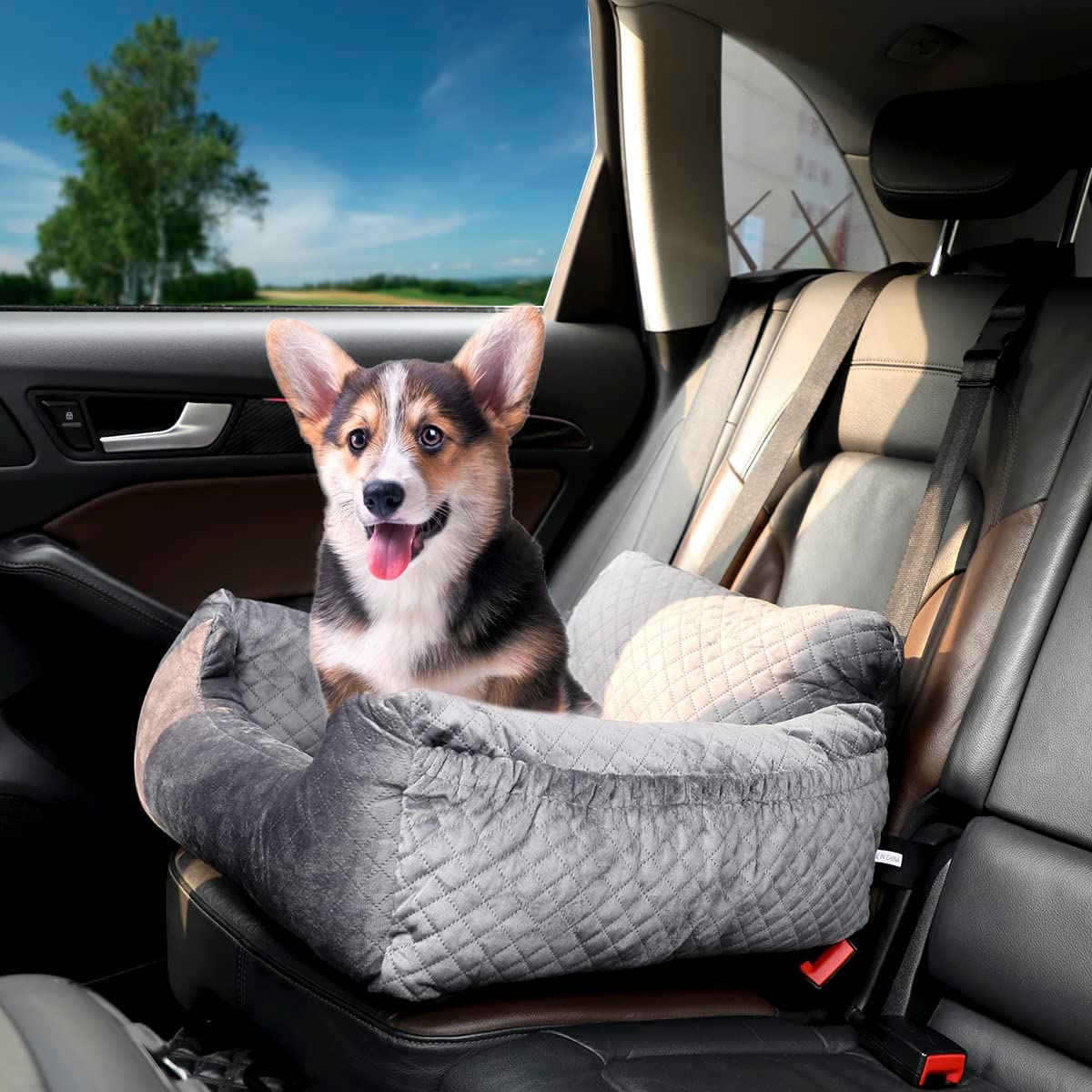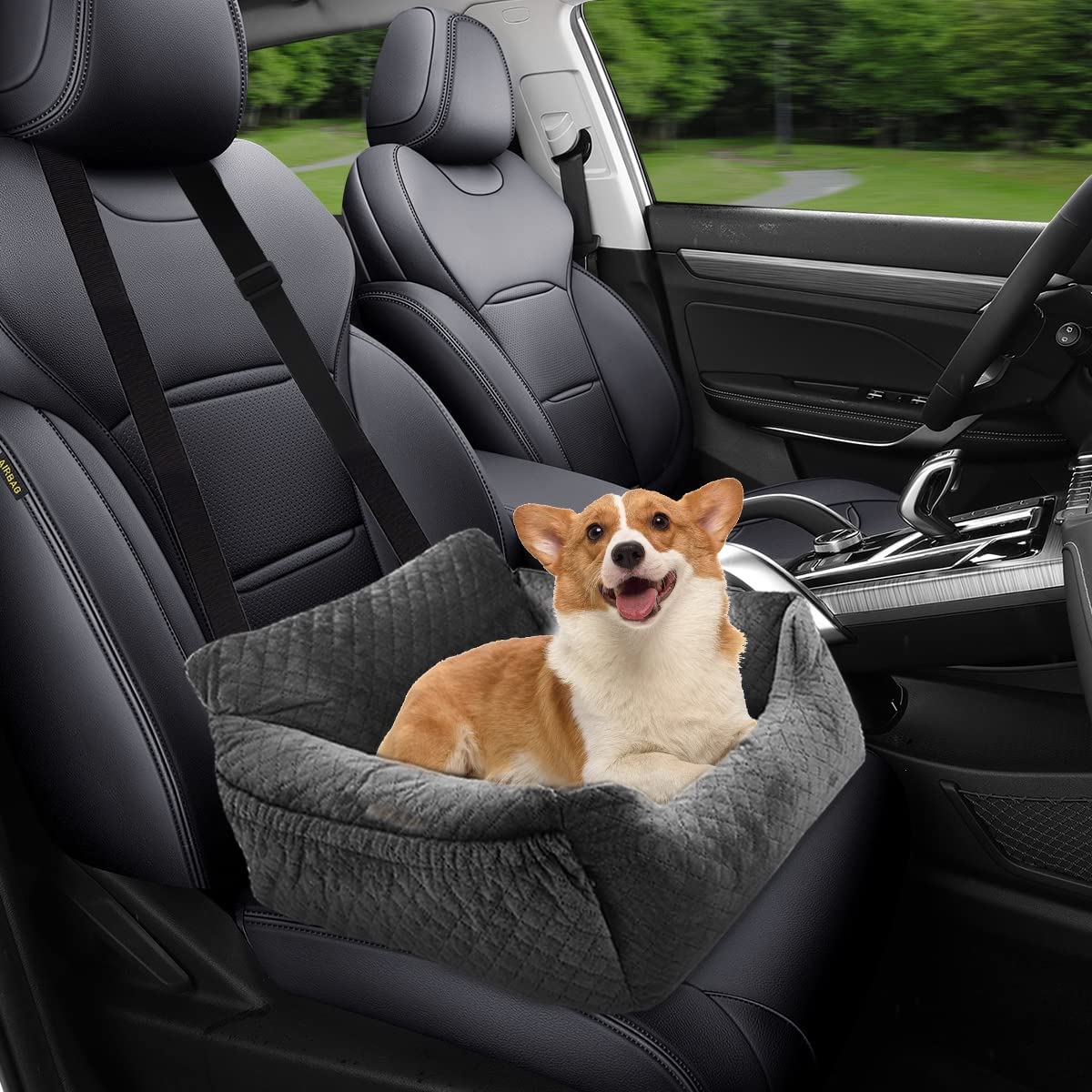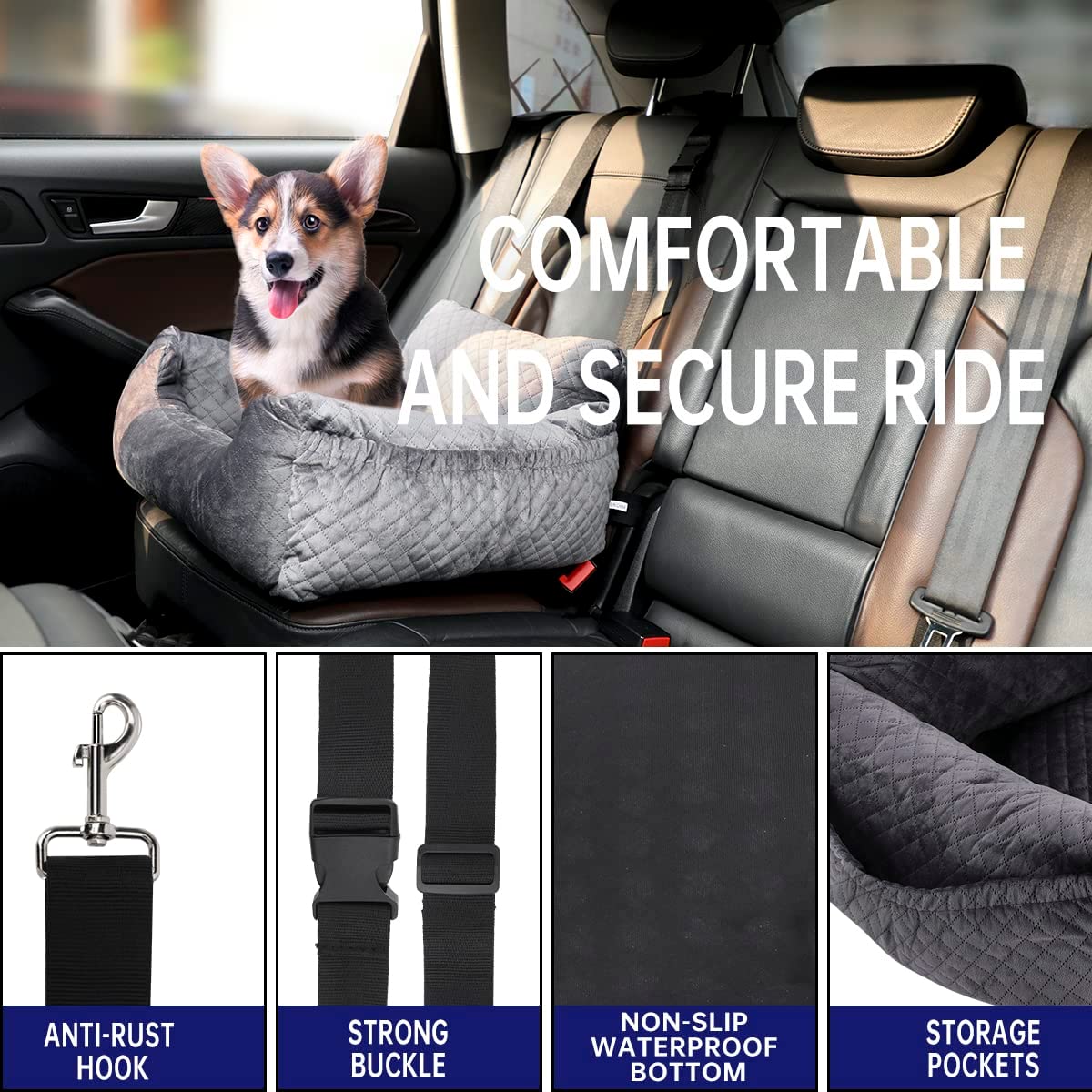 GUULUU Dog Car Seat - Booster Seat for Car with Detachable & Washable Dog Bed, Storage Pockets, Clip-On Safety Leash, Non-Slip Waterproof Bottom - Ideal for Small and Medium Dogs