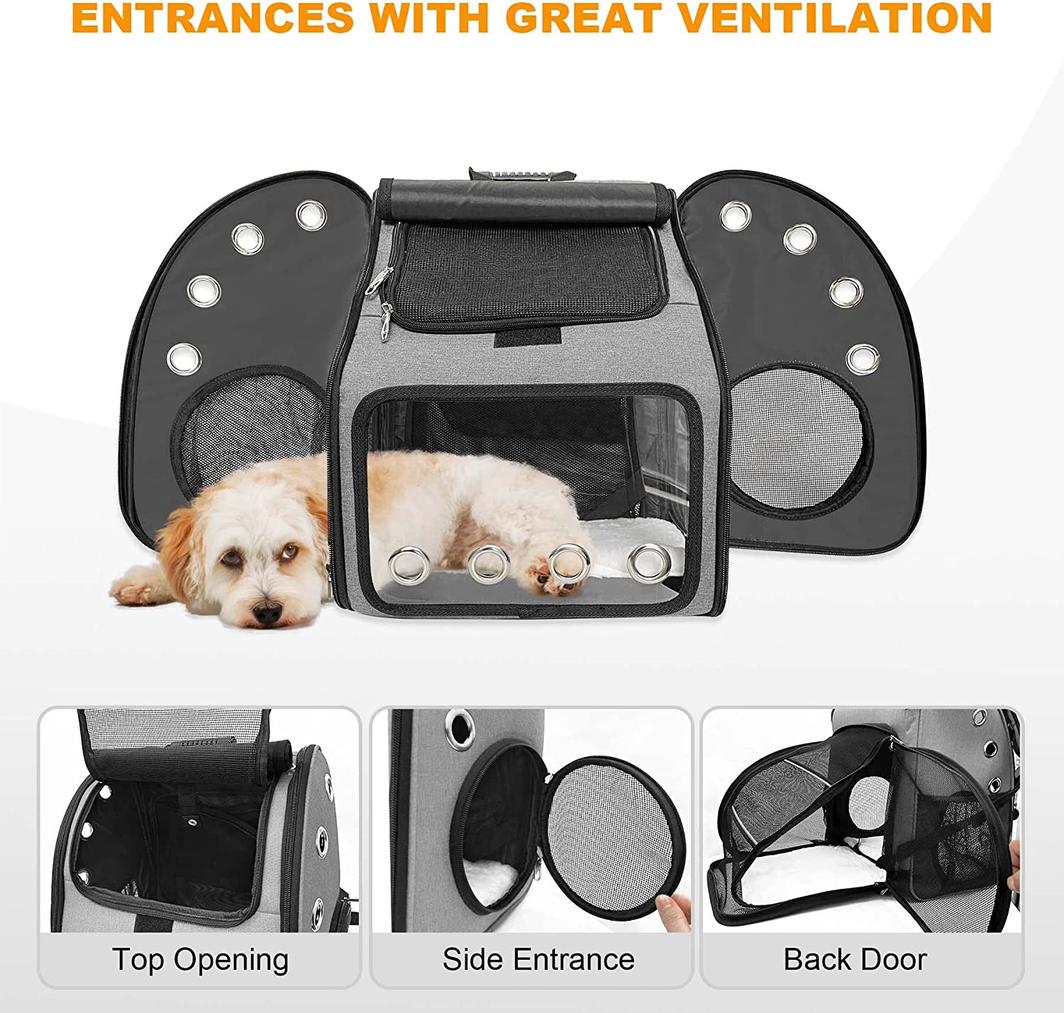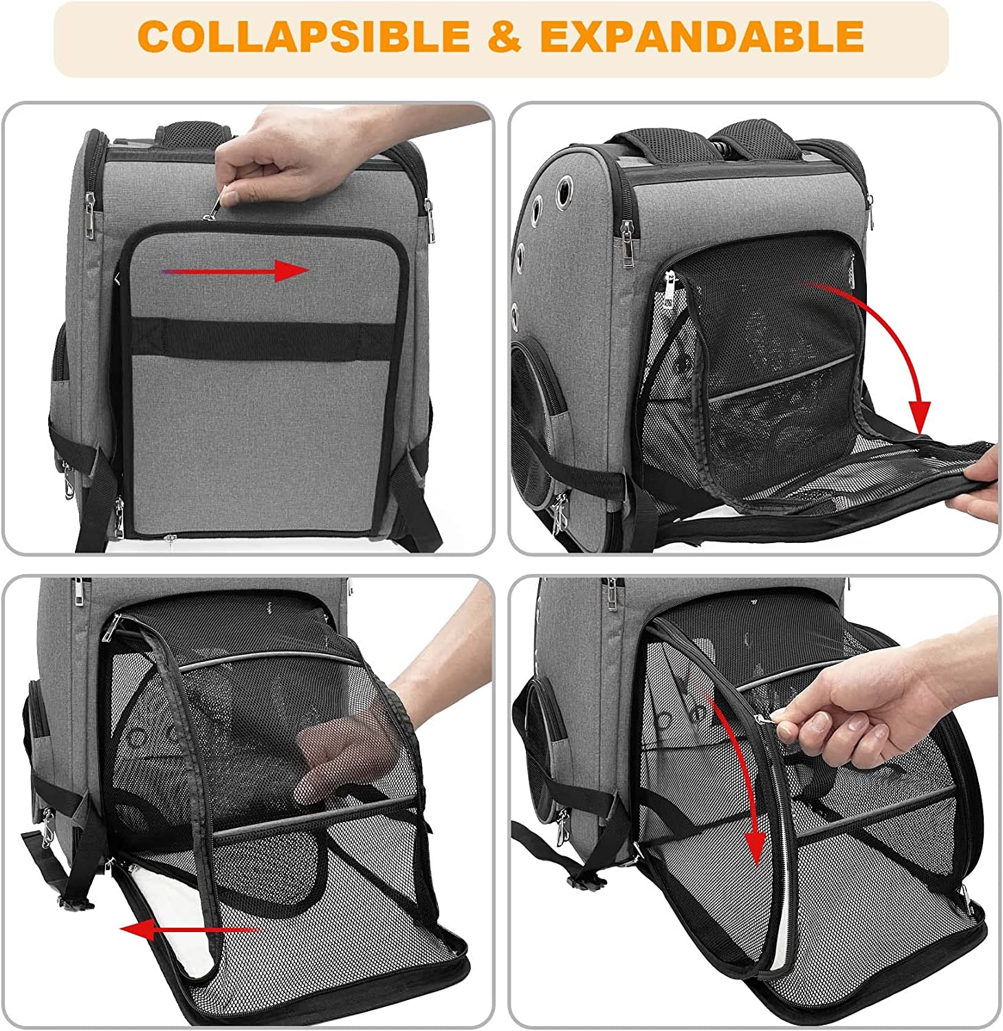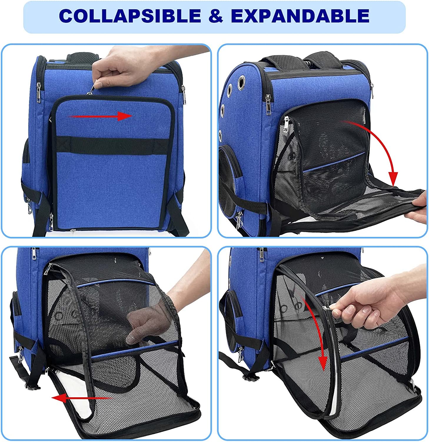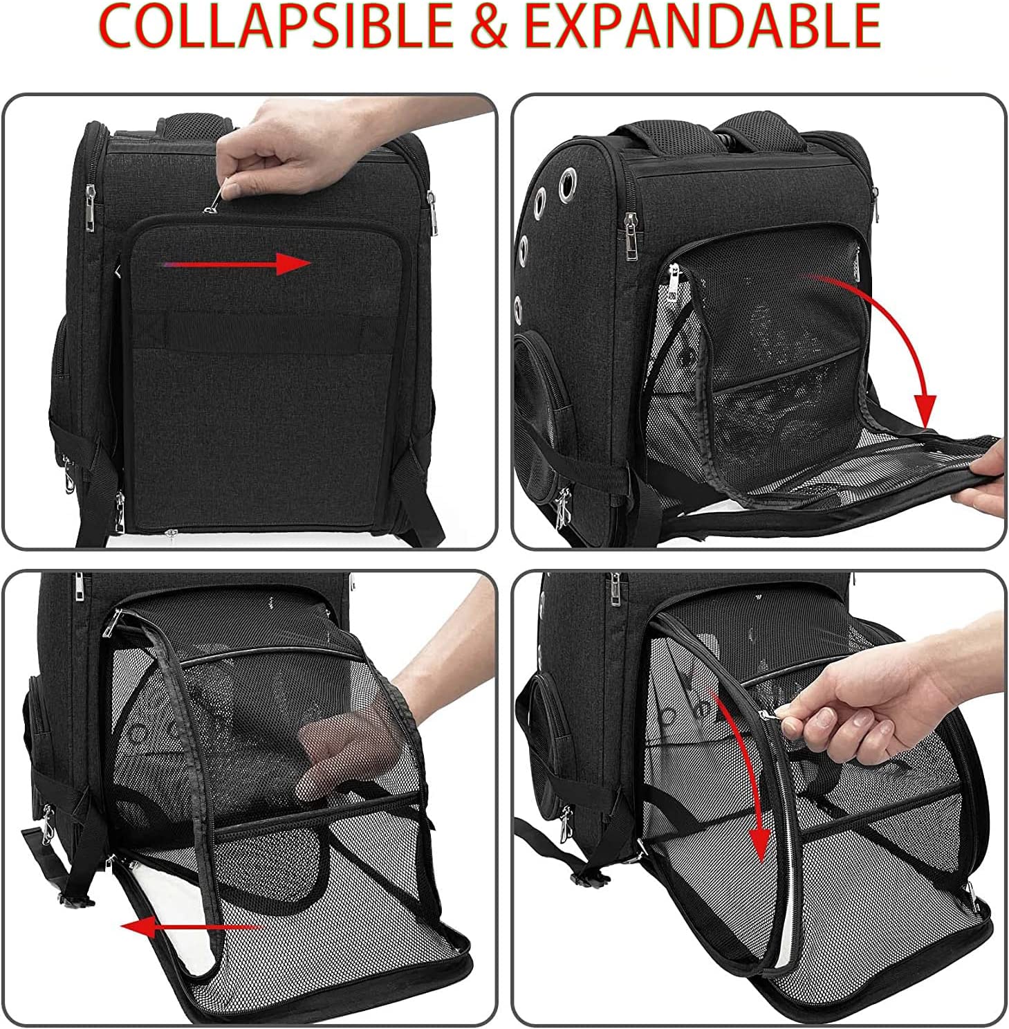 Helcb Expandable Cat Carrier for Small to Medium Sized Pets up to 15 Lb, Airline Approved Foldable Breathable mesh Backpack, Portable Cats Bag Ideal for Travel/Hiking/Camping