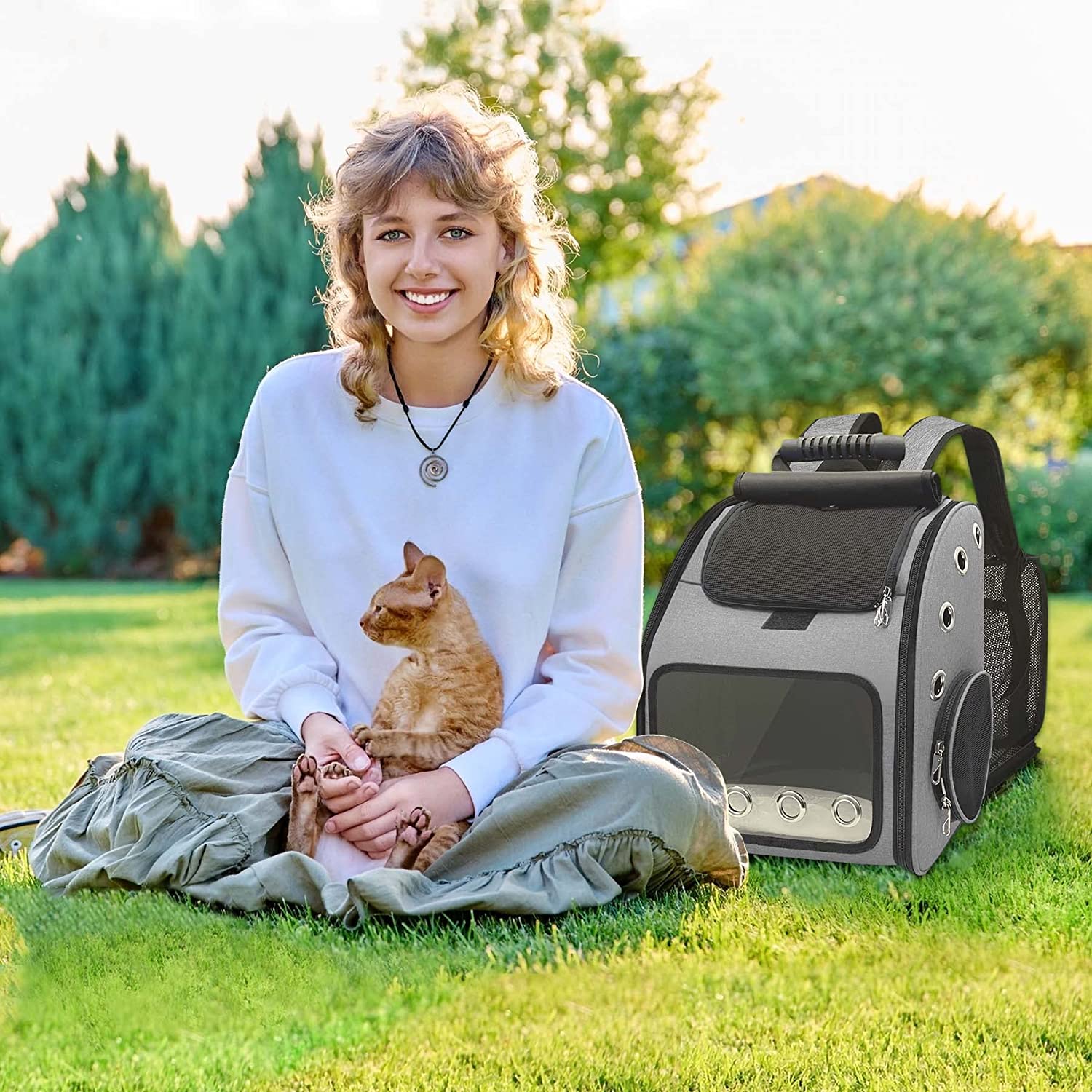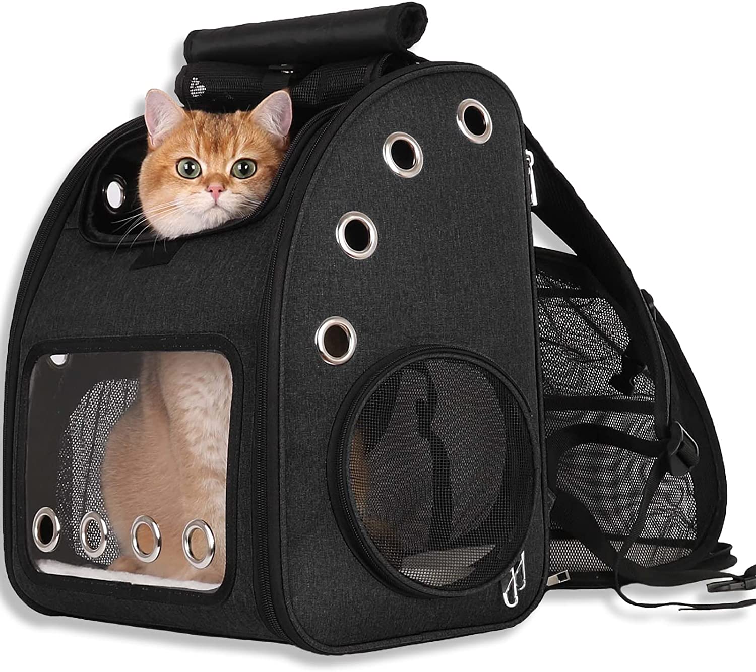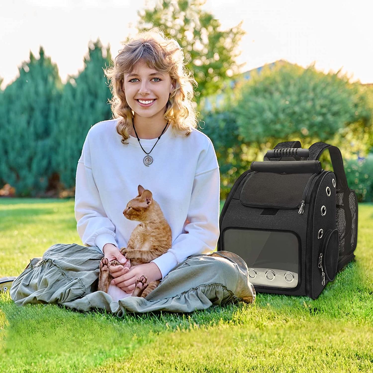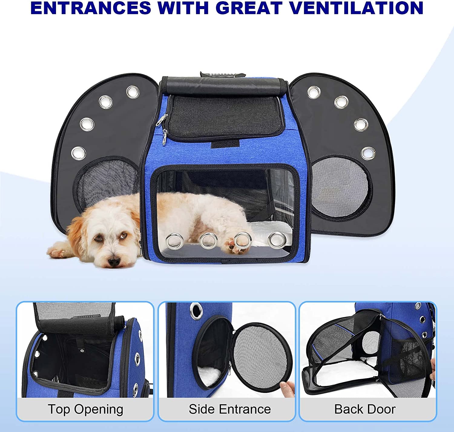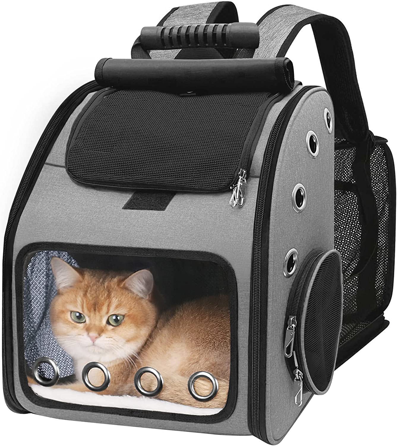 Helcb Expandable Cat Carrier for Small to Medium Sized Pets up to 15 Lb, Airline Approved Foldable Breathable mesh Backpack, Portable Cats Bag Ideal for Travel/Hiking/Camping