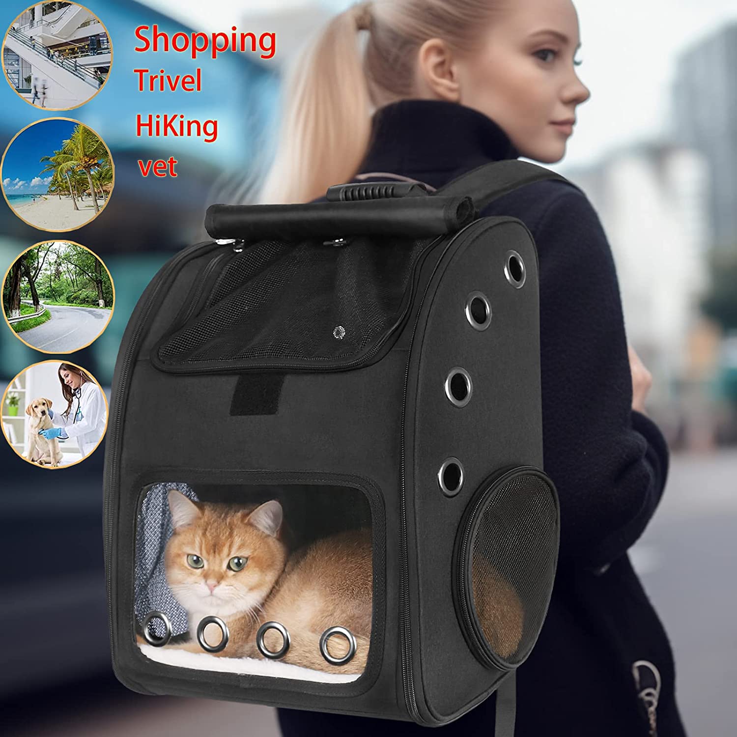• COMFORTABLE TO WEAR & PORTABLE: The back and shoulder strap are equipped with padding, which can increase the comfort when using. The waist buckle is equipped to provide you with additional support, which helps to reduce the load during long distance travel. The handle design on the top of the backpack makes the cat dog backpack carrier more portable and can be used for traveling, cycling, camping, etc.