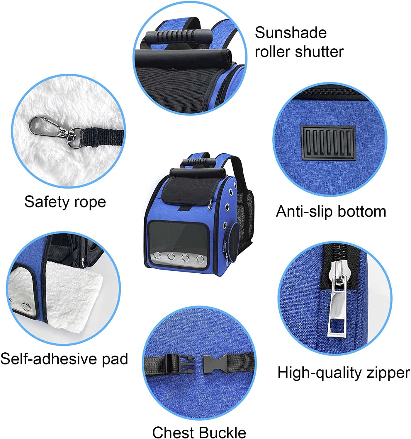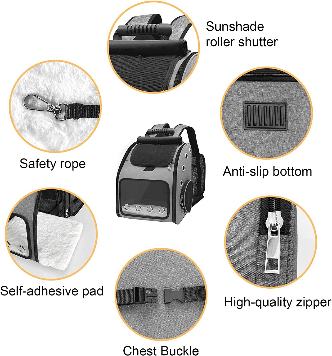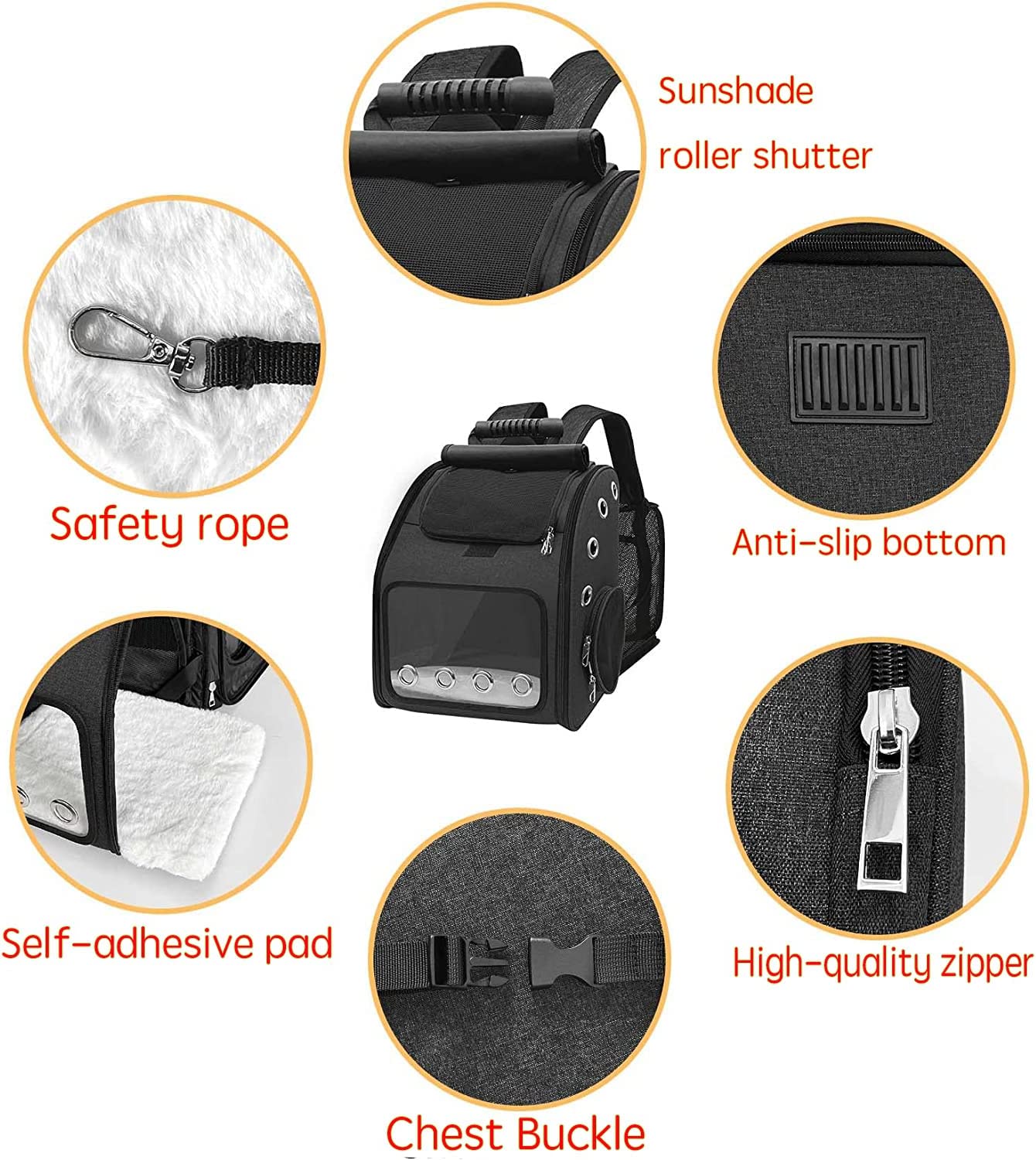 • STURDY & SAFETY DESIGN: Made of High quality cationic fabric and 210D nylon lining, soft feel, not easy to fade, wrinkle resistant and wear-resistant, environmentally friendly, non-toxic, non-irritating, and can be used for a long time while providing safety and comfort for pets. The dog cat carrier backpacks has a built-in hook safety rope to prevent your pet from escaping.