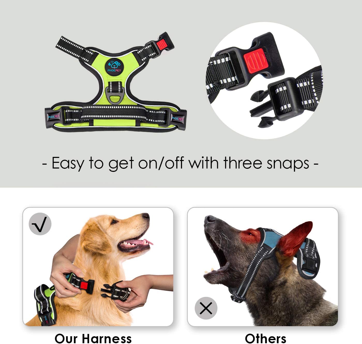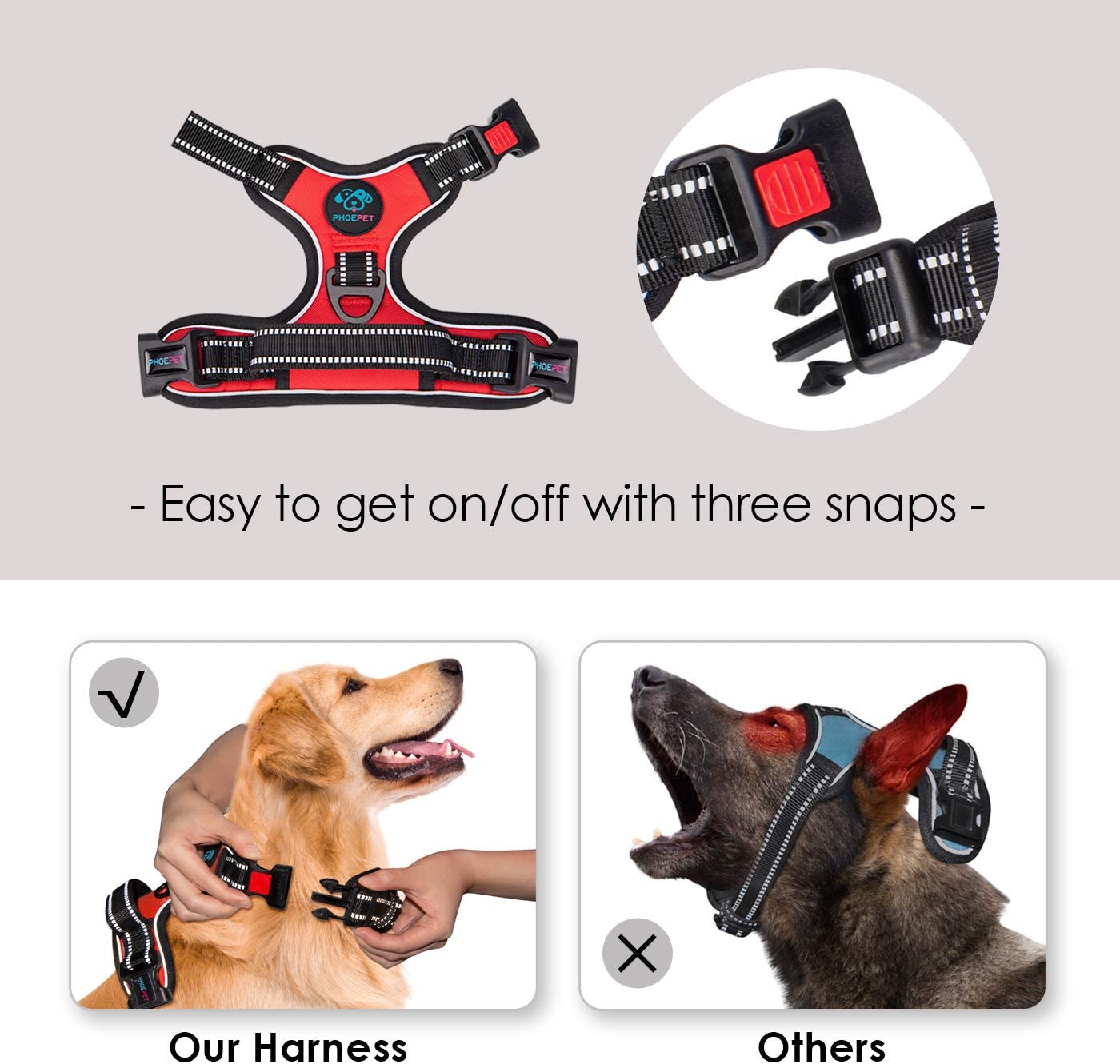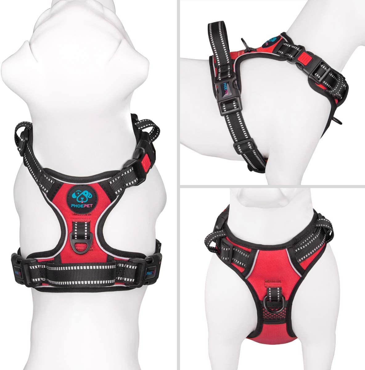 PHOEPET No Pull Dog Harness Medium Reflective Front Clip Vest with Handle,Adjustable 2 Metal Rings 3 Buckles,[Easy to Put on & Take Off](M, Orange)
