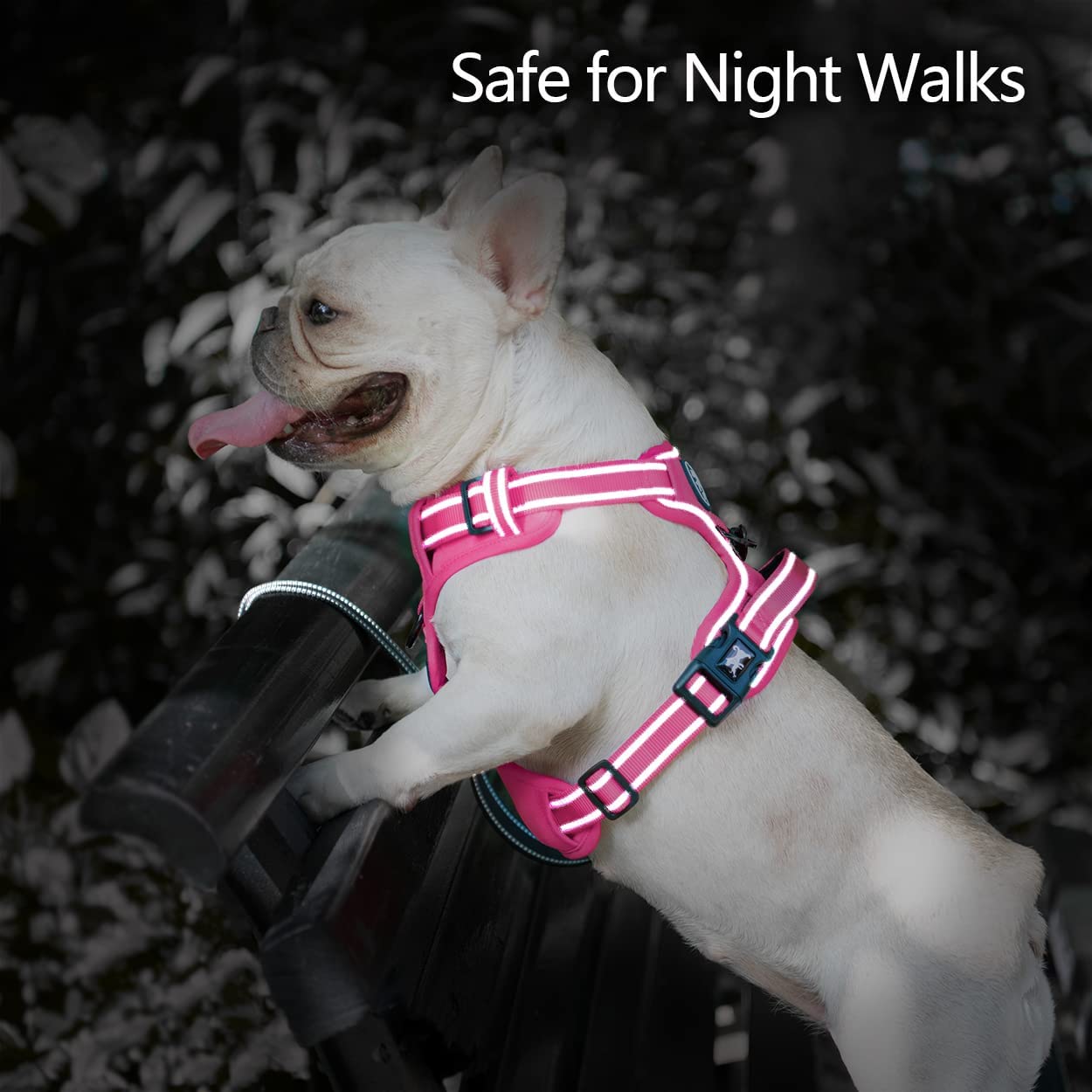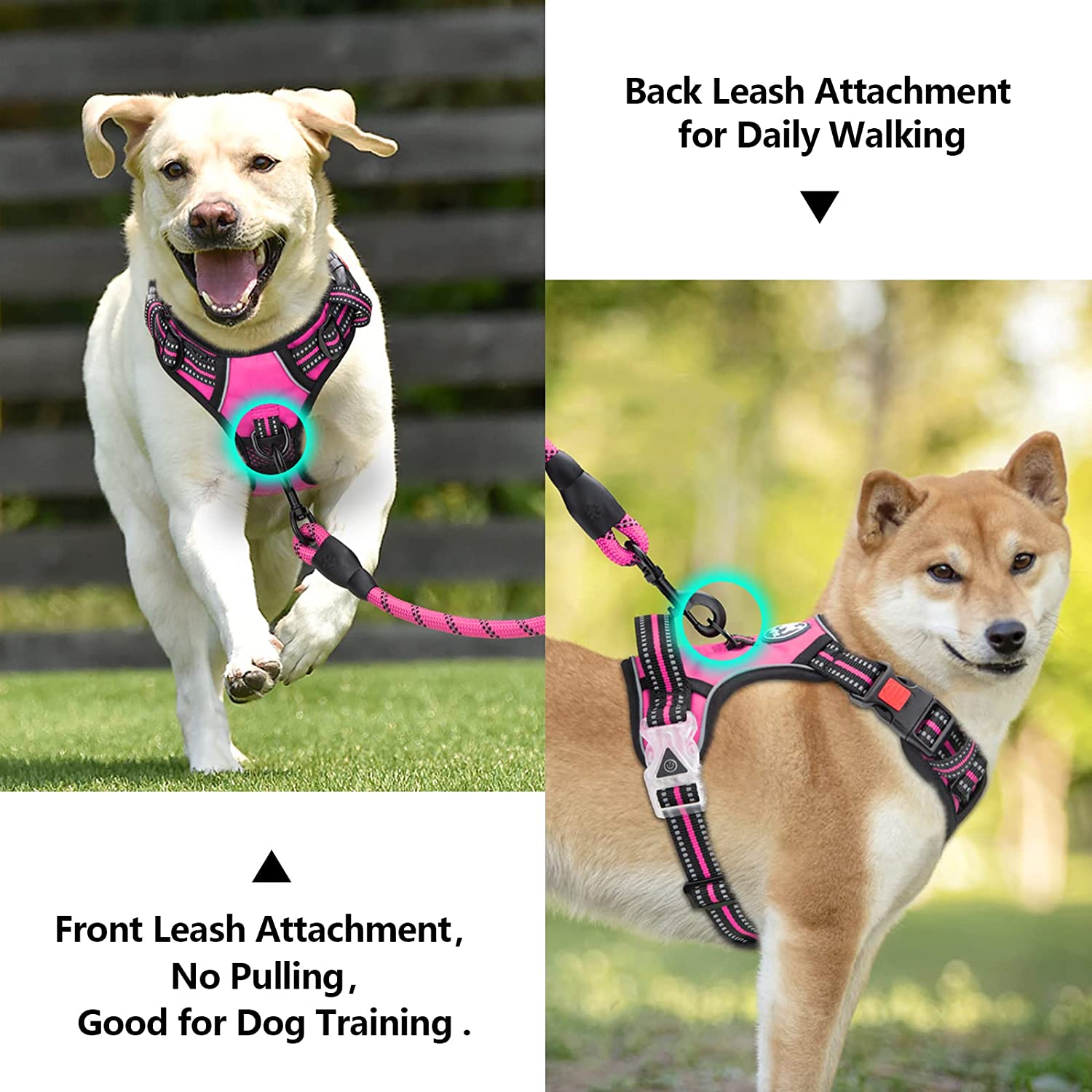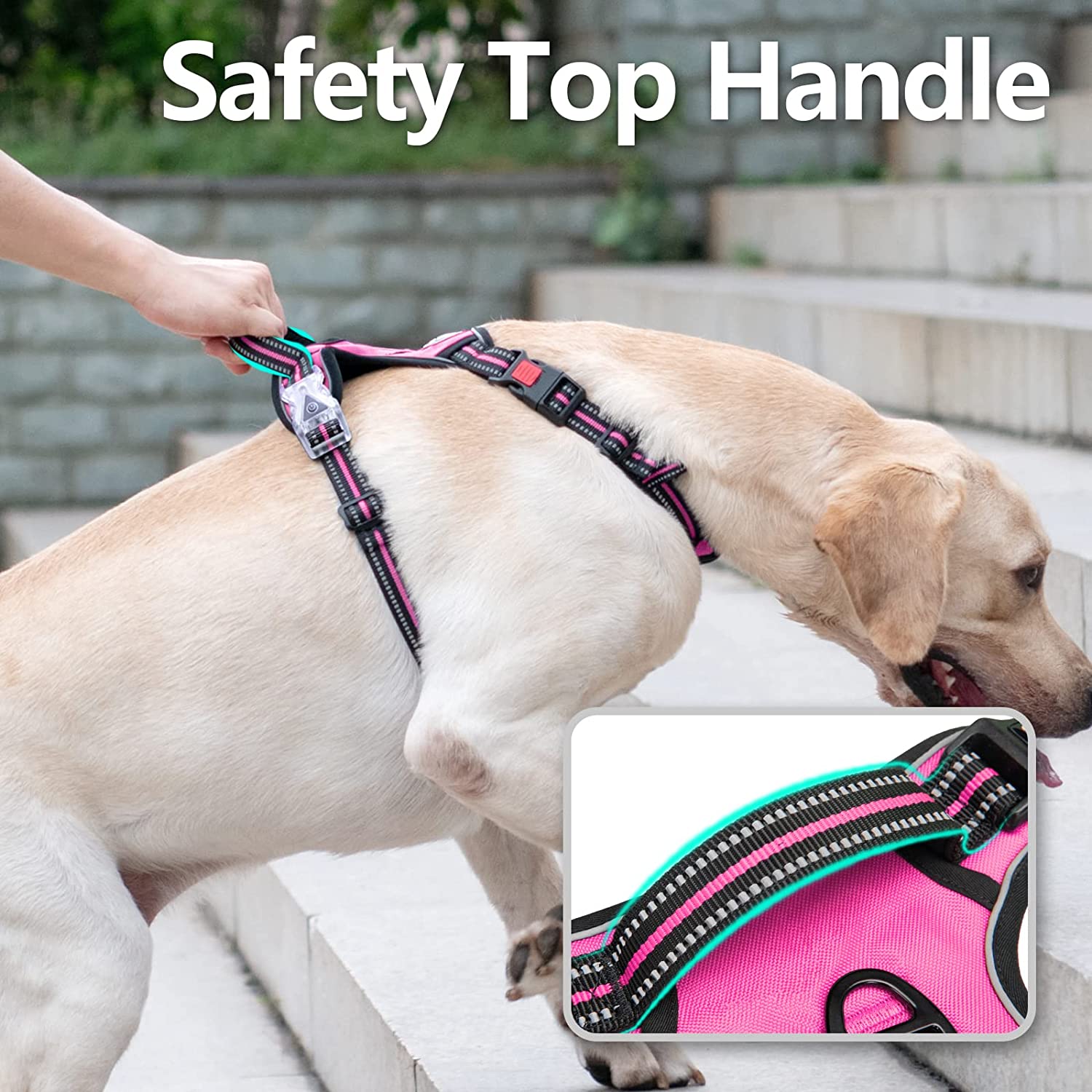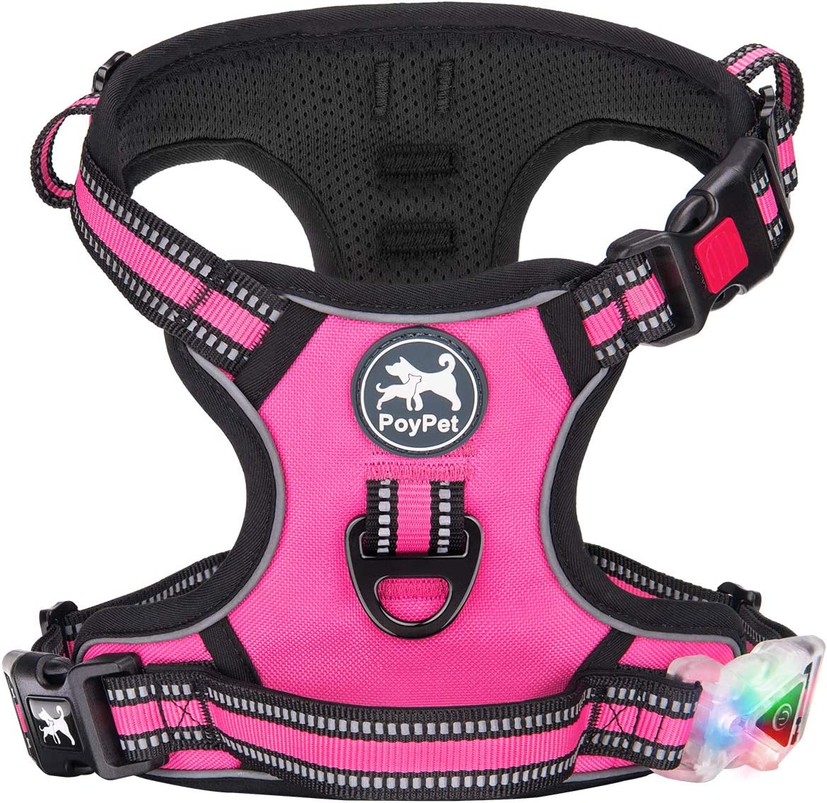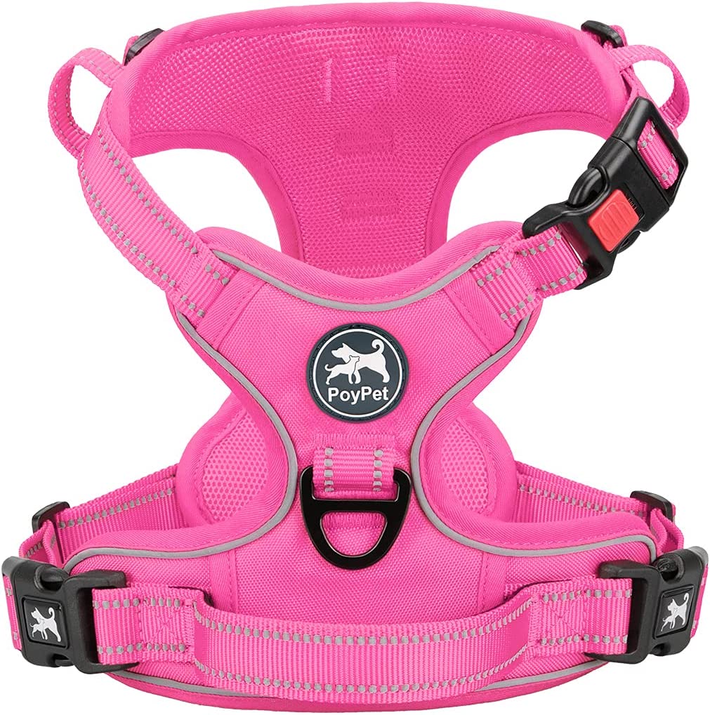 PoyPet No Pull Dog Harness, No Choke Front Clip Dog Reflective Harness, Adjustable Soft Padded Pet Vest with Easy Control Handle for Small to Large Dogs(Pink,M)