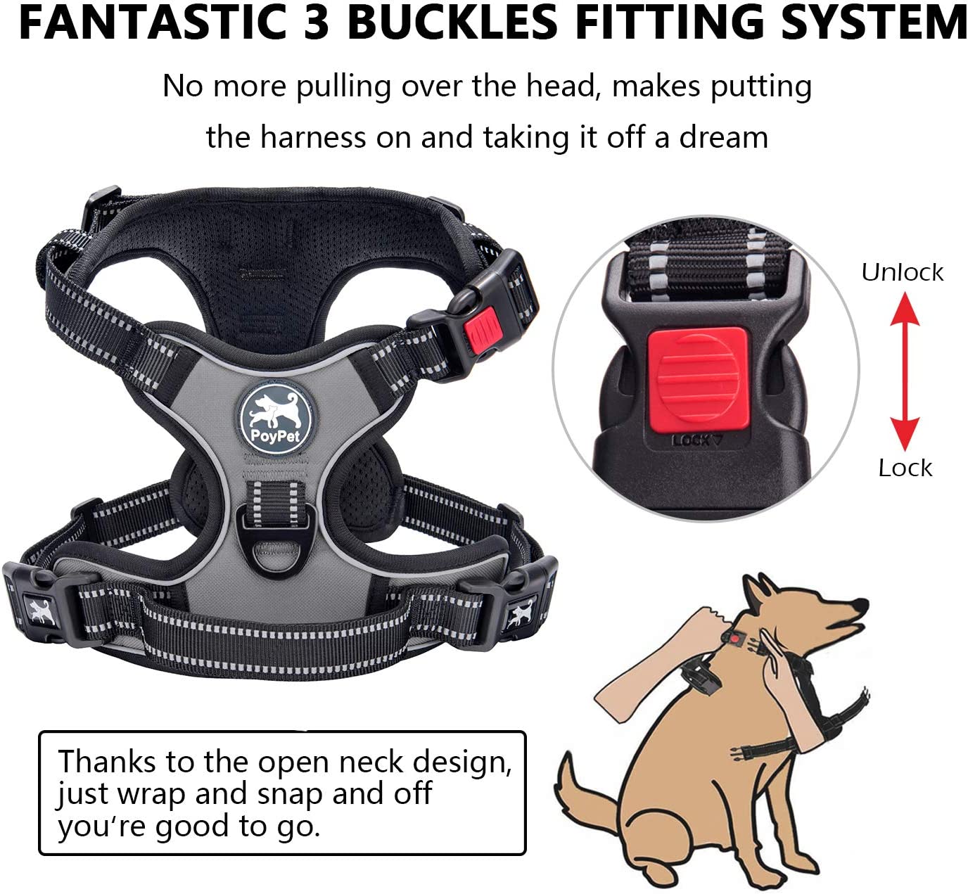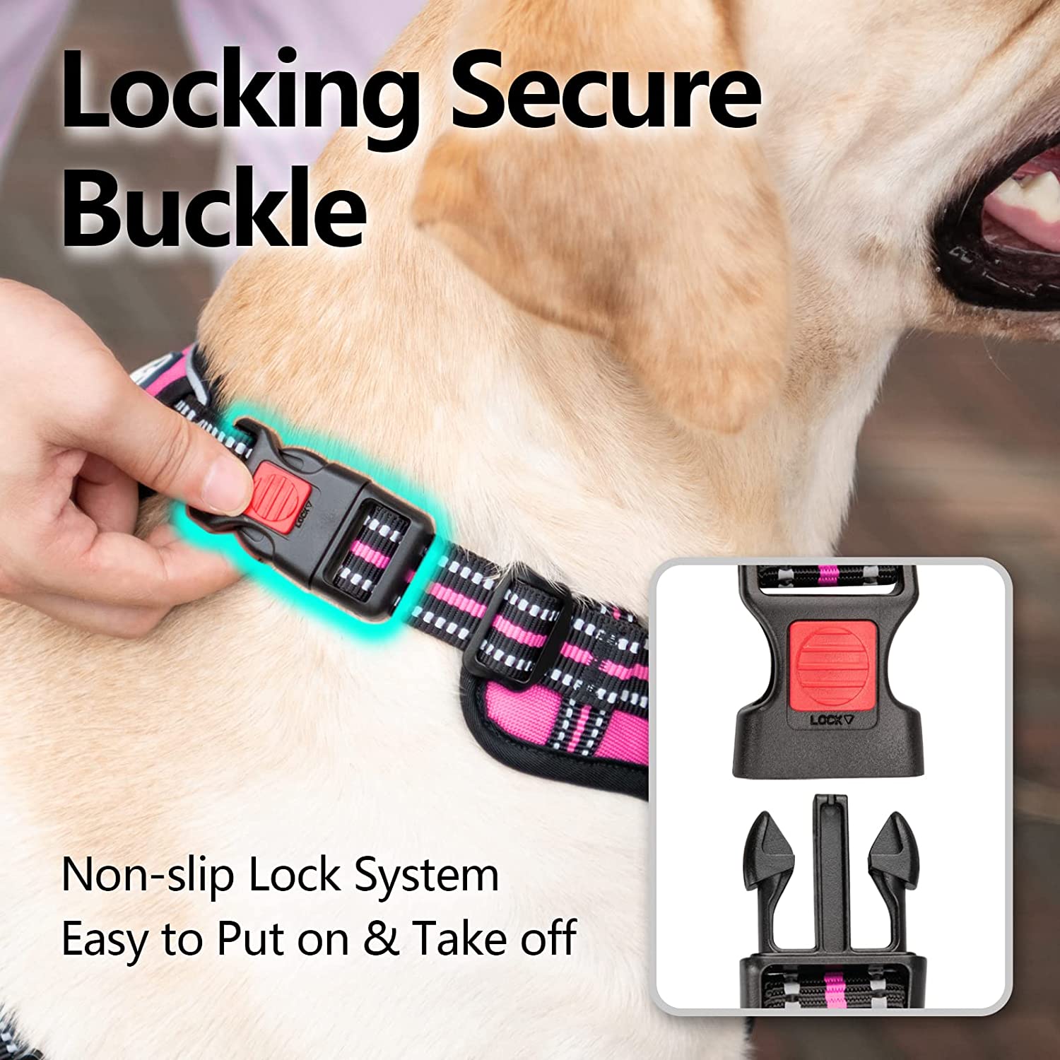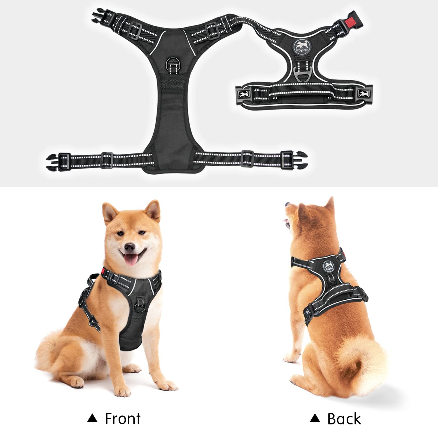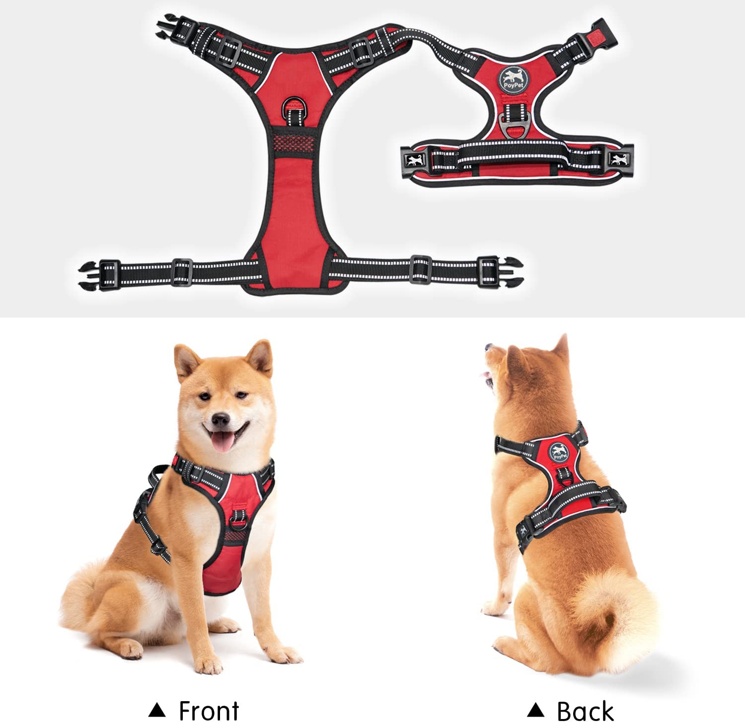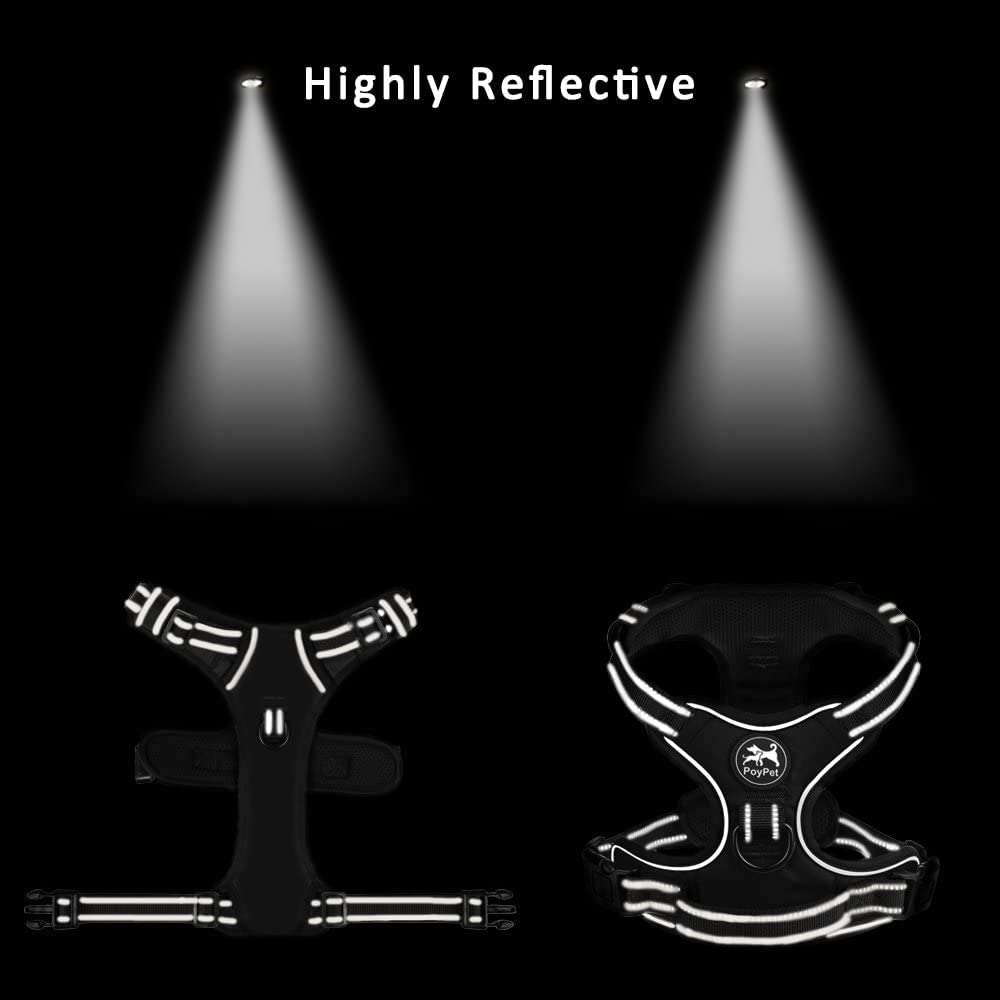 PoyPet No Pull Dog Harness, No Choke Front Clip Dog Reflective Harness, Adjustable Soft Padded Pet Vest with Easy Control Handle for Small to Large Dogs(Pink,M)
