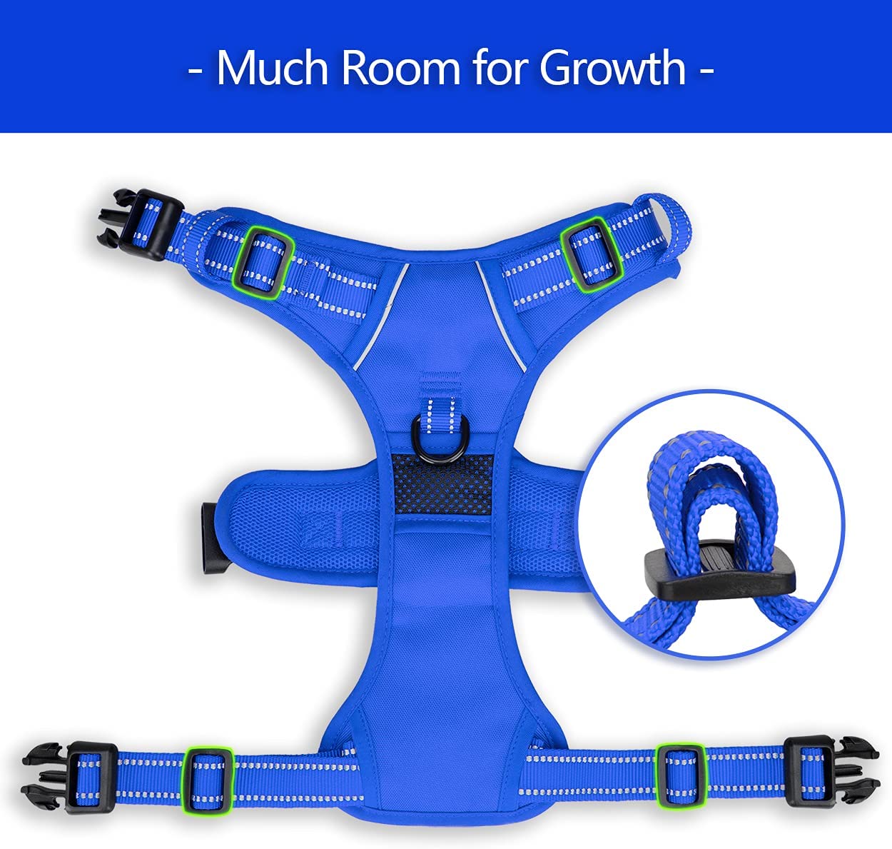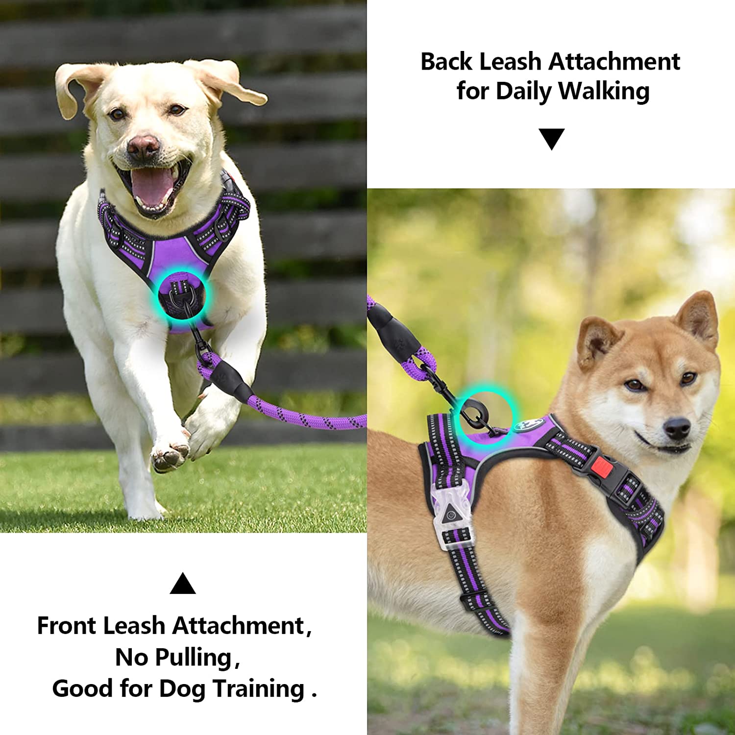 • NO PULL AND CHOKE FREE: Our front lead dog harness has two sturdy metal leash attachment points with reinforced webbing, front clip for discouraging pulling and back for relaxed walks. The pet harness is soft breathable non-toxic mesh padded, pulling pressure is evenly distributed to the body to prevent Choking. This easy dog harness is perfect for daily walking, running, hiking, training, hunting, outdoor adventure and more!
