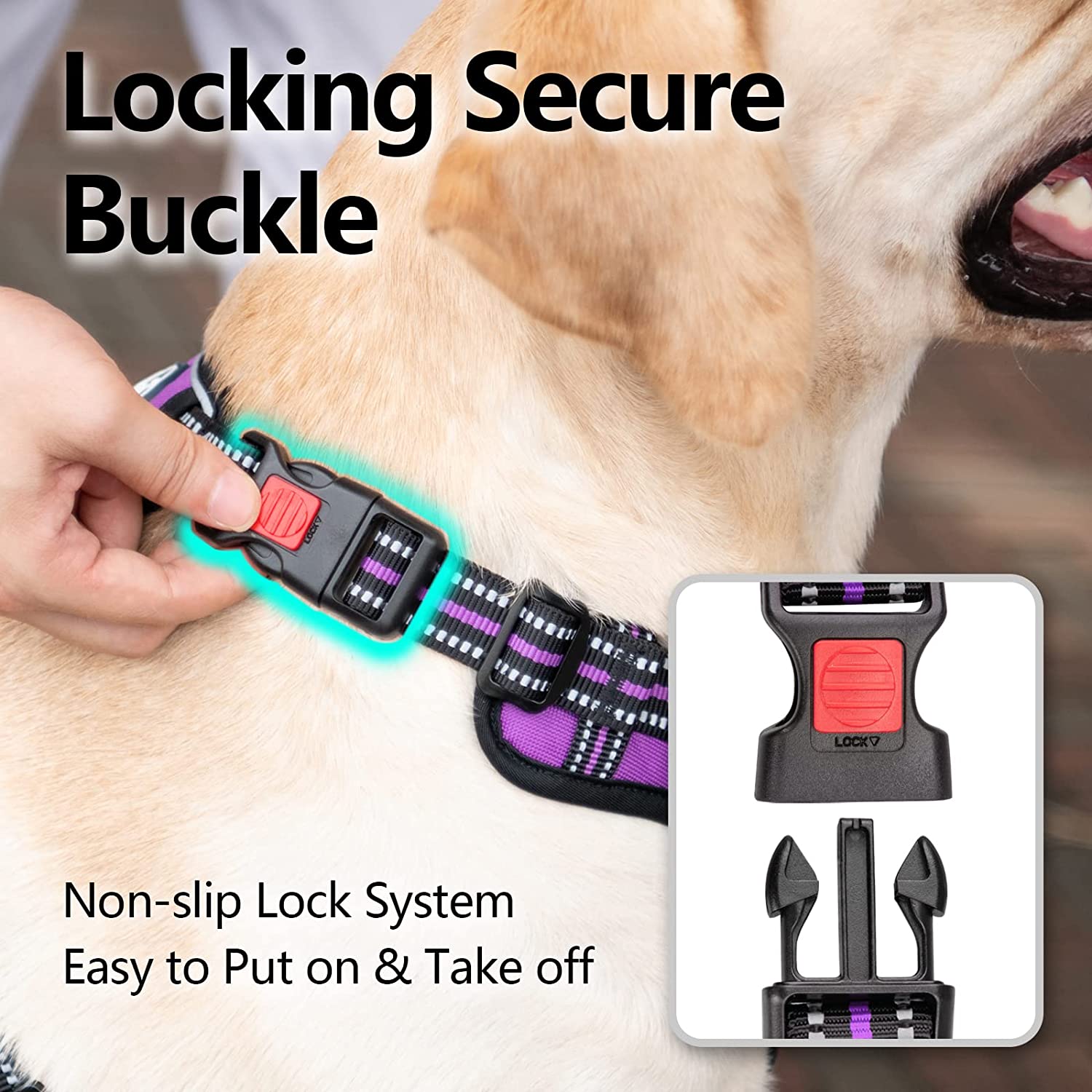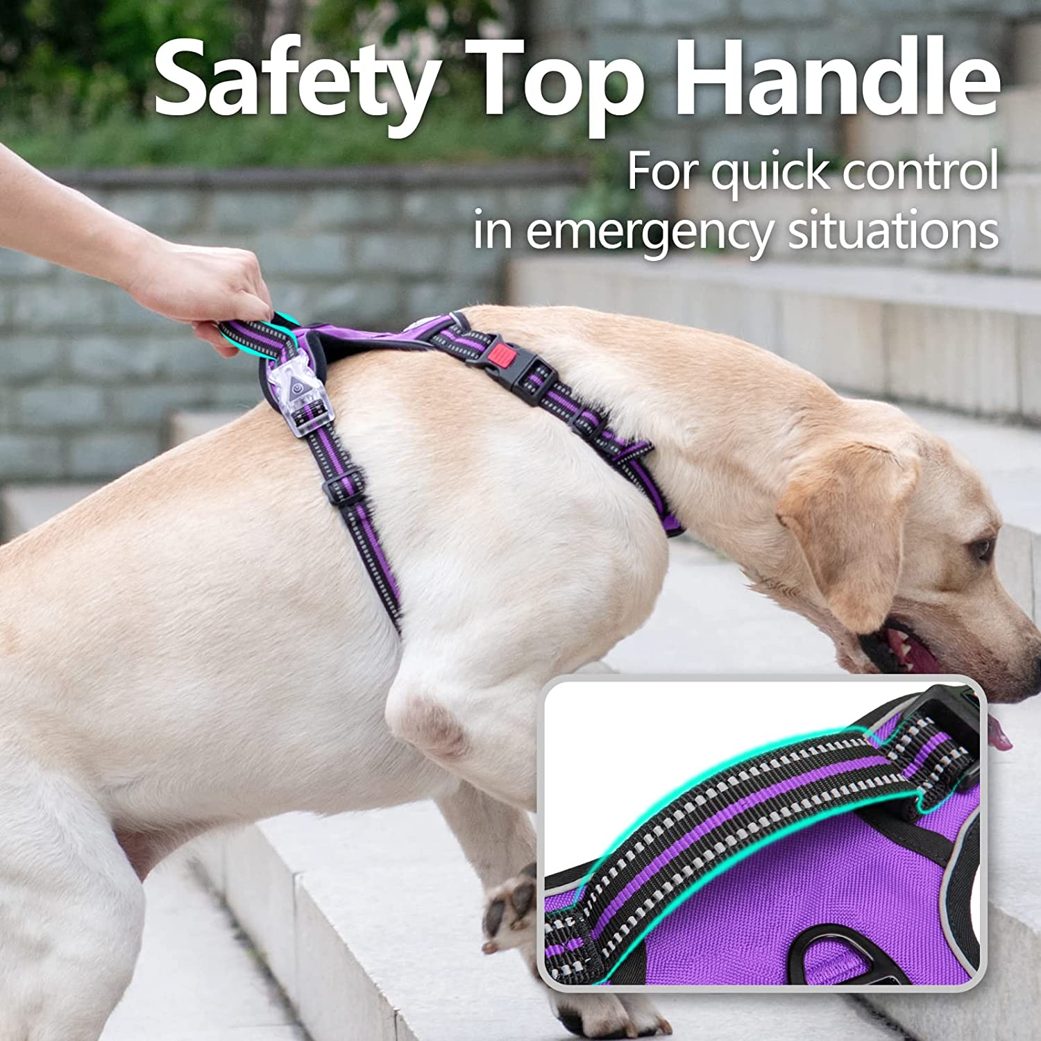 • DESIGNED FOR MAXIMUM COMFORT, SAFETY AND ADJUSTABILITY: Padded & comfortable handle, soft filling makes for a handle that feels good in the hand for extra control to guide your dog. It also work as seat bell loop. Large area reflective stitching for night use providing added visibility. Lightweight and durable, designed with minimum bulk for maximum dexterity. 4 ways adjustable straps, gets a customized fit with room for growth.