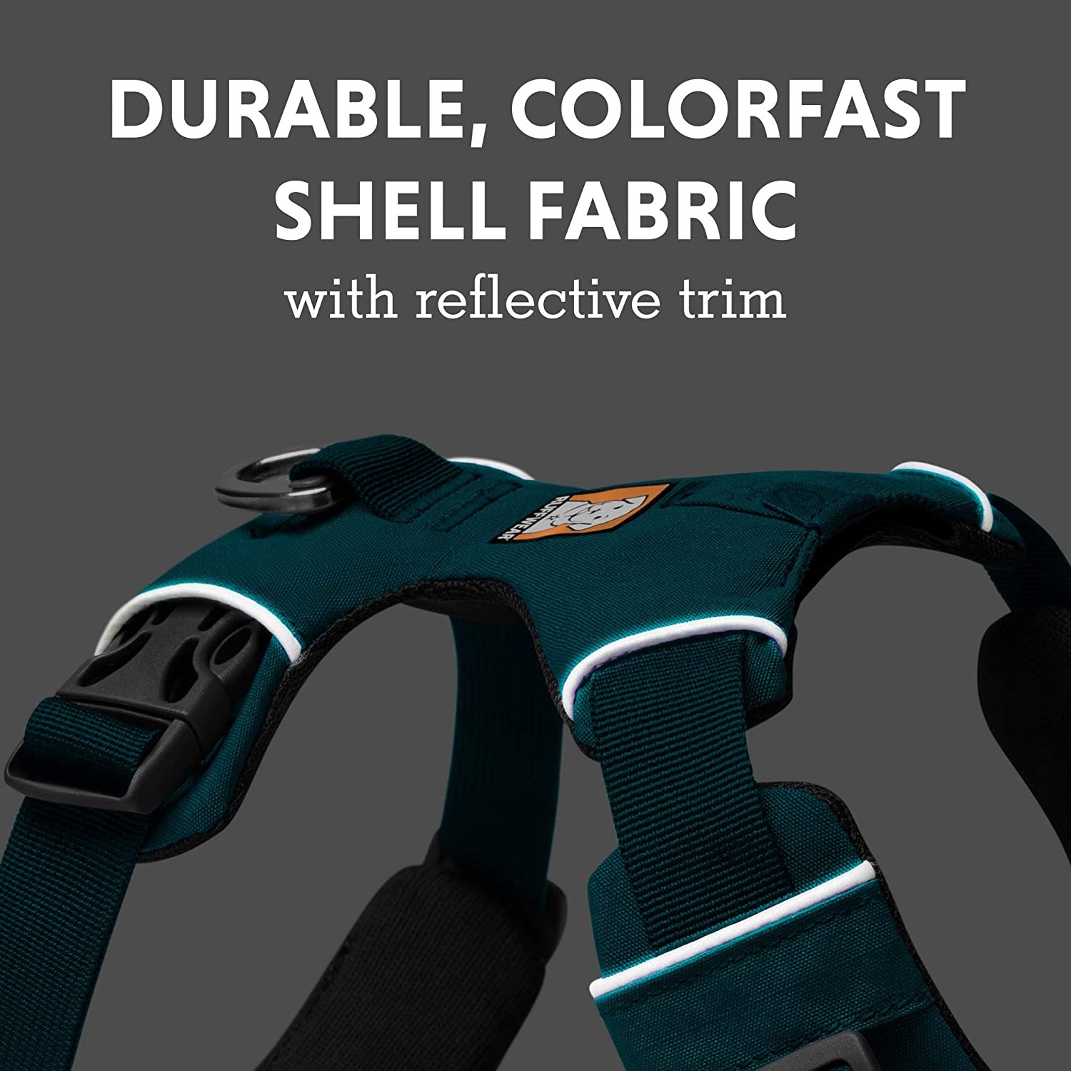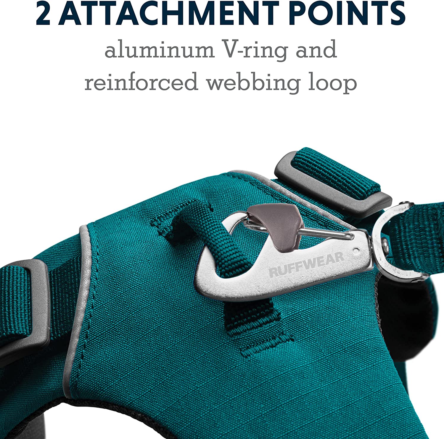 • 2 leash attachment points: Reinforced webbing at chest stands up to pulling and gives additional control (ideal for training, too); Aluminum V-ring centered on back