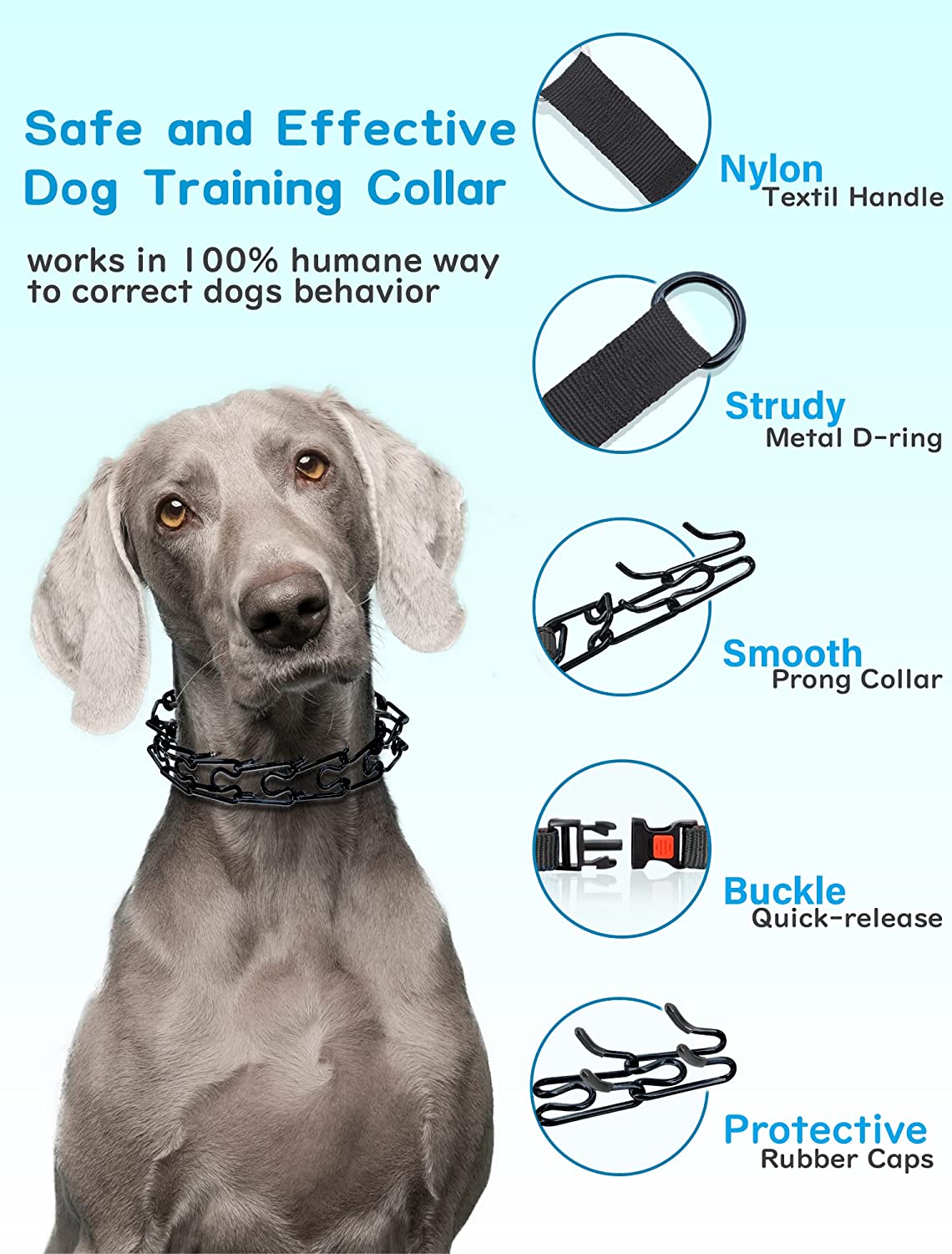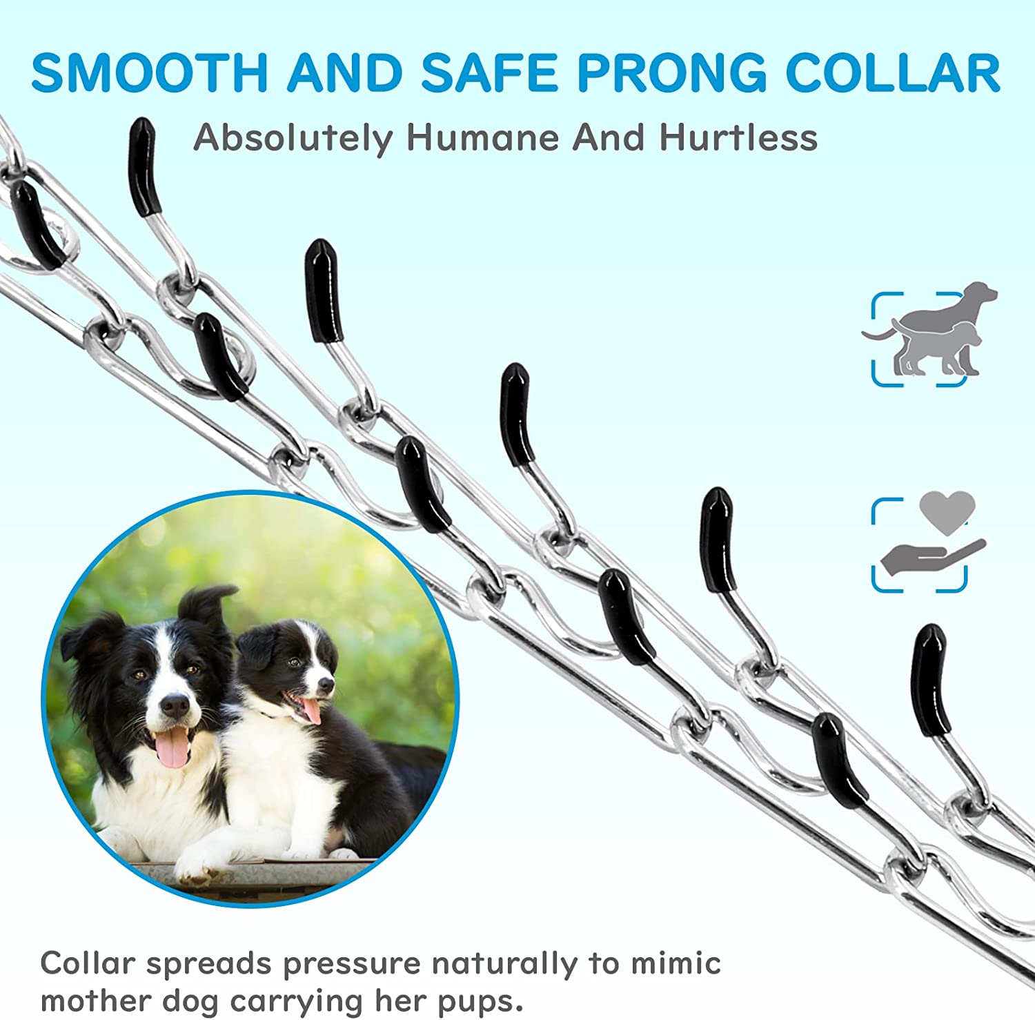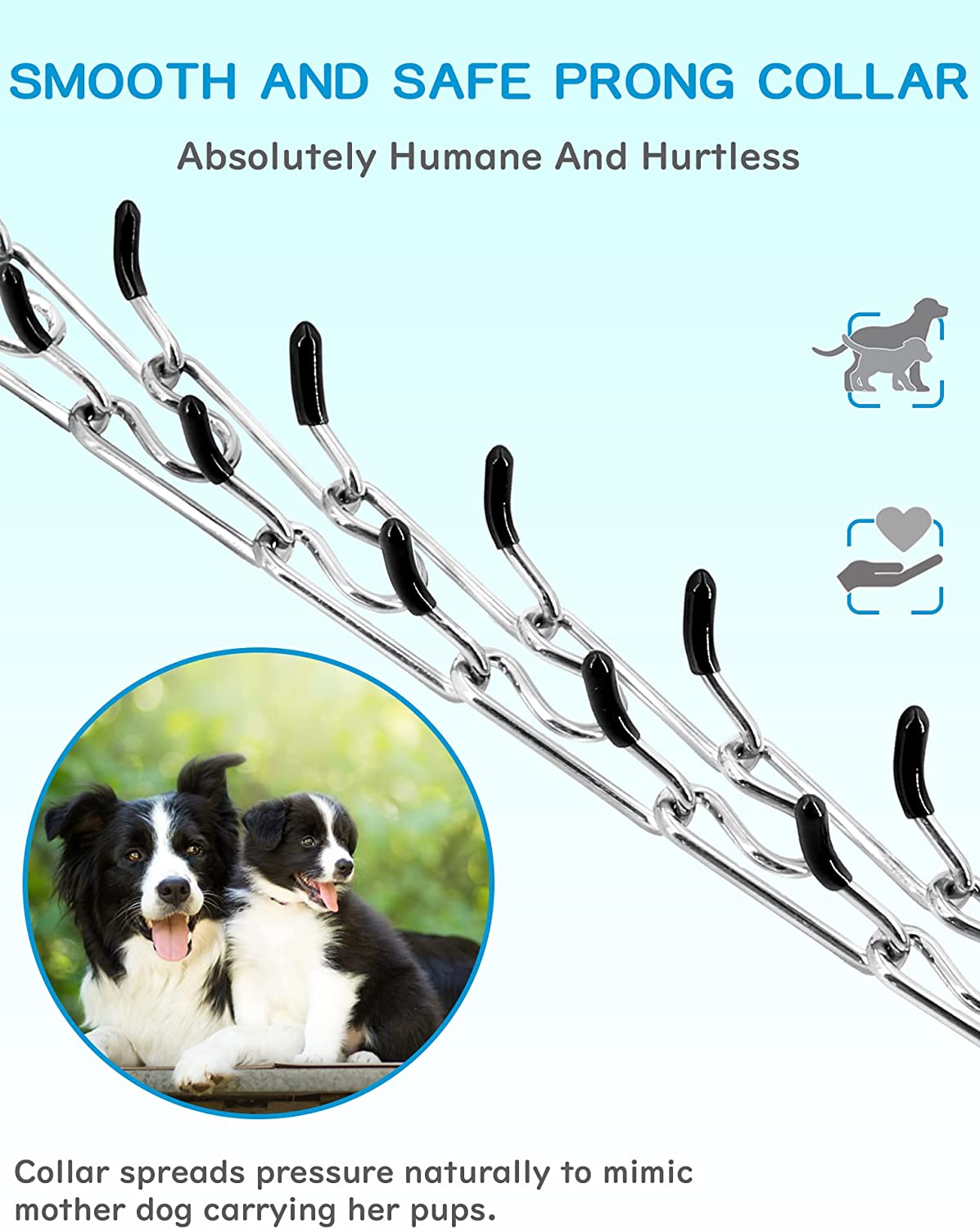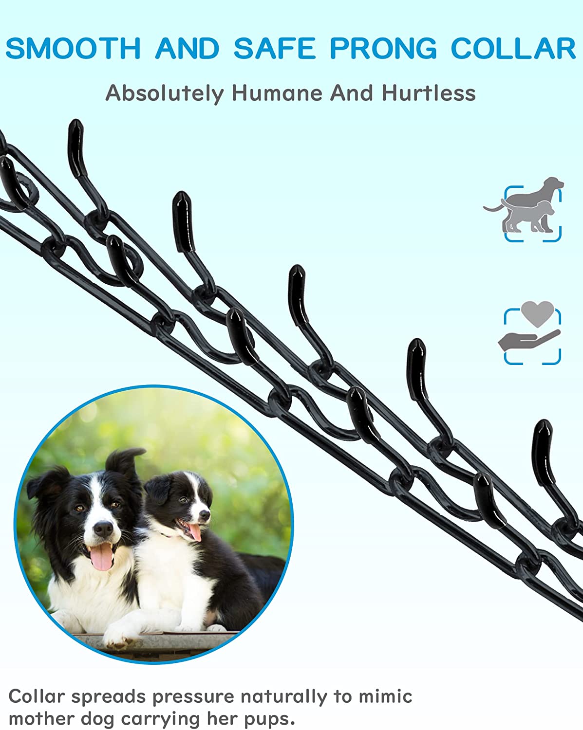 • 【HUMANE AND NOT HURTING】--- This prong collars for dogs are smooth and rounded to ensure that no harm comes to your pet, and provides gentle pinching sensation to train them which is similar to how a mother dog corrects her puppies using her teeth, and at the same time, it also can ensure that your pet will pull significantly less while walking.
