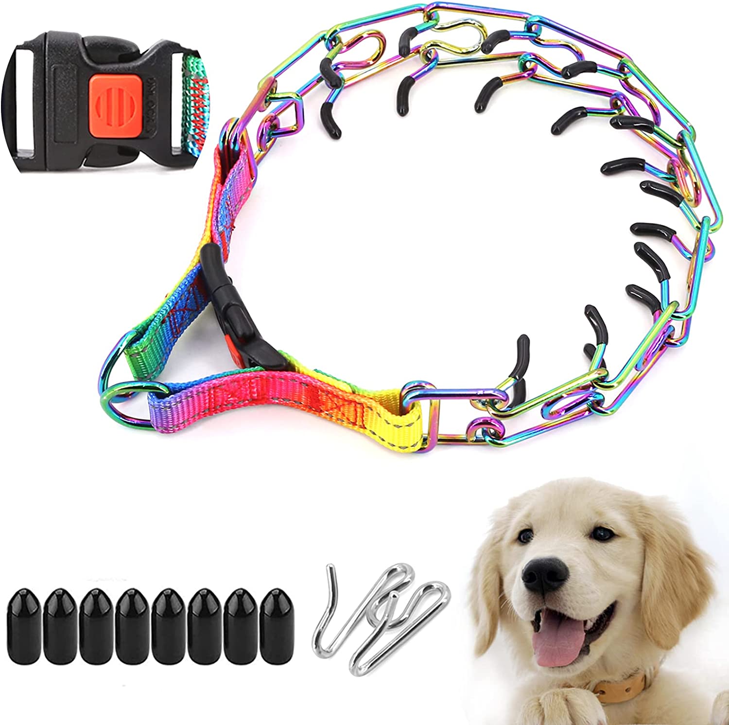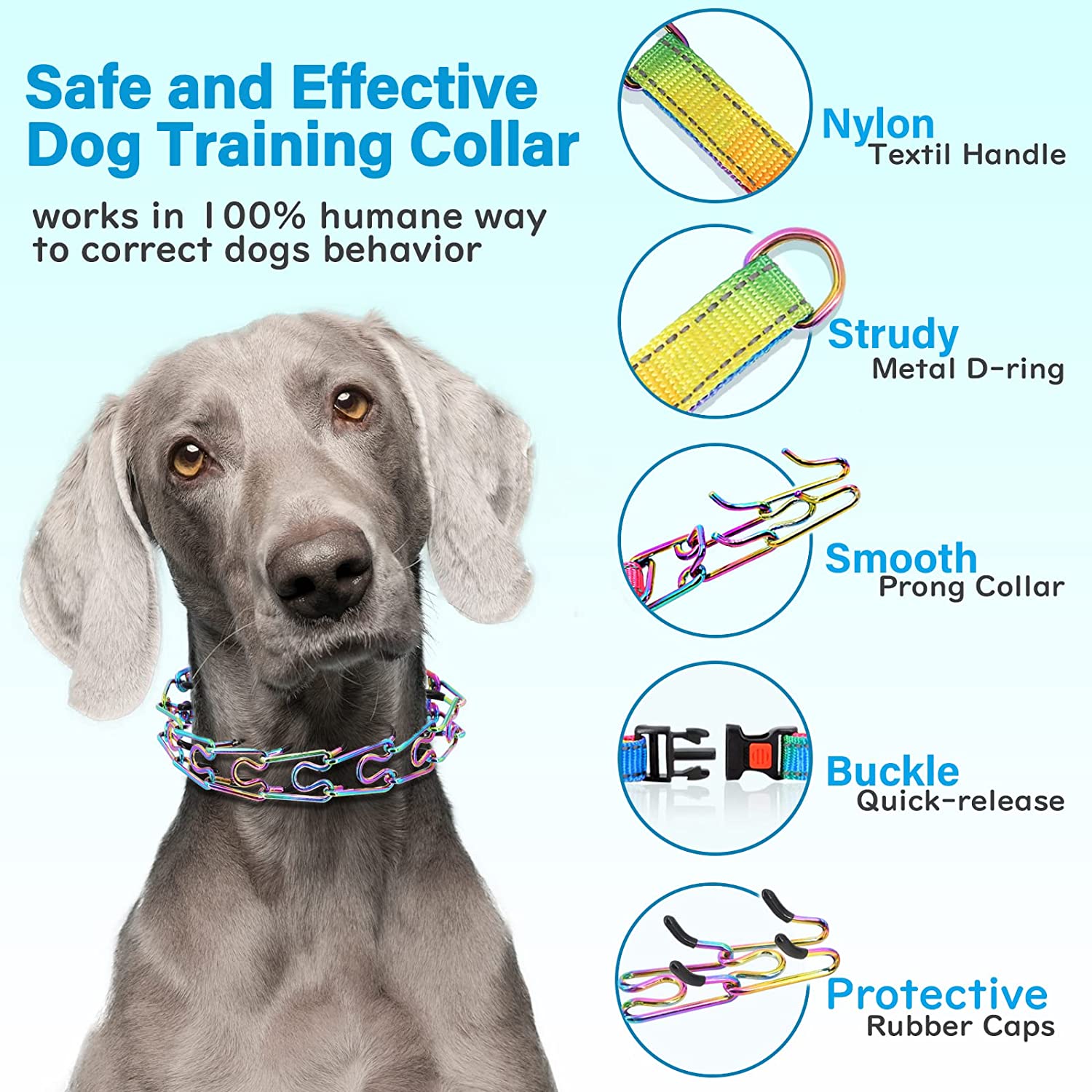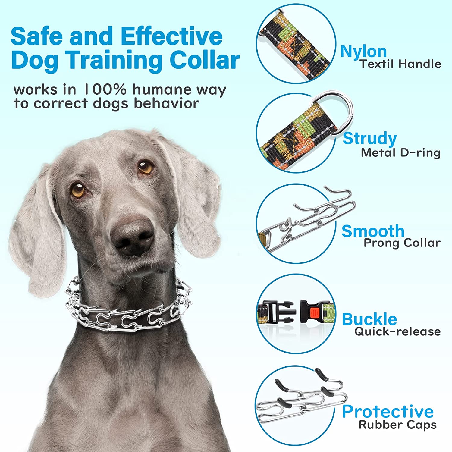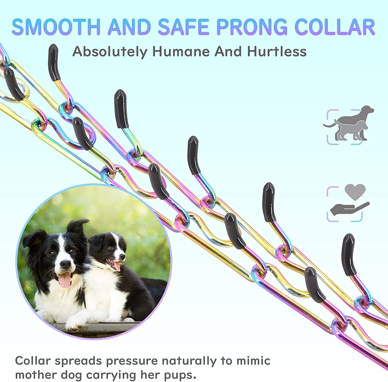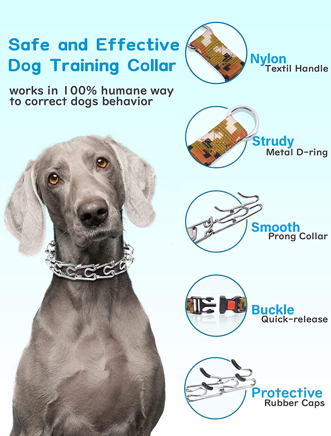 • 【HUMANE AND NOT HURTING】--- This prong collars for dogs are smooth and rounded to ensure that no harm comes to your pet, and provides gentle pinching sensation to train them which is similar to how a mother dog corrects her puppies using her teeth, and at the same time, it also can ensure that your pet will pull significantly less while walking.