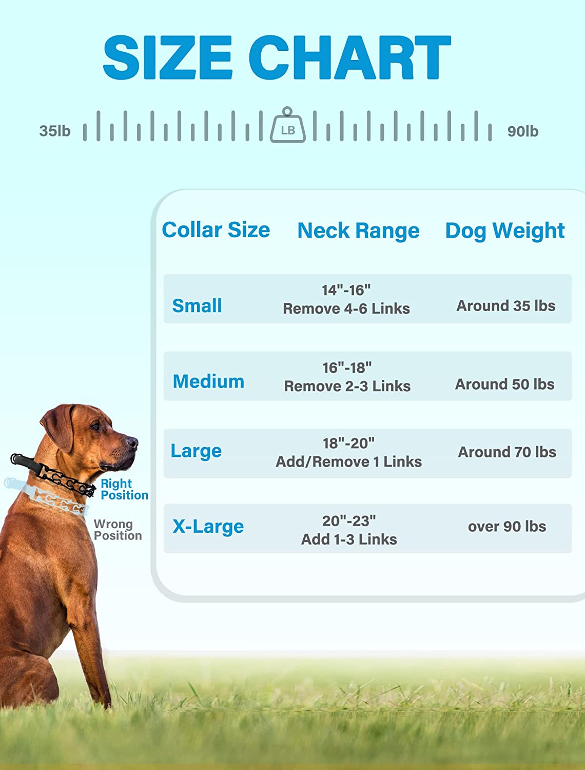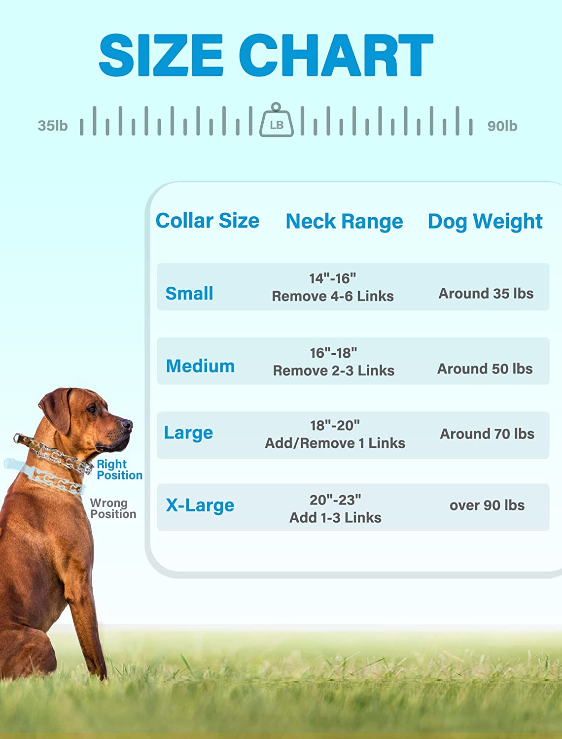• 【STRONG AND RELIABLE】--- Supet steady dog training collar has a quick release snap, you can quickly unravel. It's necessary to use PLIERS when you need to add some links, you can't take it apart easily, either your pet dog. Be the pack leader with this safe and effective training collar.