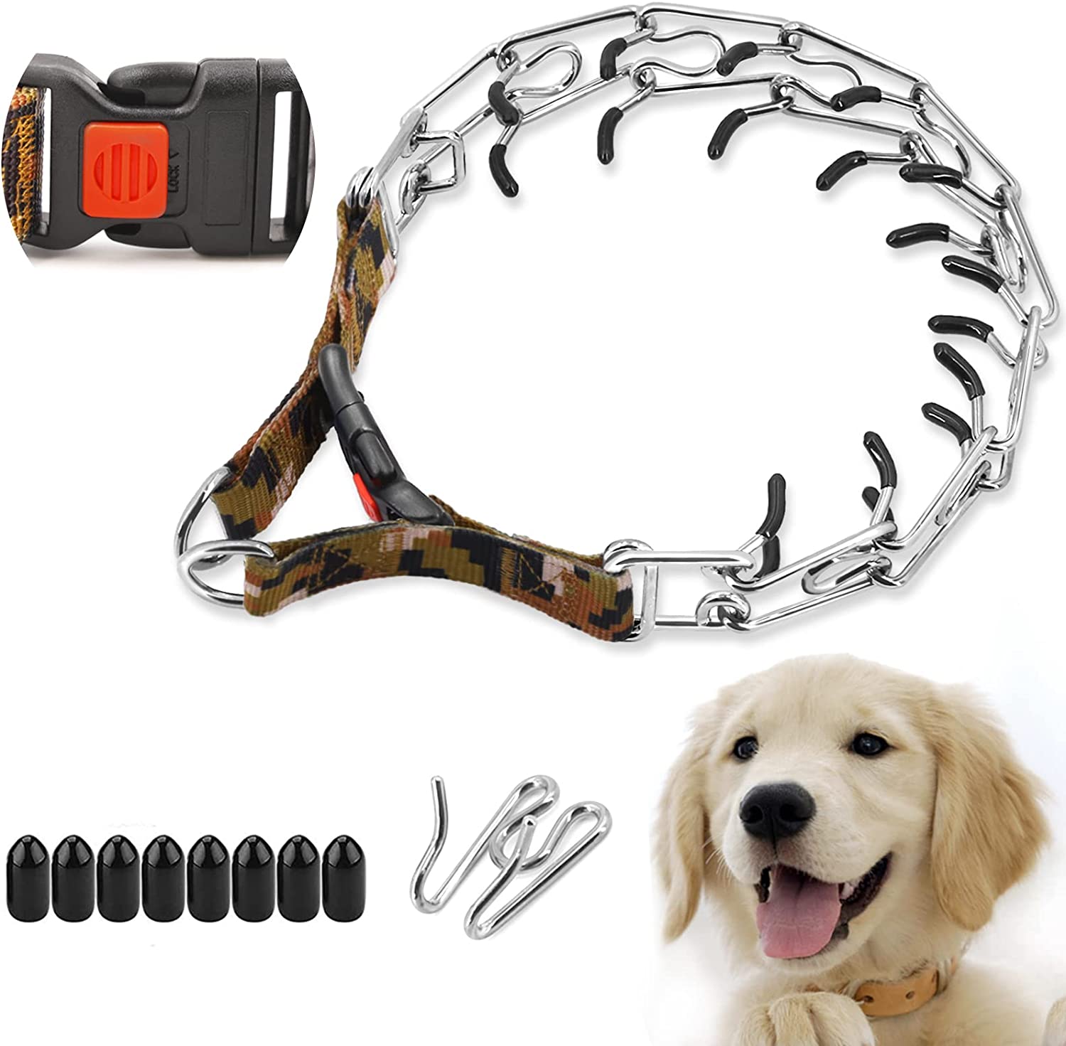 Supet Dog Prong Collar, Adjustable Dog Training Collar with Quick Release Buckle for Small Medium Large Dogs(Packed with One Extra Links)