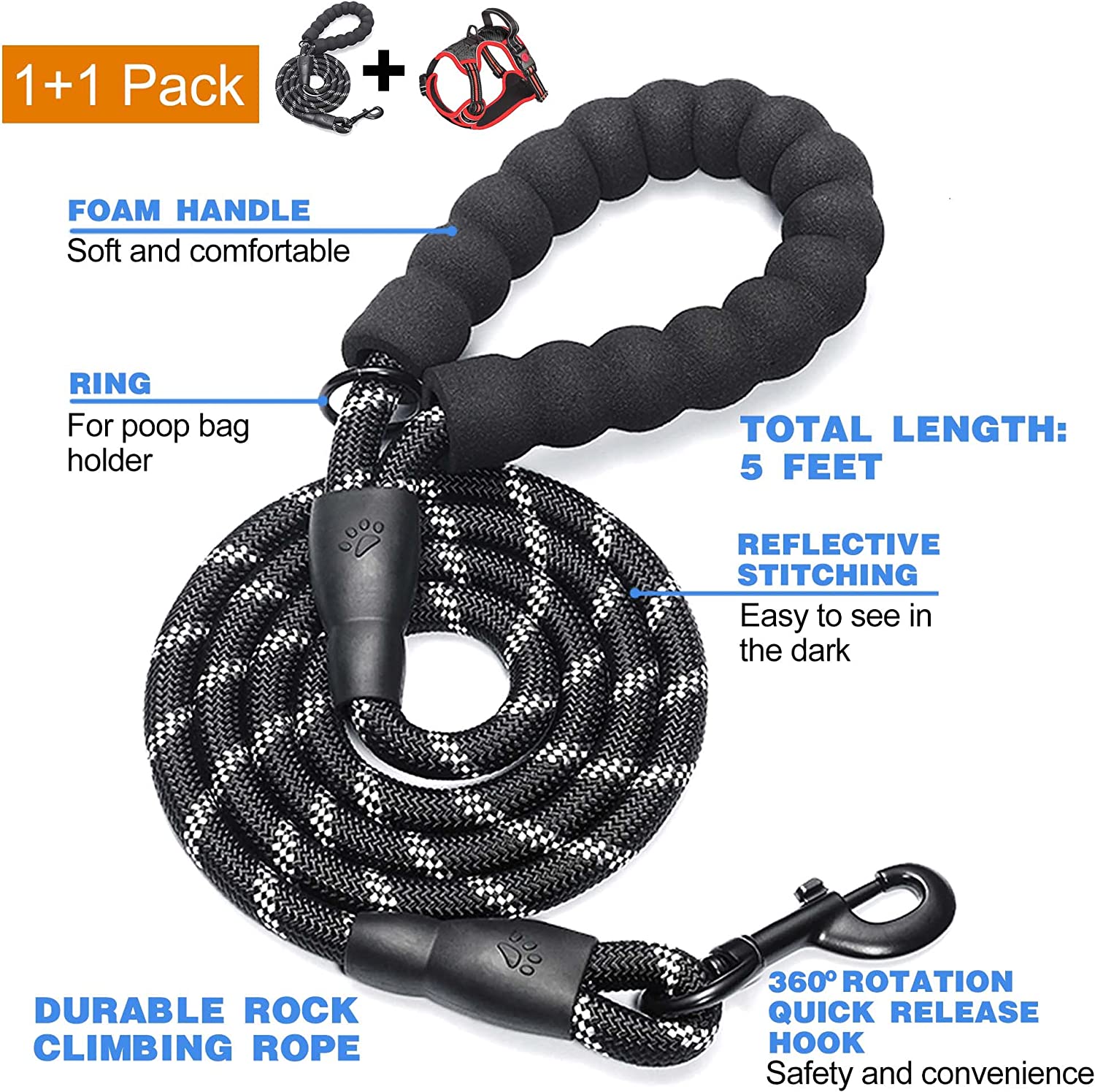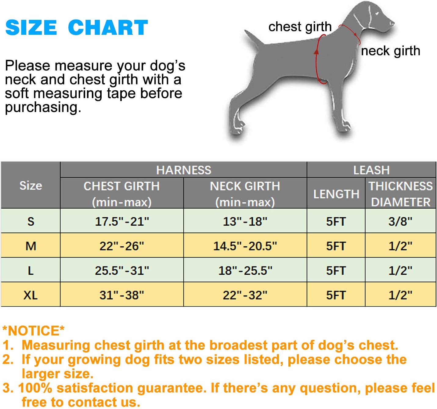 • 【 EASY TO USE AND LOCKING SECURITY 】The dog harness with simple design and quick snap buckles which make it easy to put on and take off. Locking feature on both snaps makes it more secure, 100% ensures no accidentally detachment. 4 easy size adjustors at neck and chest for easy adjusting to fit your dog perfectly, even with some room of growth. Perfect for daily walking, running, hiking, training, hunting, outdoor adventure and more!