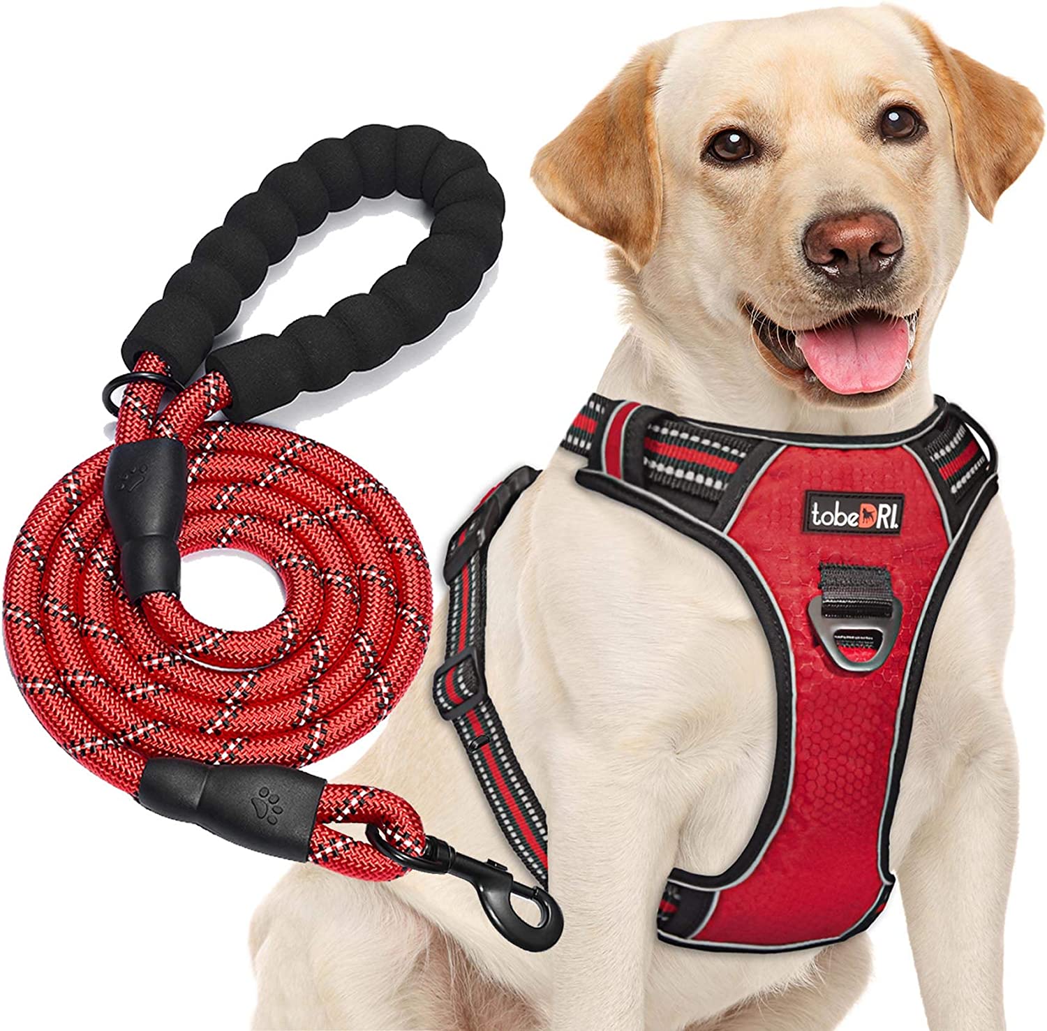 tobeDRI No Pull Dog Harness Adjustable Reflective Oxford Easy Control Medium Large Dog Harness with A Free Heavy Duty 5ft Dog Leash (L (Neck: 18"-25.5", Chest: 24.5"-33"), Blue Harness+Leash)