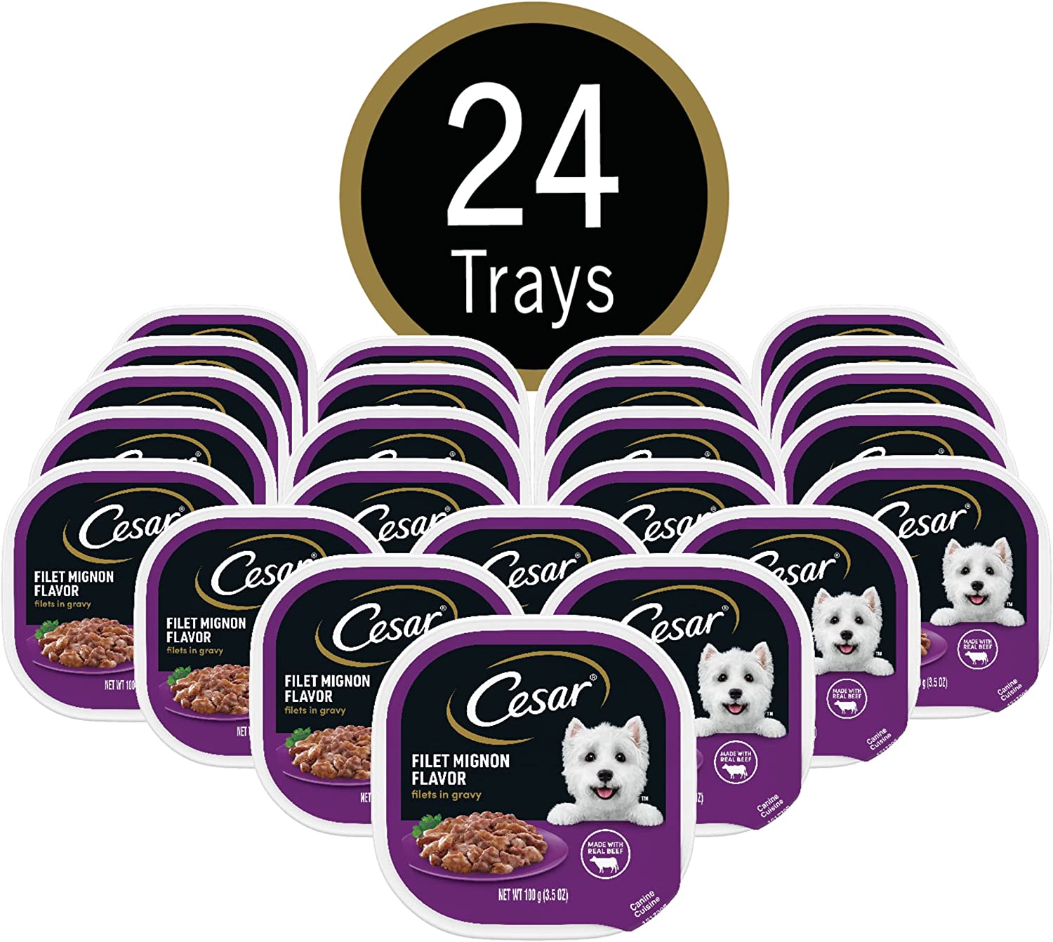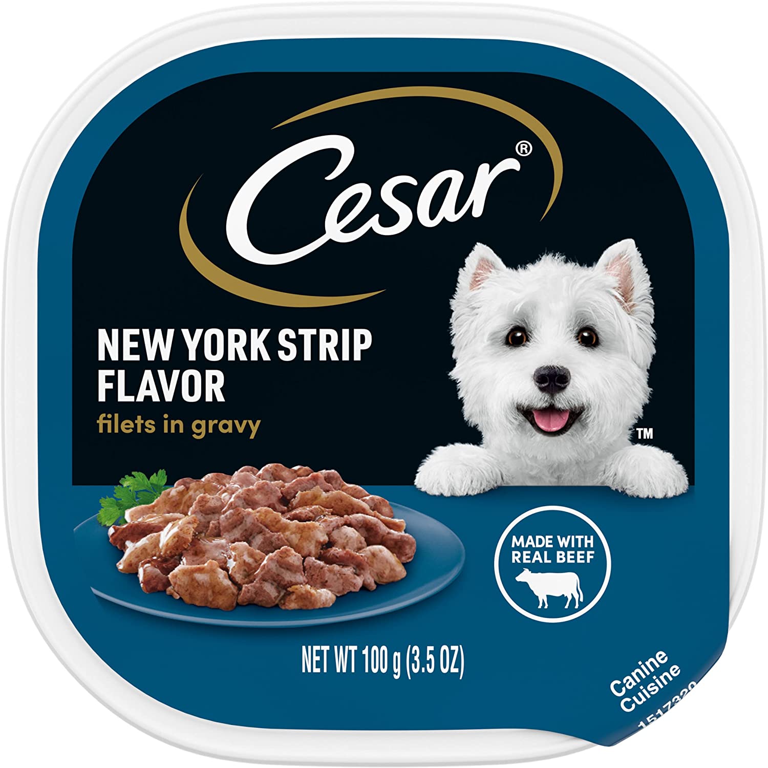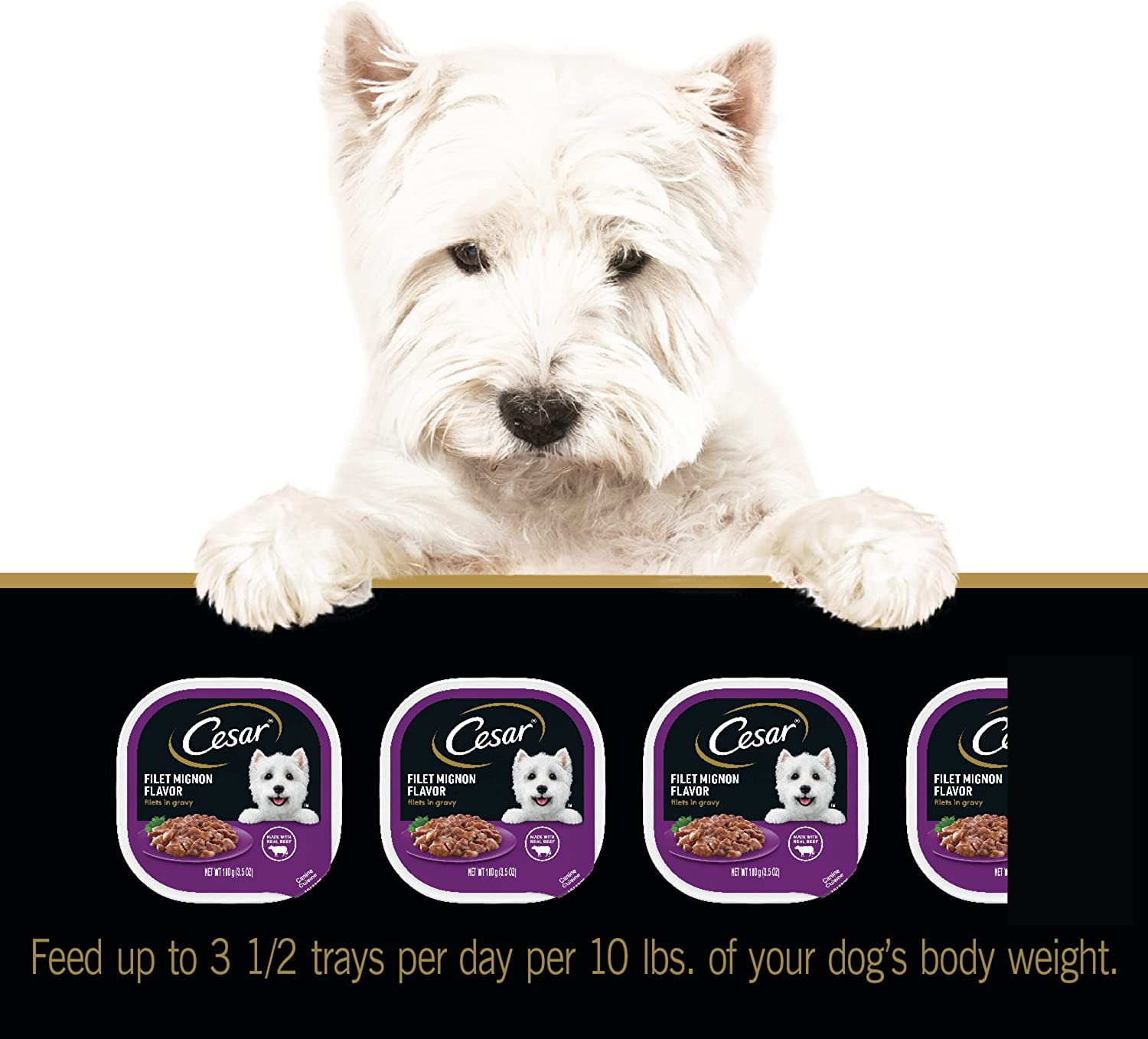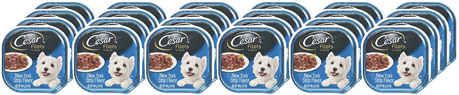 Dogs with sophisticated palates will enjoy a rich culinary experience with CESAR GOURMET FILETS Wet Dog Food in meaty juices or in sauce. From large to small dogs, indulge your pampered pooch with savory dog food featuring filet mignon that make their mouth water and tail wag. CESAR GOURMET FILETS Filet Mignon Flavor Dog Food delights with a tantalizing filet texture, and is enhanced with vitamins and minerals for complete and balanced nutrition. Served in convenient trays with no-fuss, peel-away freshness seals, CESAR Adult Dog Food makes mealtime easy. Our gourmet wet dog food also uses ingredients formulated to meet nutritional levels established by the AAFCO dog food nutrient profiles for maintenance.