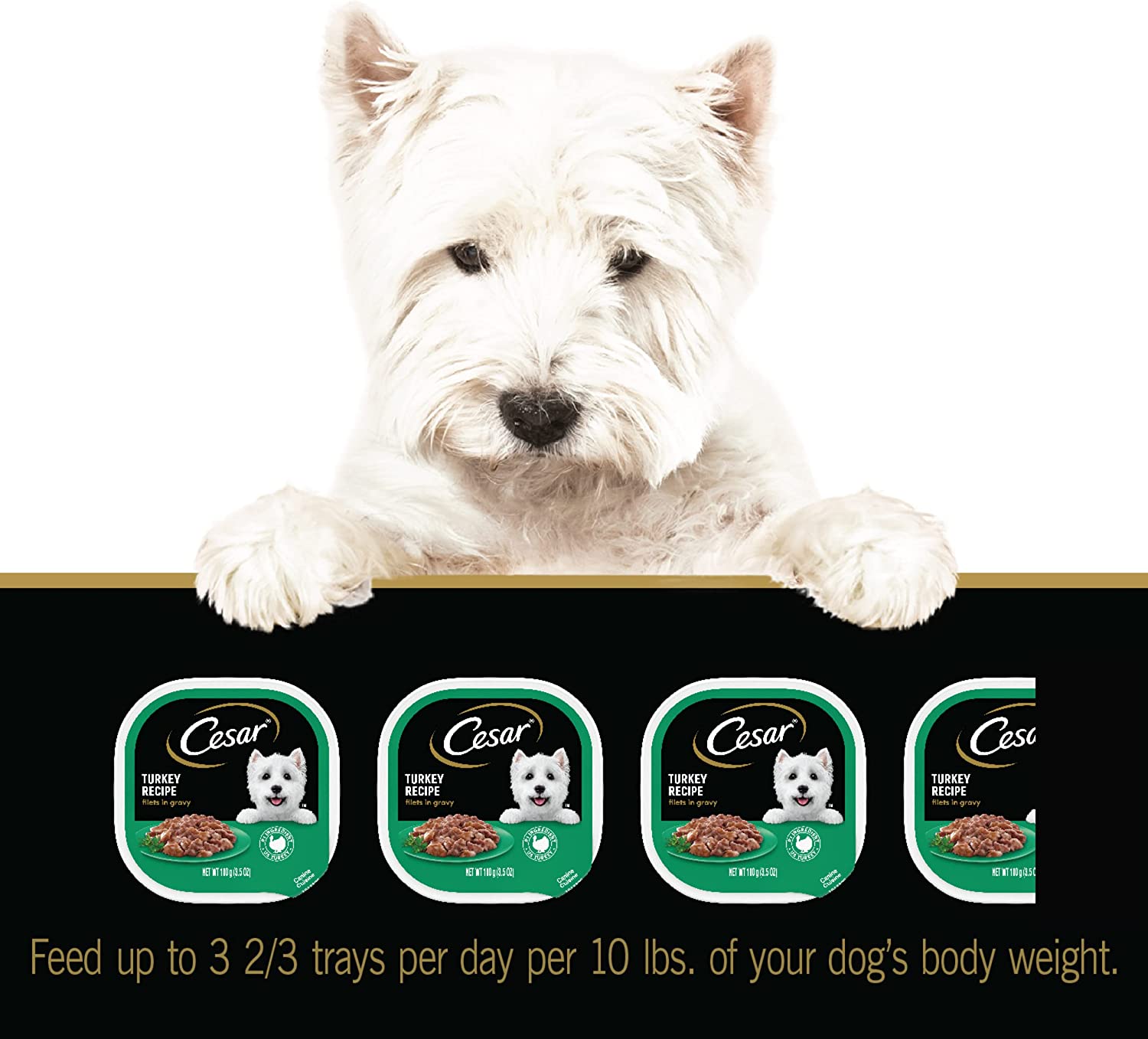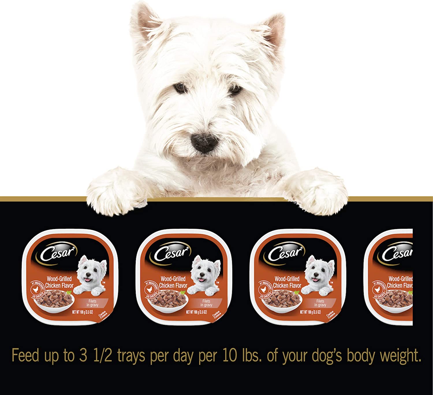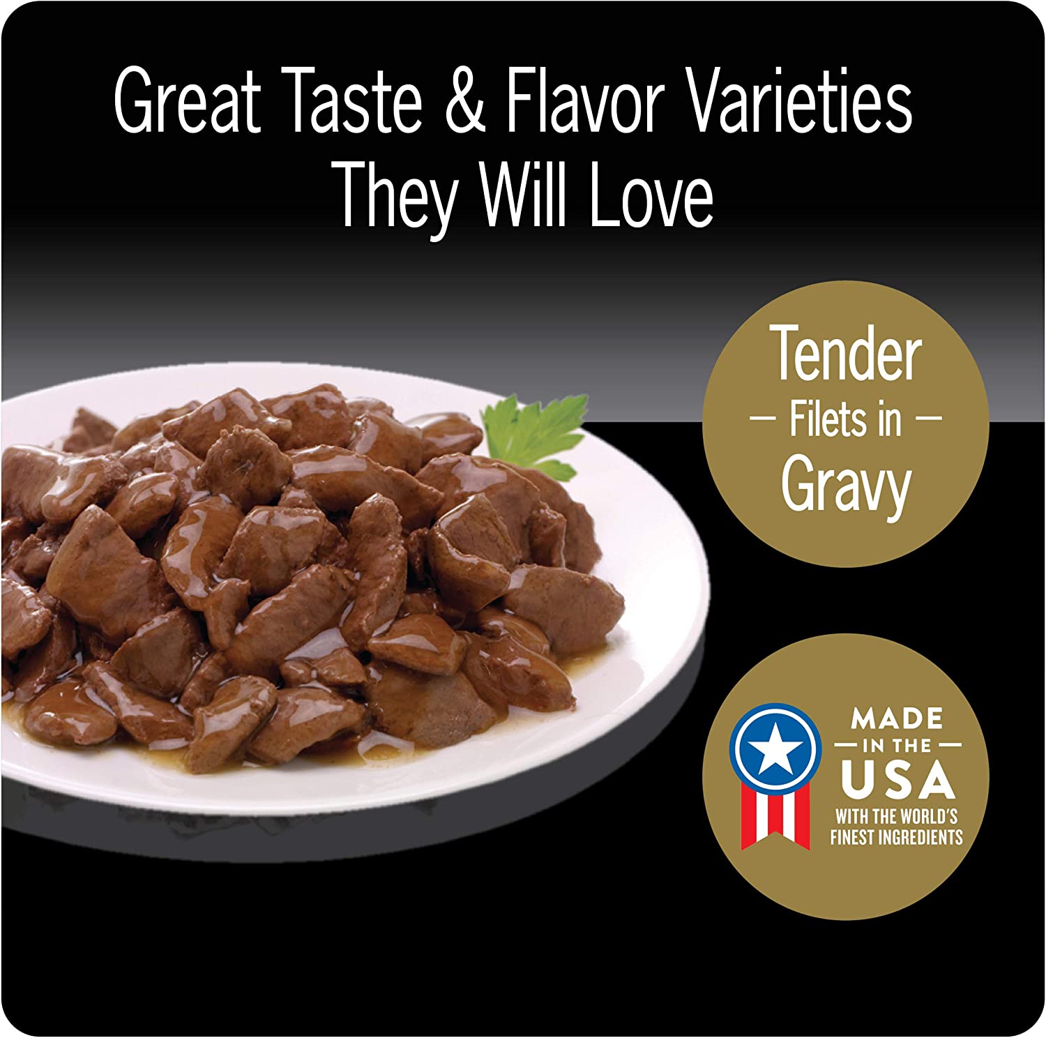 Dogs with sophisticated palates will enjoy a rich culinary experience with CESAR GOURMET FILETS Wet Dog Food in meaty juices or in sauce. From large to small dogs, indulge your pampered pooch with savory dog food featuring filet mignon that make their mouth water and tail wag. CESAR GOURMET FILETS Filet Mignon Flavor Dog Food delights with a tantalizing filet texture, and is enhanced with vitamins and minerals for complete and balanced nutrition. Served in convenient trays with no-fuss, peel-away freshness seals, CESAR Adult Dog Food makes mealtime easy. Our gourmet wet dog food also uses ingredients formulated to meet nutritional levels established by the AAFCO dog food nutrient profiles for maintenance.