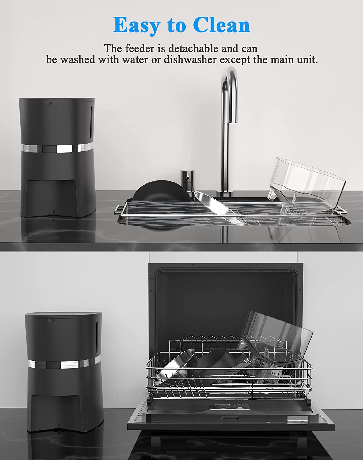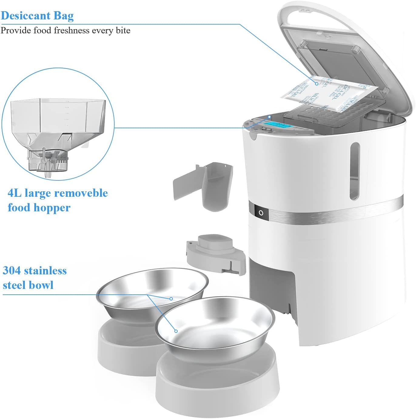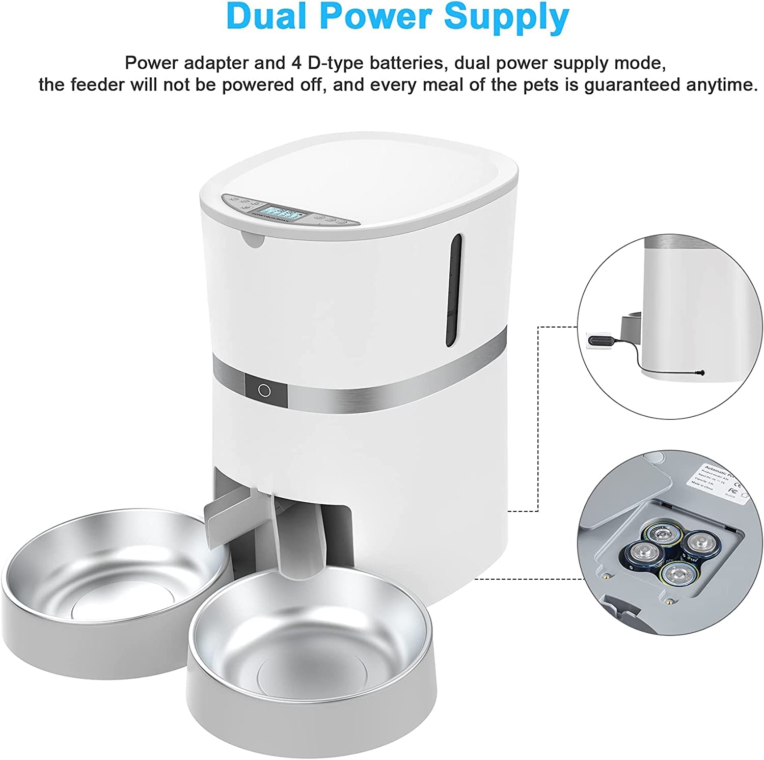 • 【Feed Multiple Pets & Easy to Clean】 - The upgrade auto pet feeder comes with a 2-way splitter and double 3 cups stainless steel food bowls, can divide meals equally, and feed your multiple pets at the same time. you can also assemble it into a usual feeder as you like. Removable food container and food bowls for easy installation and cleaning.