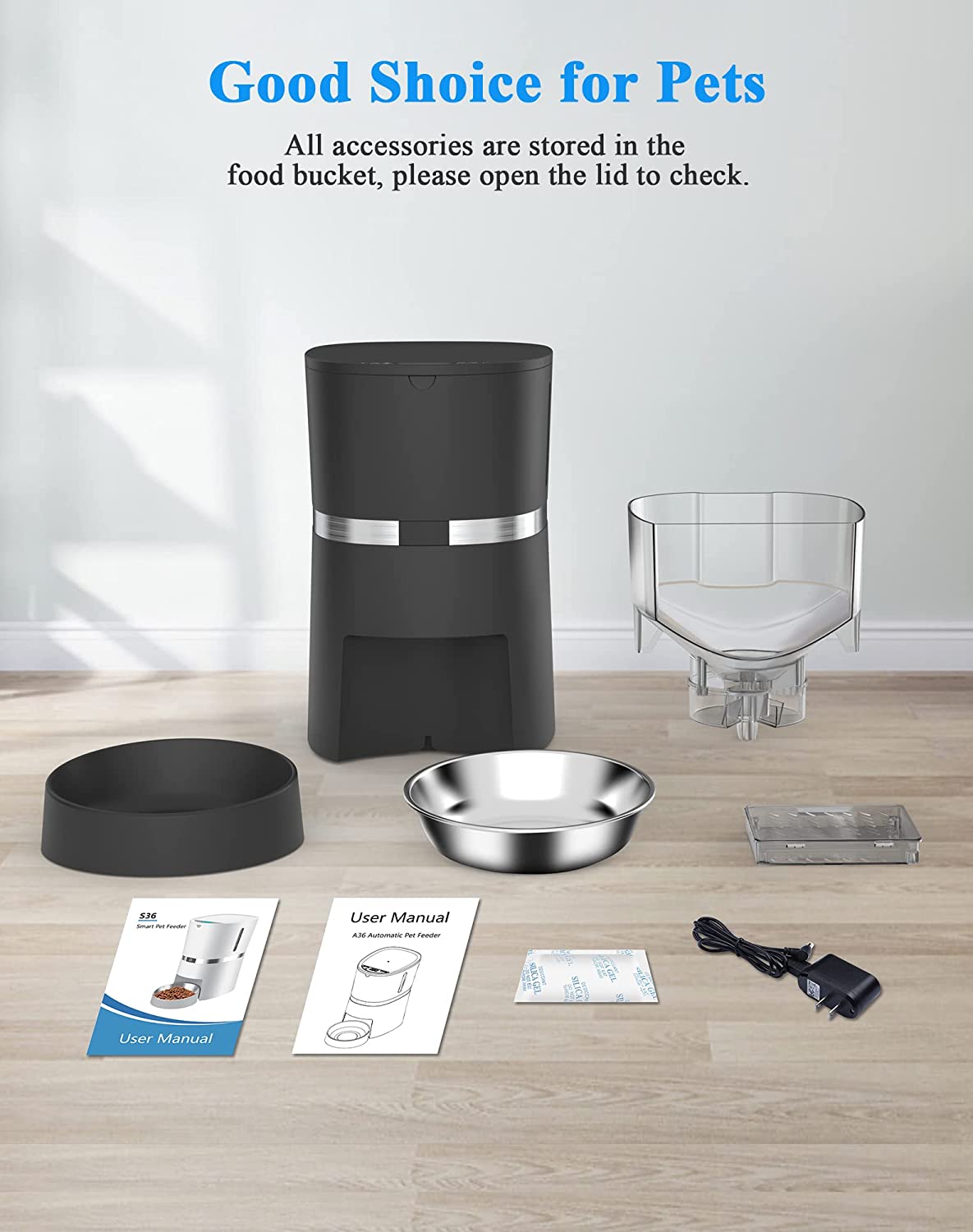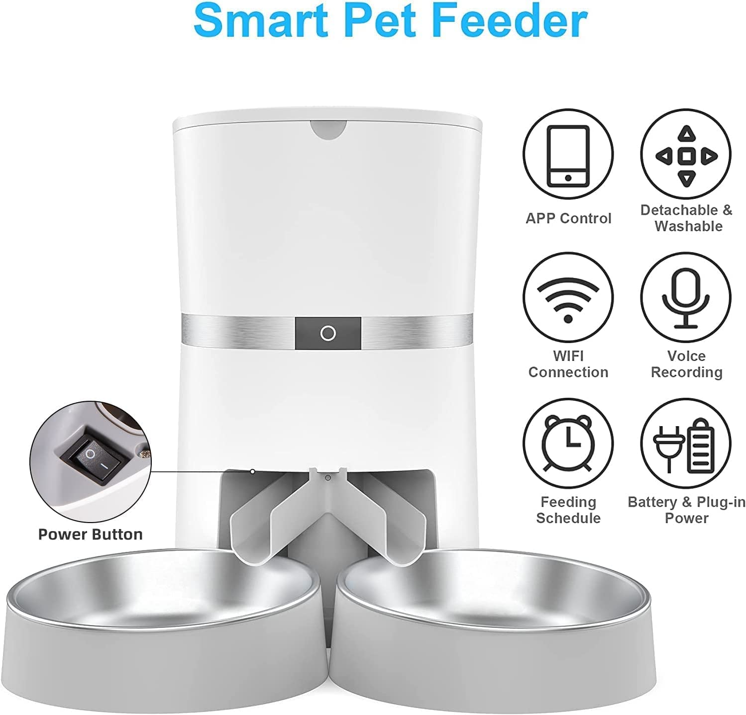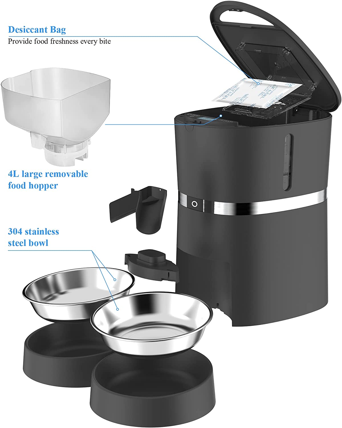 • 【Feed Multiple Pets & Easy to Clean】 - The upgrade auto pet feeder comes with a 2-way splitter and double 3 cups stainless steel food bowls, can divide meals equally, and feed your multiple pets at the same time. you can also assemble it into a usual feeder as you like. Removable food container and food bowls for easy installation and cleaning.