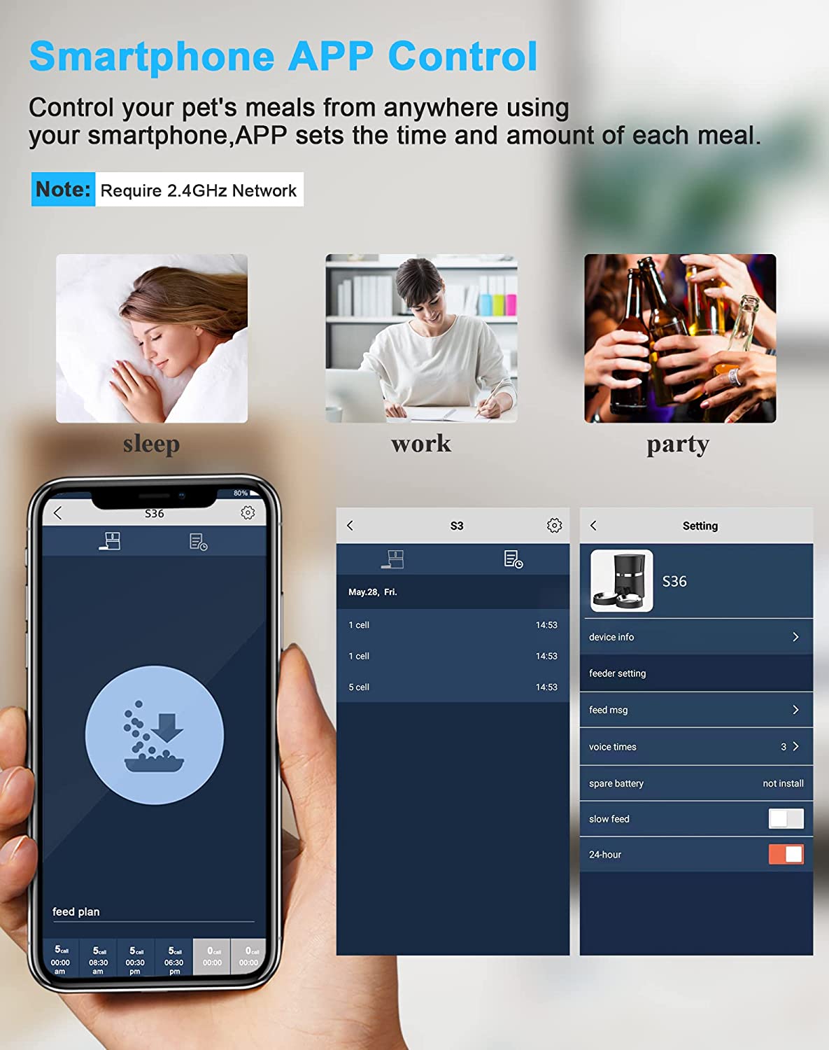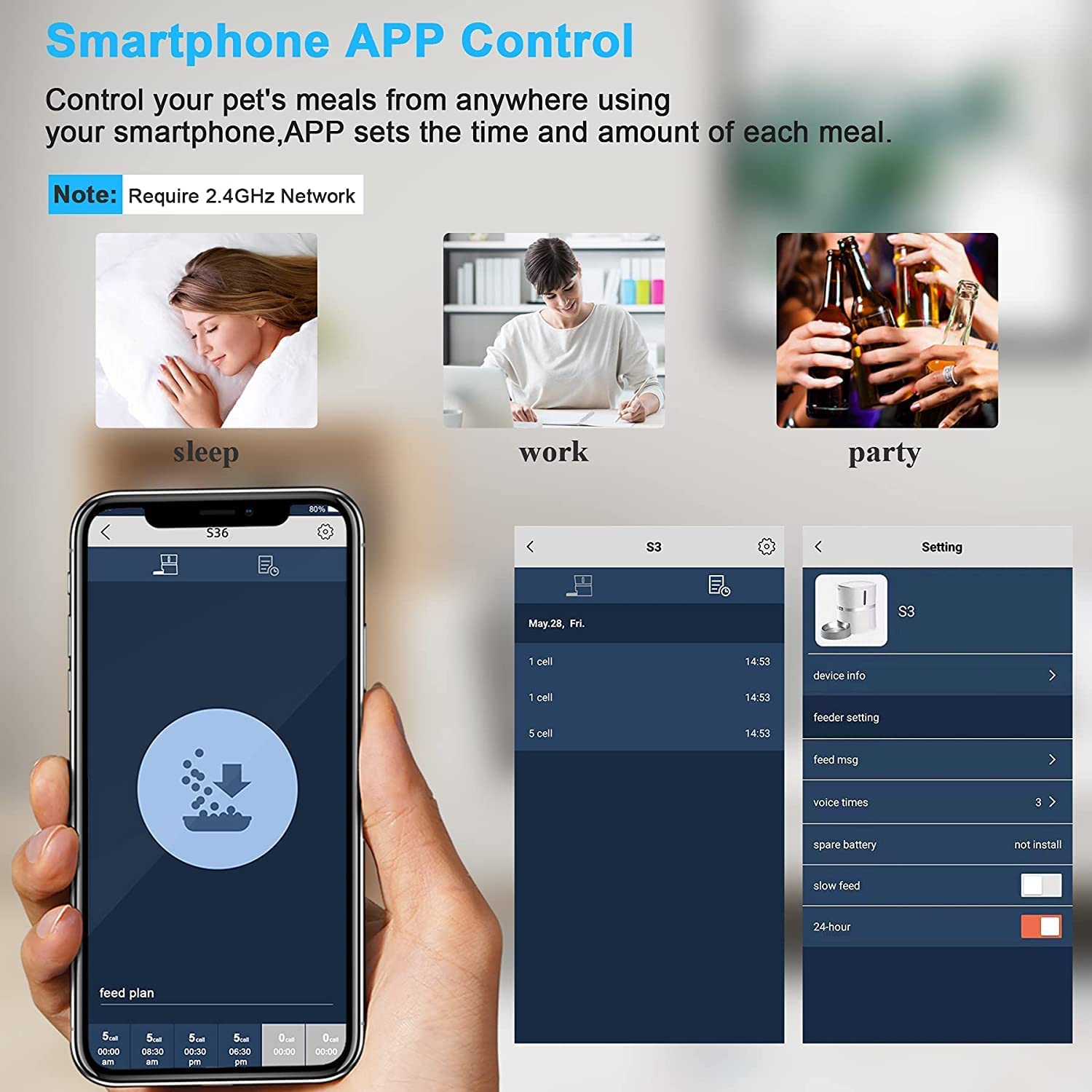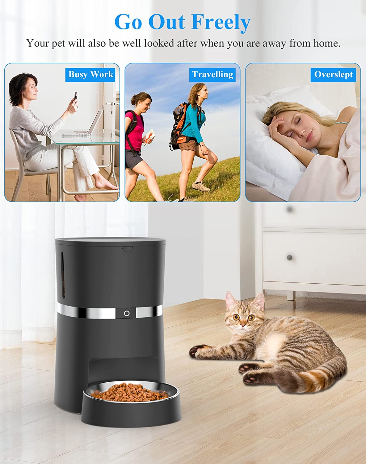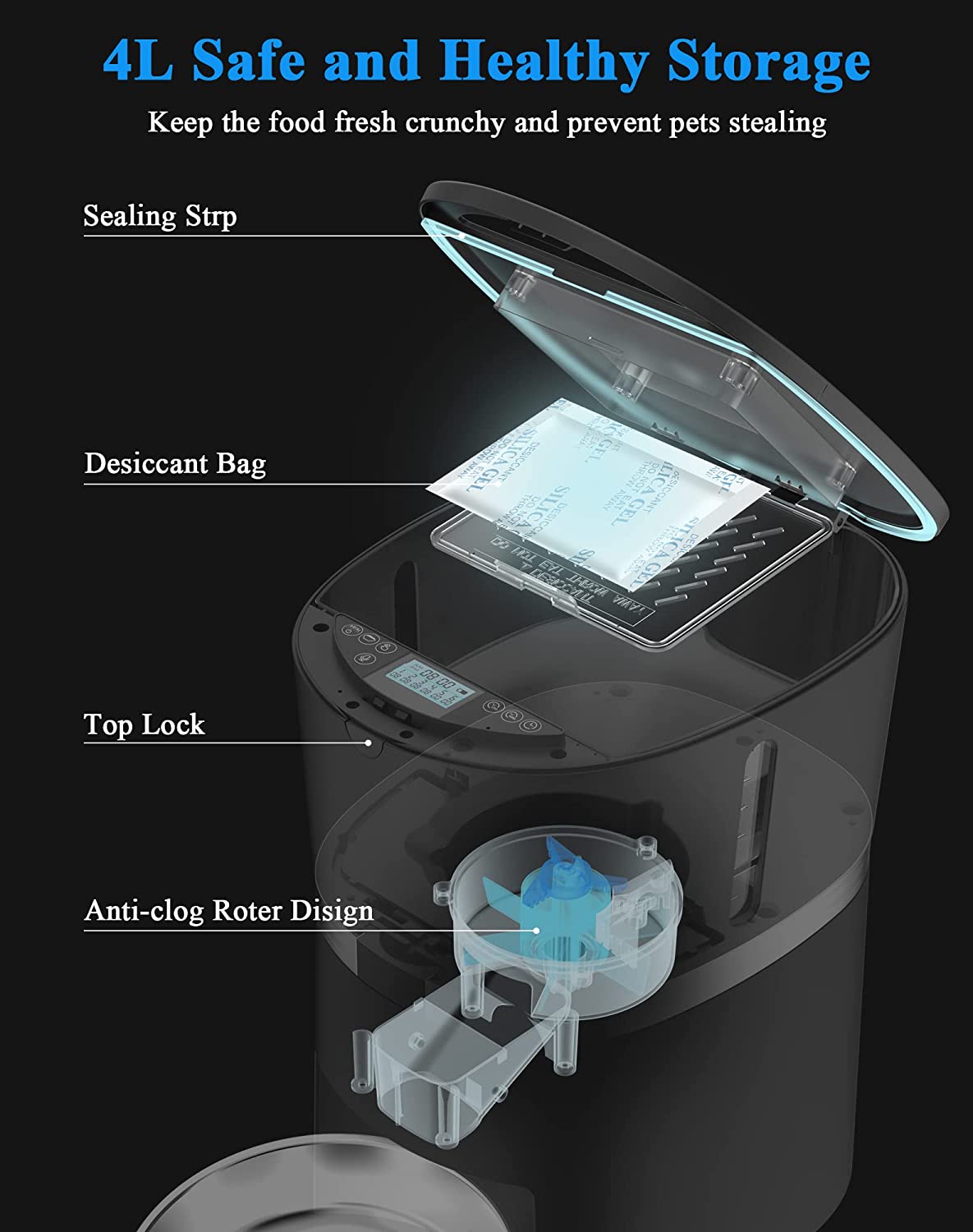 • 【Upgraded Sound Record Design】You can record 10s customized voice message calling that played at each feeding dispenses to let your pet know when it’s time to eat. And it dosen’t feel lonely as he can hear your voice recording. You can also disable the recorder sound for your smart pet to have a good sleep on the weekends.