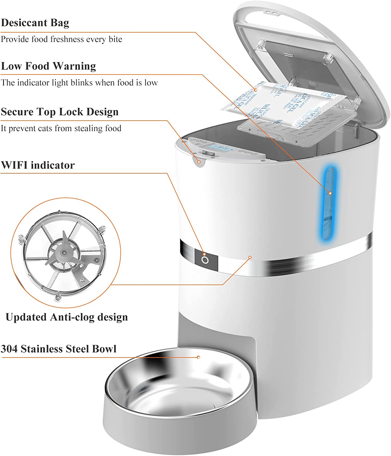 • 【Anti-Clog Design】- Advanced automatic reversal mechanism to completely solve the problem of food jams. A built-in infrared sensor alerts when the food bowl is full. and The Blue light flashing to remind you it’s time for a refill - make sure your cats never go hungry!