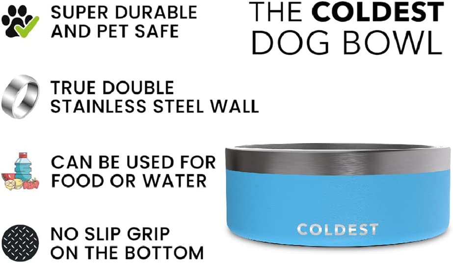 Coldest Dog Bowl - Stainless Steel Non Slip No Spill Proof Skid Metal Insulated Dog Bowls, Cats, Pet Food Water Dish Feeding for Large Medium Small Breed Dogs (64 oz, Celestial Blue)