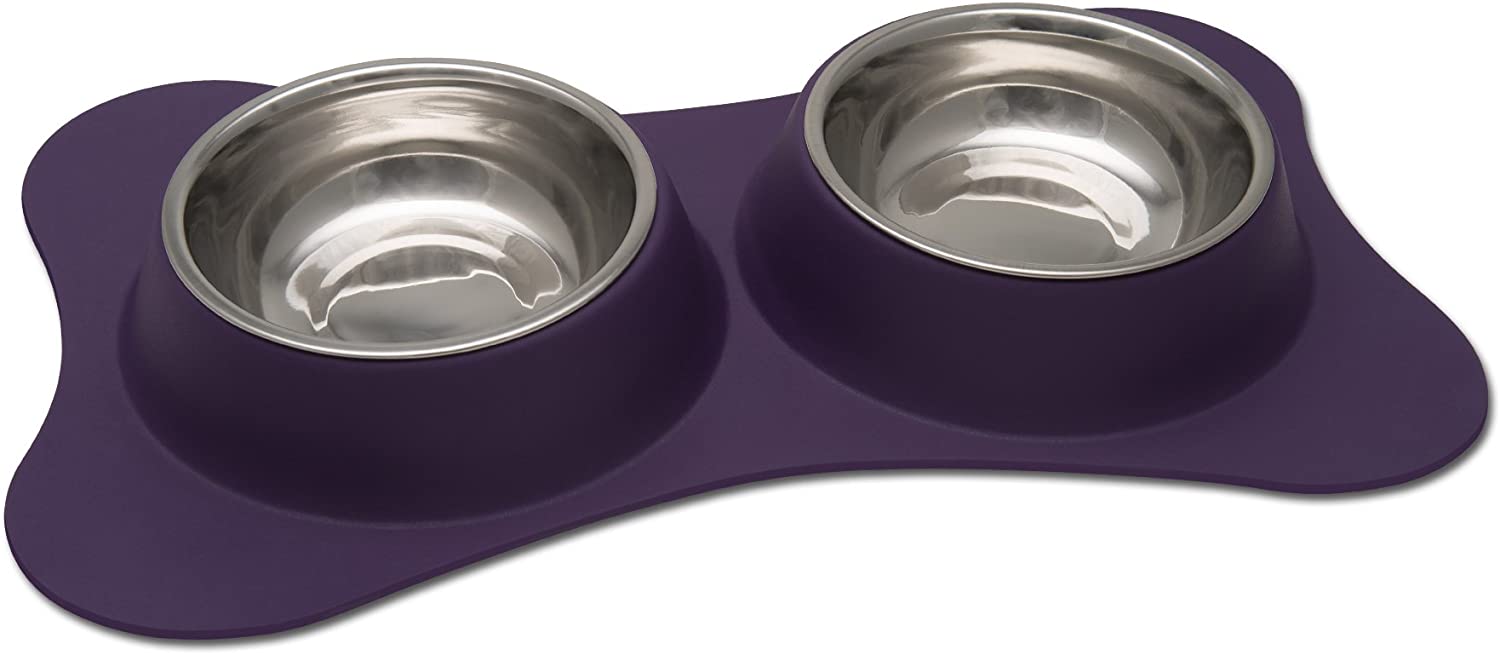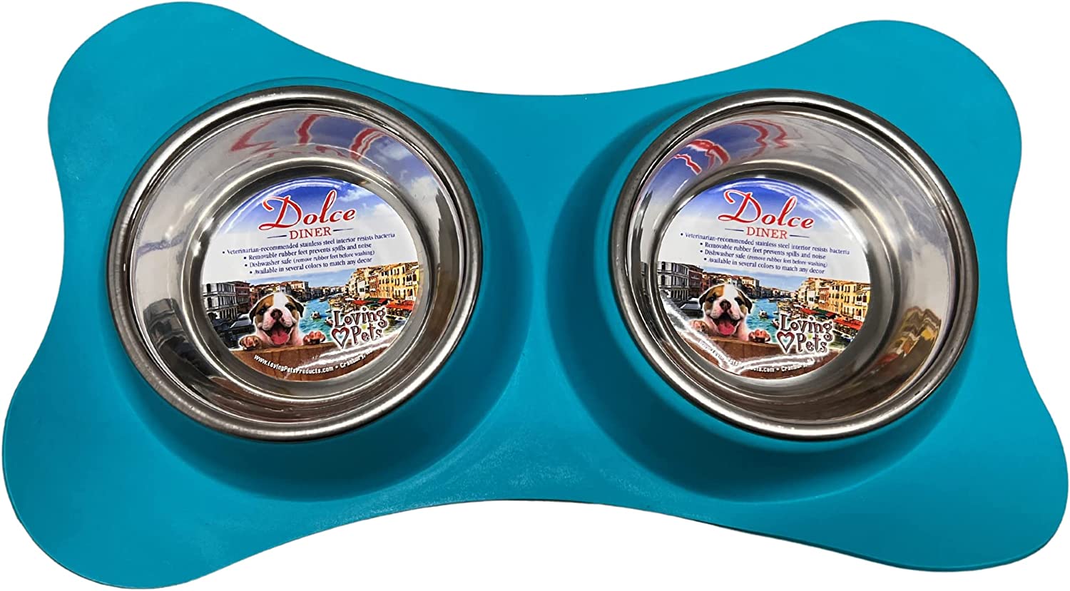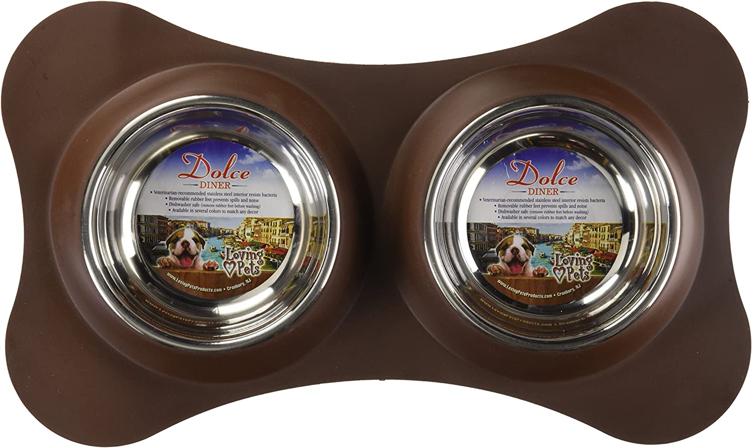 Dolce flex diners are an extremely affordable bowl choice. The flexible rubber base conforms to uneven floor surfaces. It protects floors from scratches, prevents slides and spills, and is virtually silent. The removable bowls are made of veterinarian recommended, stainless steel. They are easy to clean and dishwasher safe.